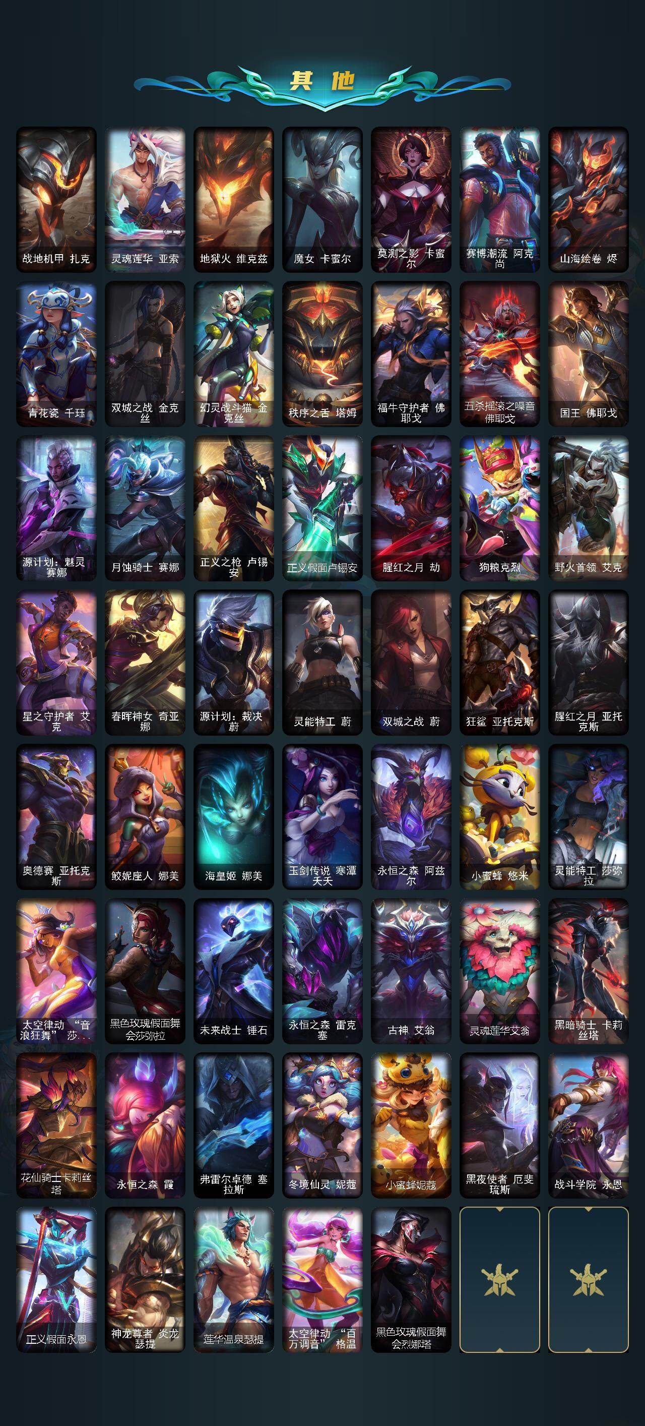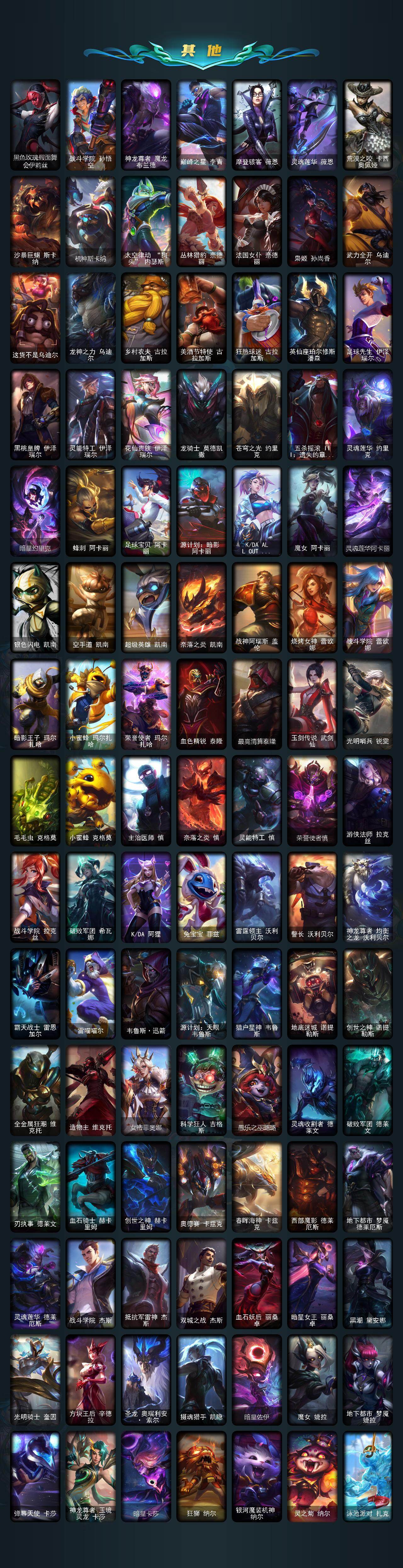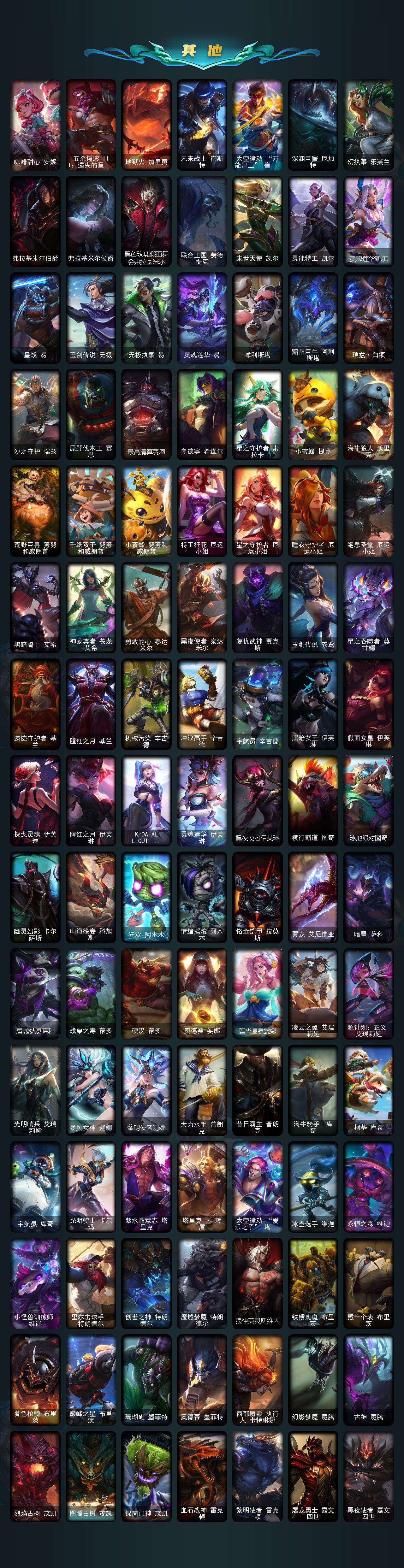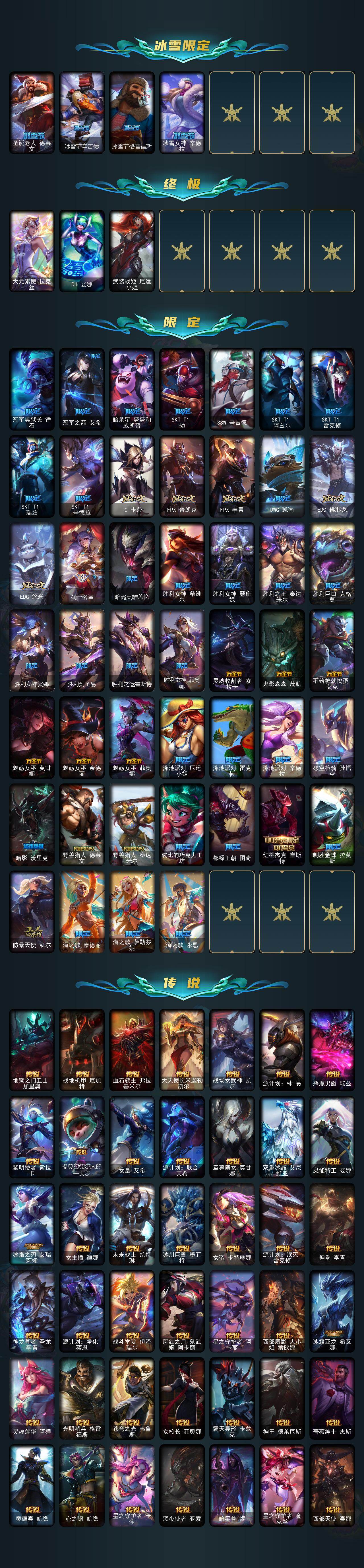 172英雄/515皮肤/3终极/33神话/74限定/17臻彩/252炫彩/48传说/84史诗