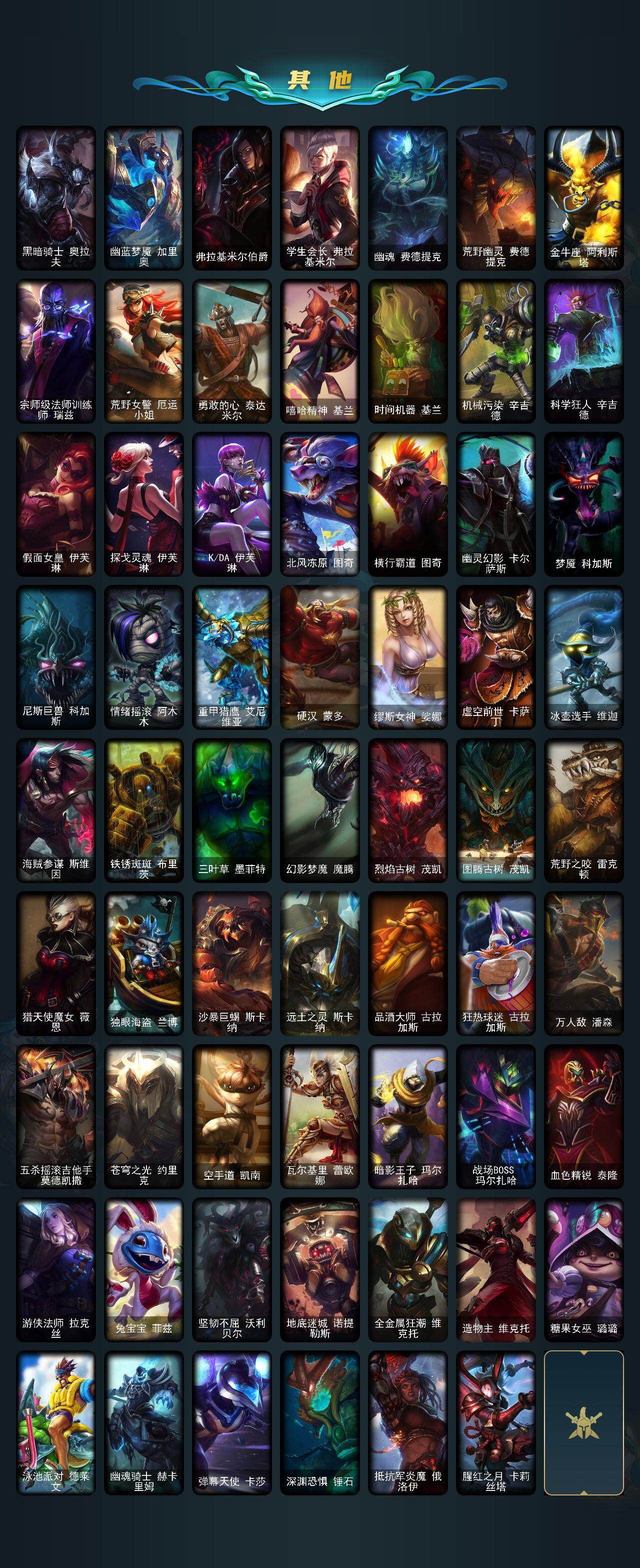 168英雄/118皮肤/3神话/8限定/1臻彩/7炫彩/11传说/31史诗/未定级