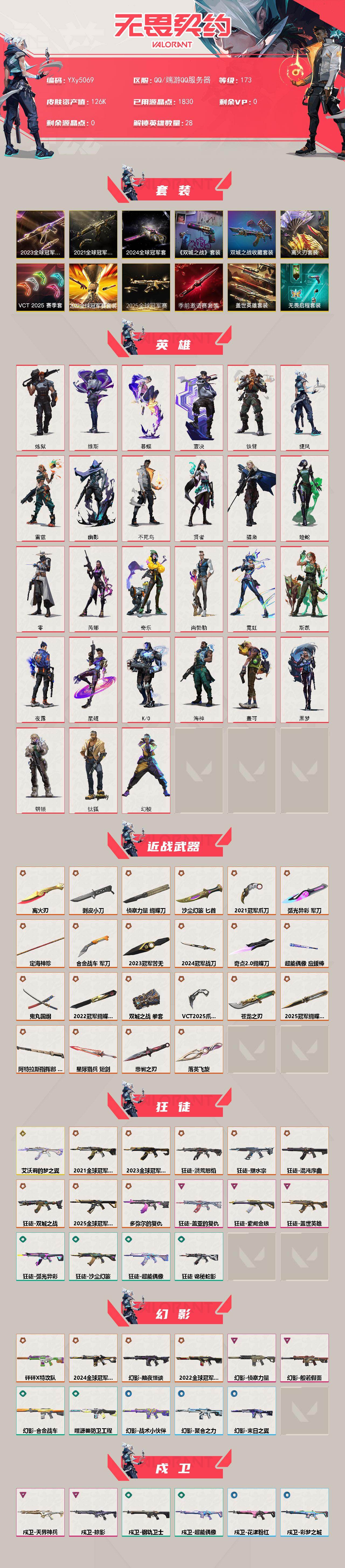 【满冠军限定】【21套.22套.23套.24套.25套】【离火刃.爆爆左轮.双城套.怜悯之刃.VCT爪刀】YXy5069【无二次】【因赛季更新游戏段付以上号为准!】