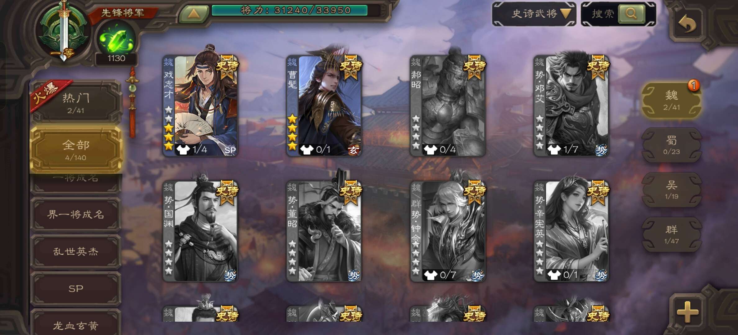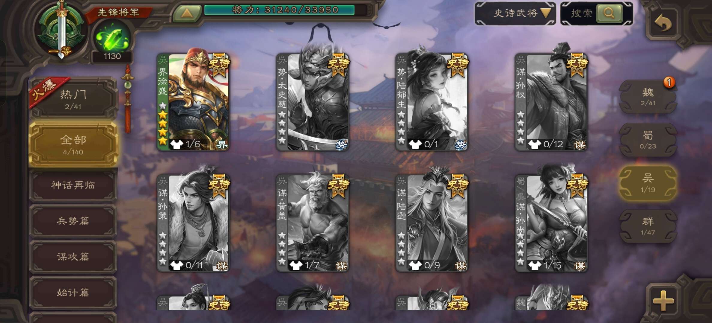 史诗武将数量: