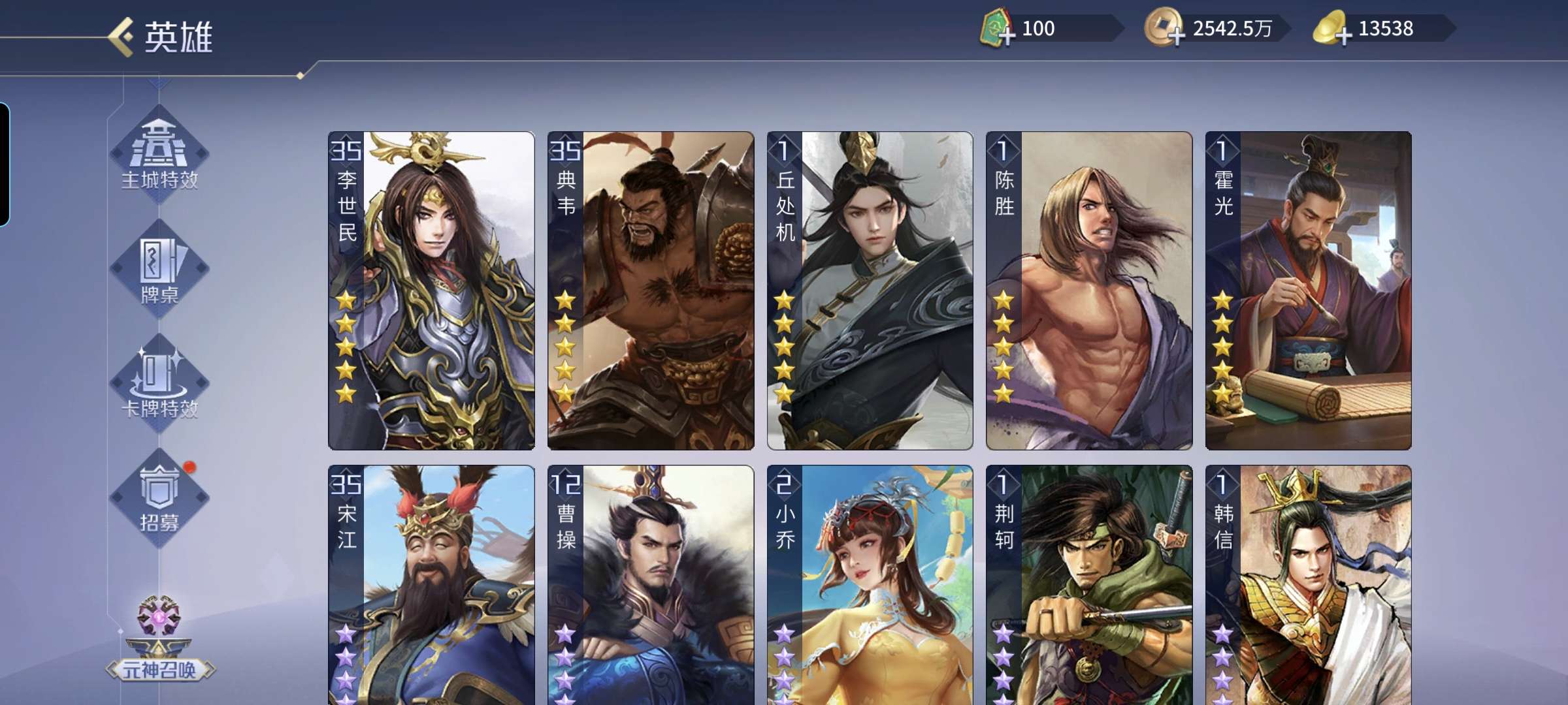 五星武将数量: