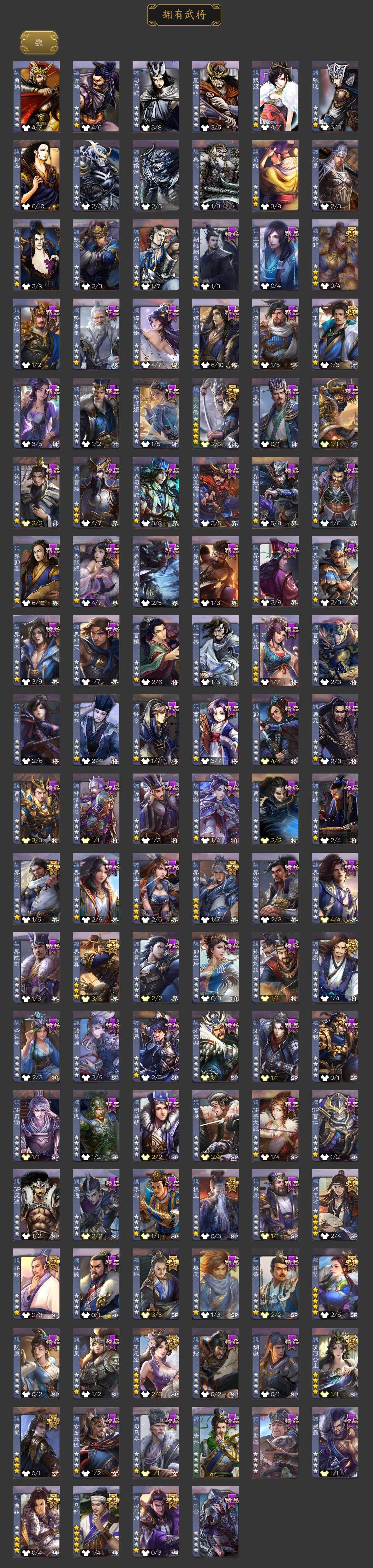 神吕布,神赵云,神郭嘉,神诸葛亮,曹髦,王粲,杨修,王元姬,司马师,马钧,界钟会,界于禁,界曹真,嵇康,郝昭,陈琳,曹婴,曹纯,戏志才,清河公主,程昱,关索,马云騄