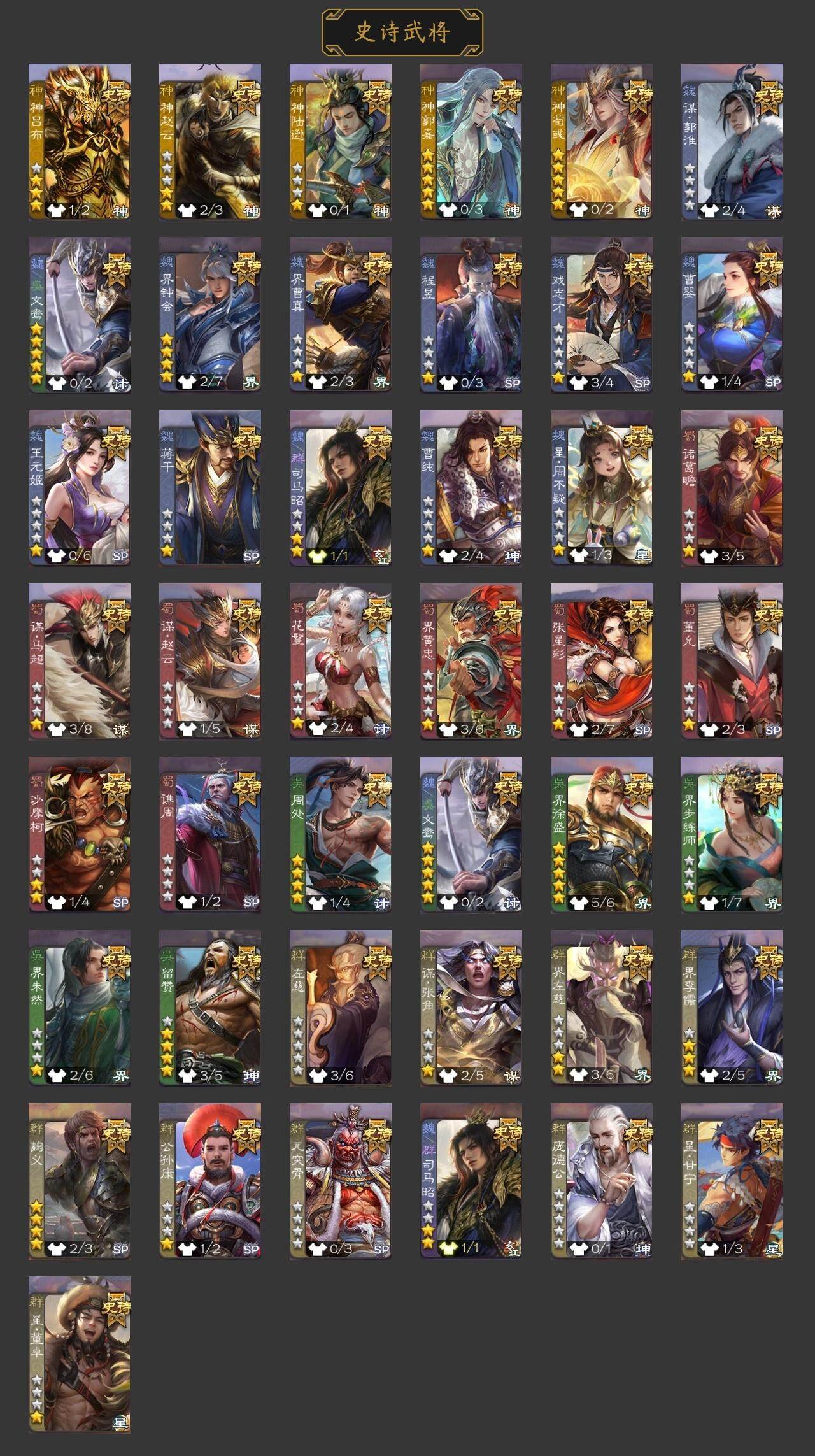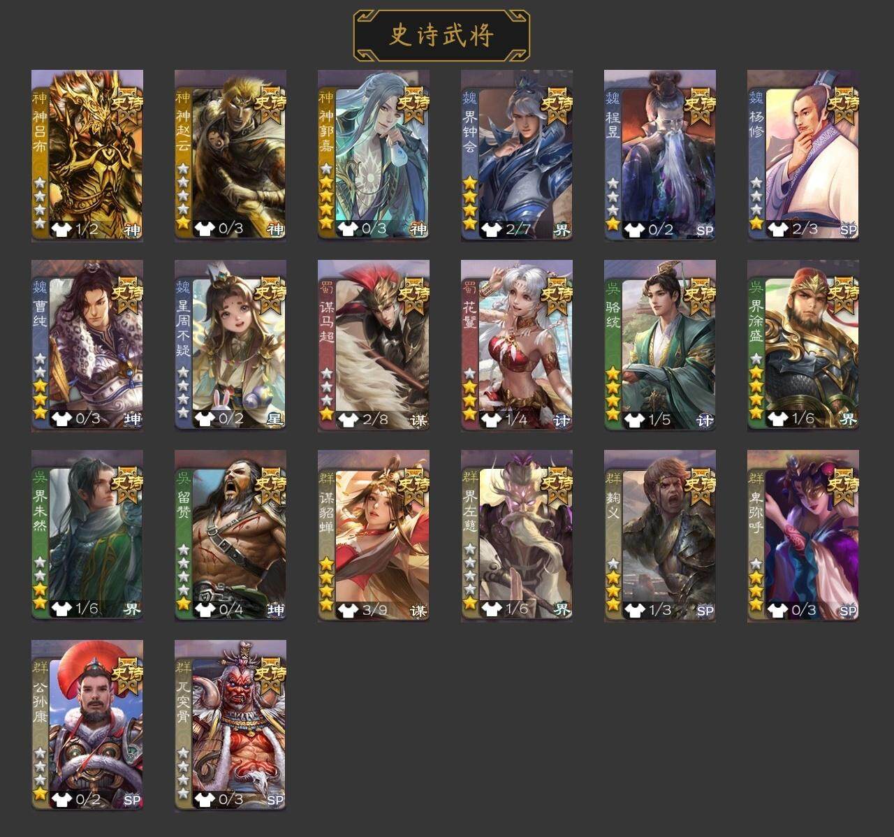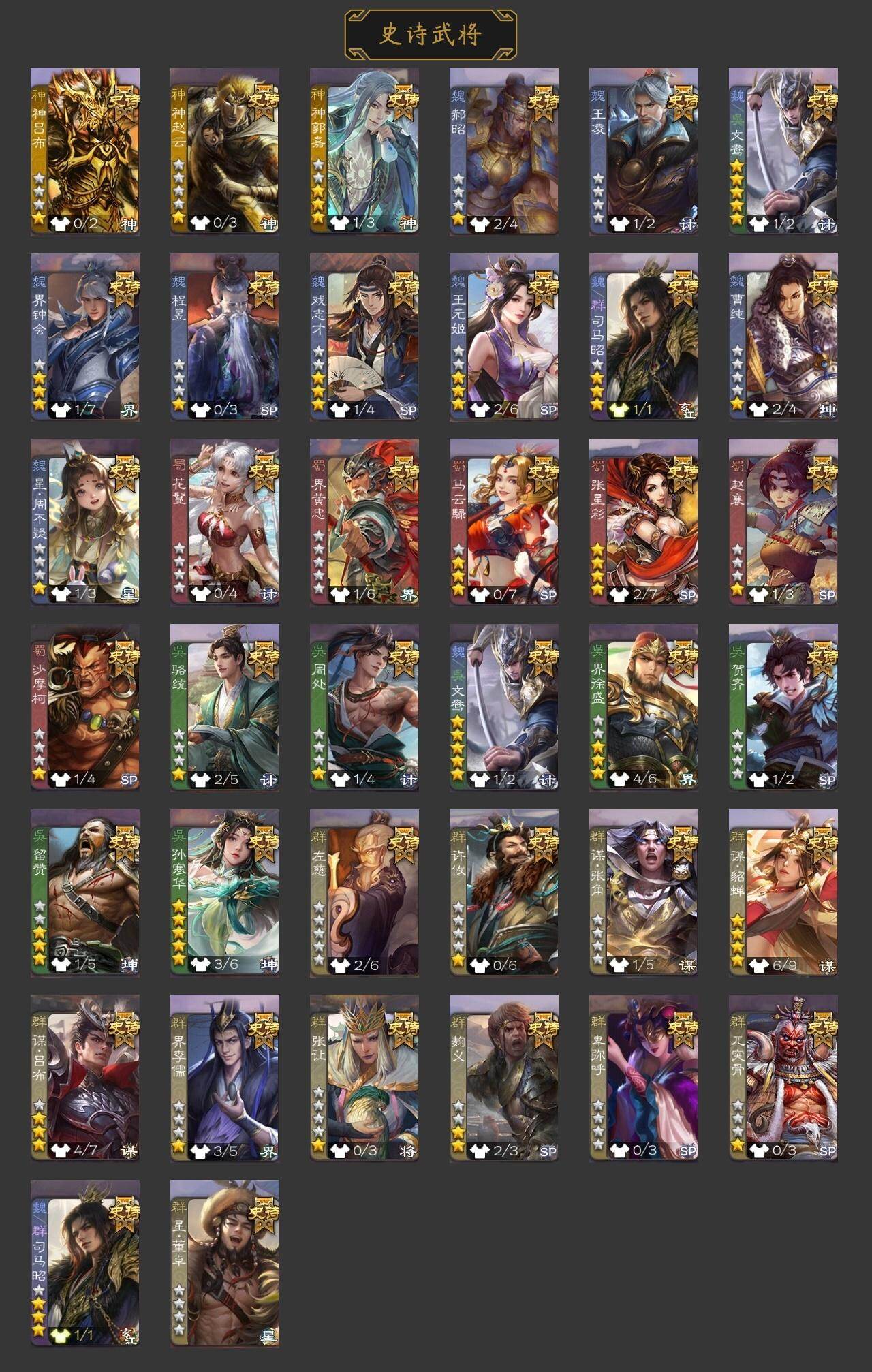 史诗武将数量: