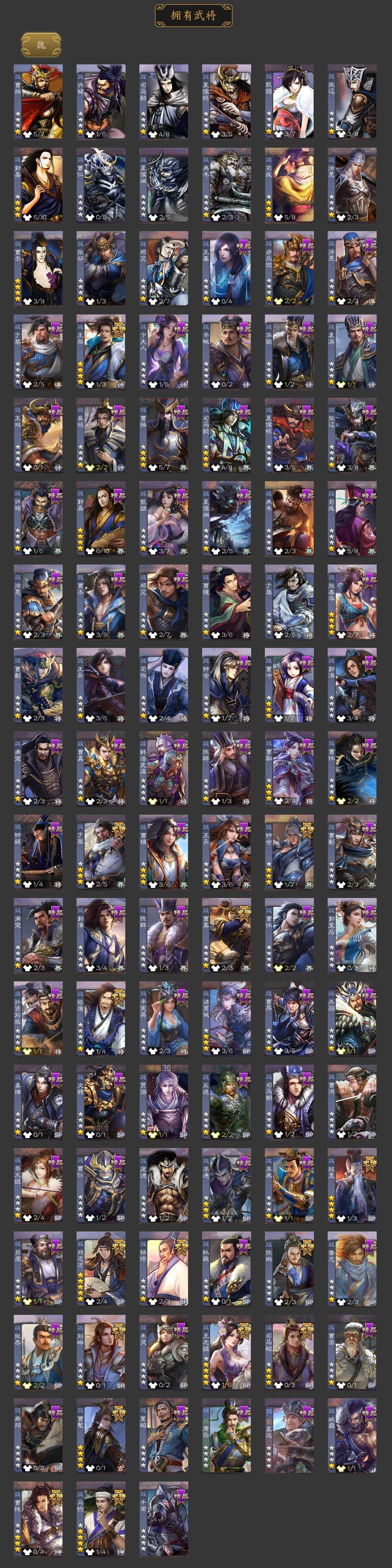 神吕布,神赵云,神司马懿,神张辽,神太史慈,SP司马昭,曹髦,王粲,杨修,王元姬,马钧,界钟会,界于禁,界曹真,嵇康,陈琳,曹纯,戏志才,刘晔,程昱,关索,马云騄,谋