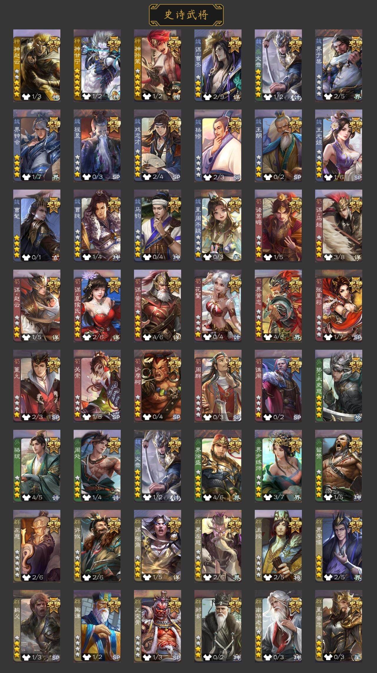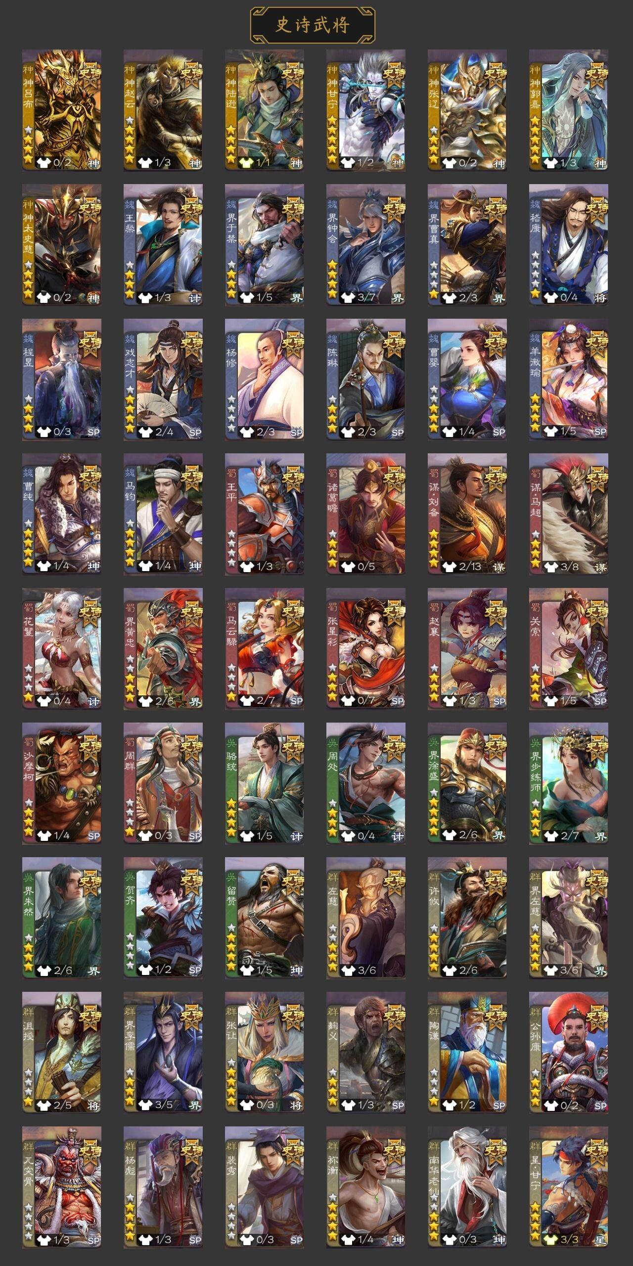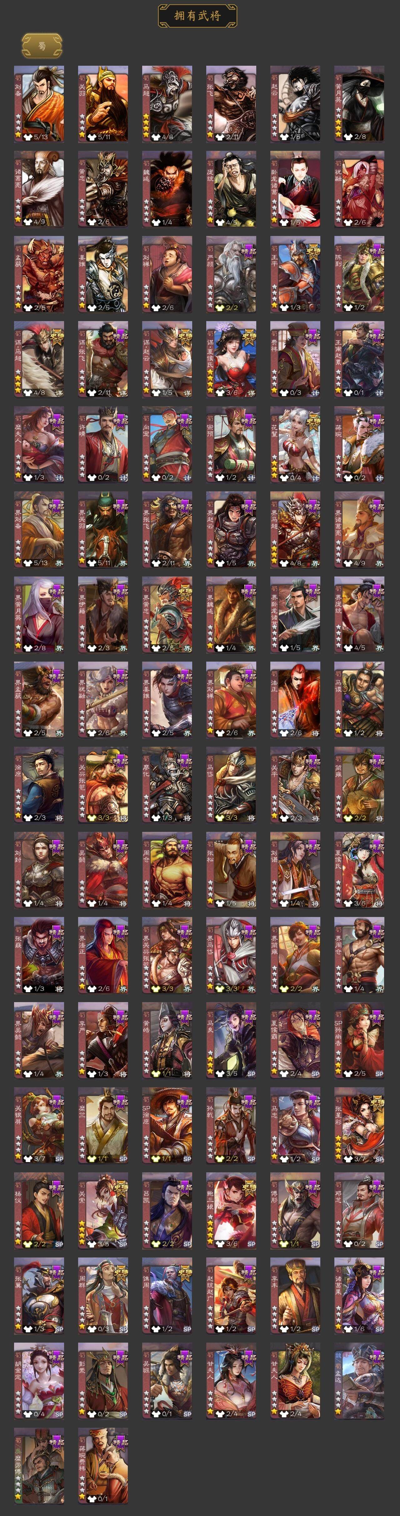 神吕布,神赵云,神甘宁,神张辽,神太史慈,神孙策,神荀彧,神诸葛亮,杨修,王凌,马钧,界钟会,界于禁,界曹真,嵇康,郝昭,陈琳,曹纯,戏志才,程昱,关索,谋夏侯氏,谋赵