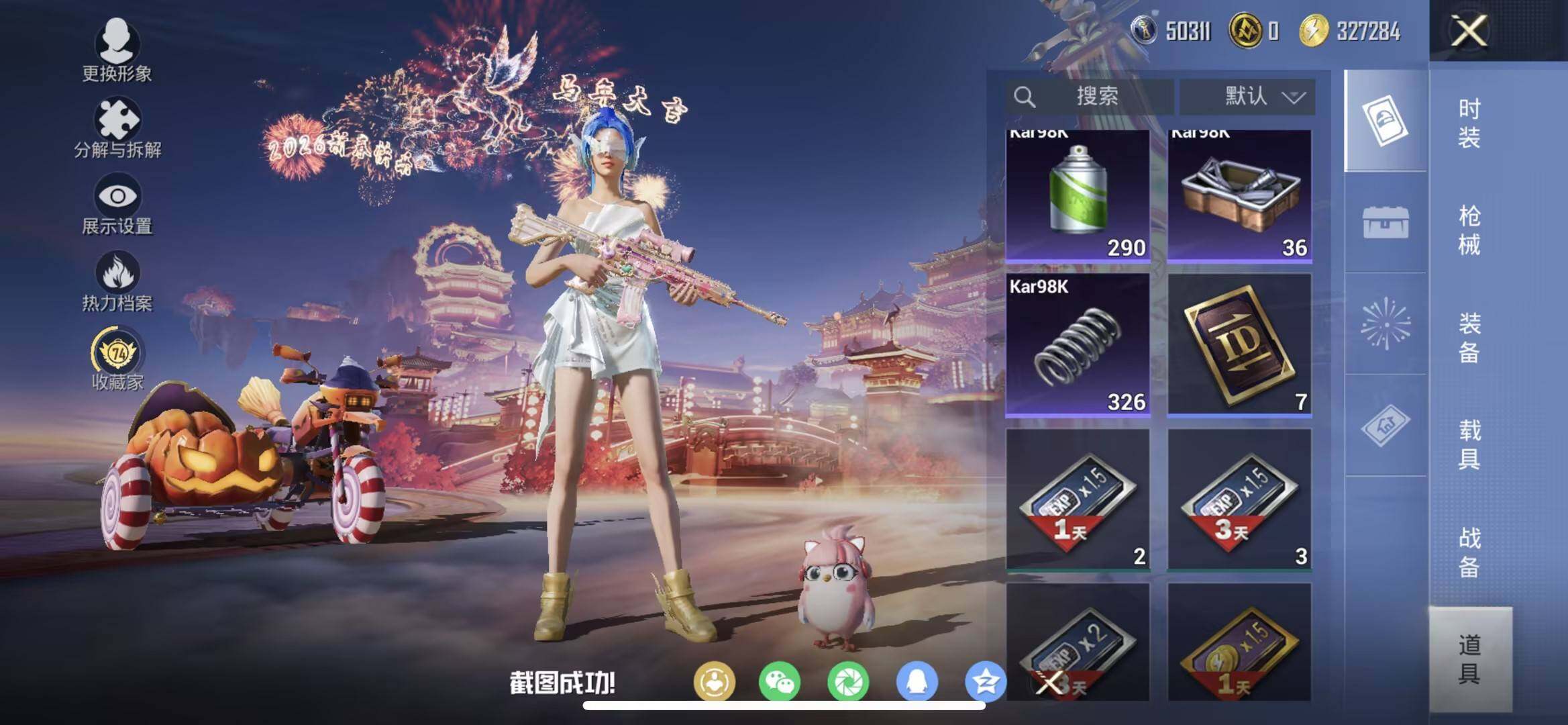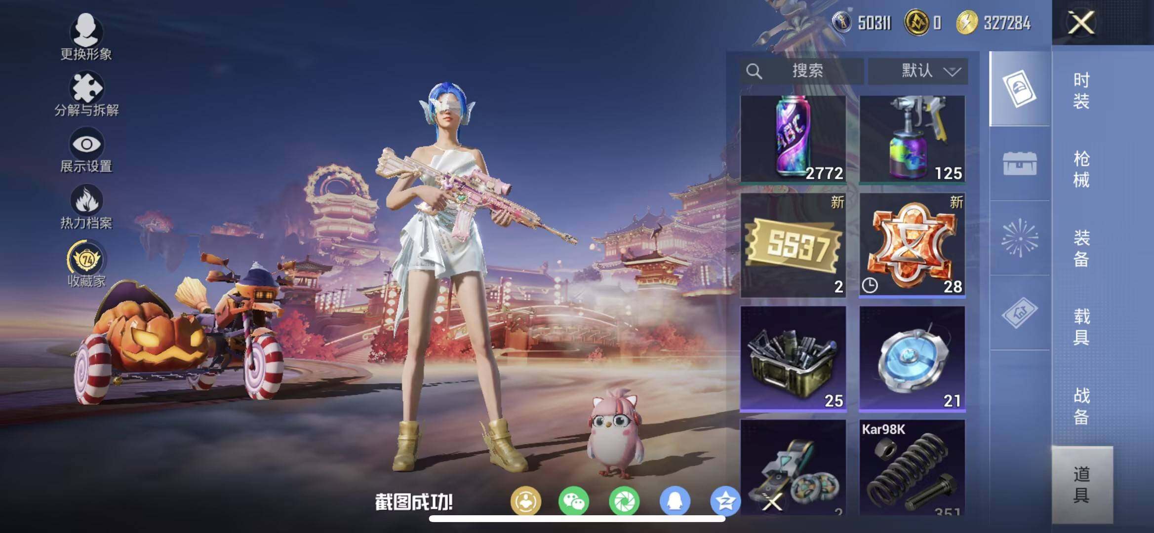 苹果 手Q-6粉装-11特效枪-1载具-9粉色飞行器-85483热力值-11王牌印记-152套装-243枪皮