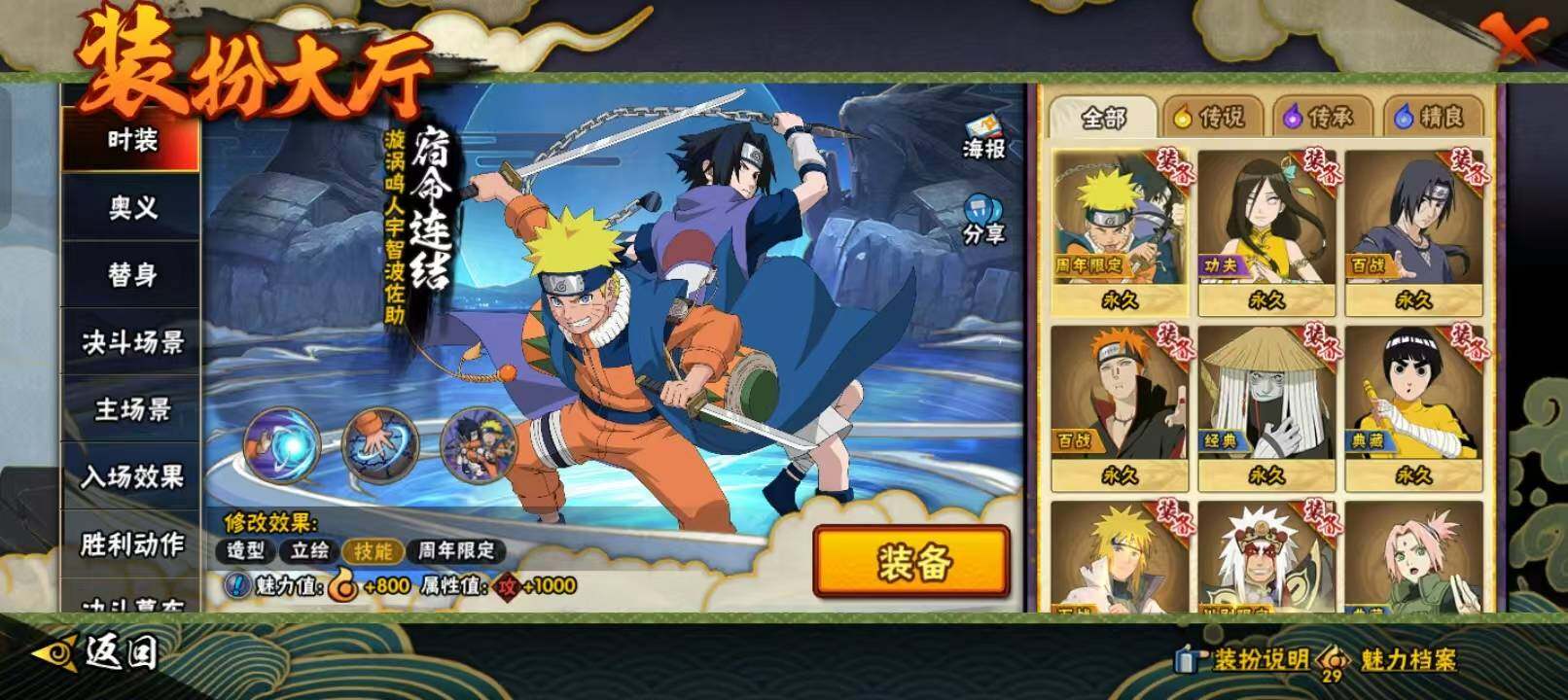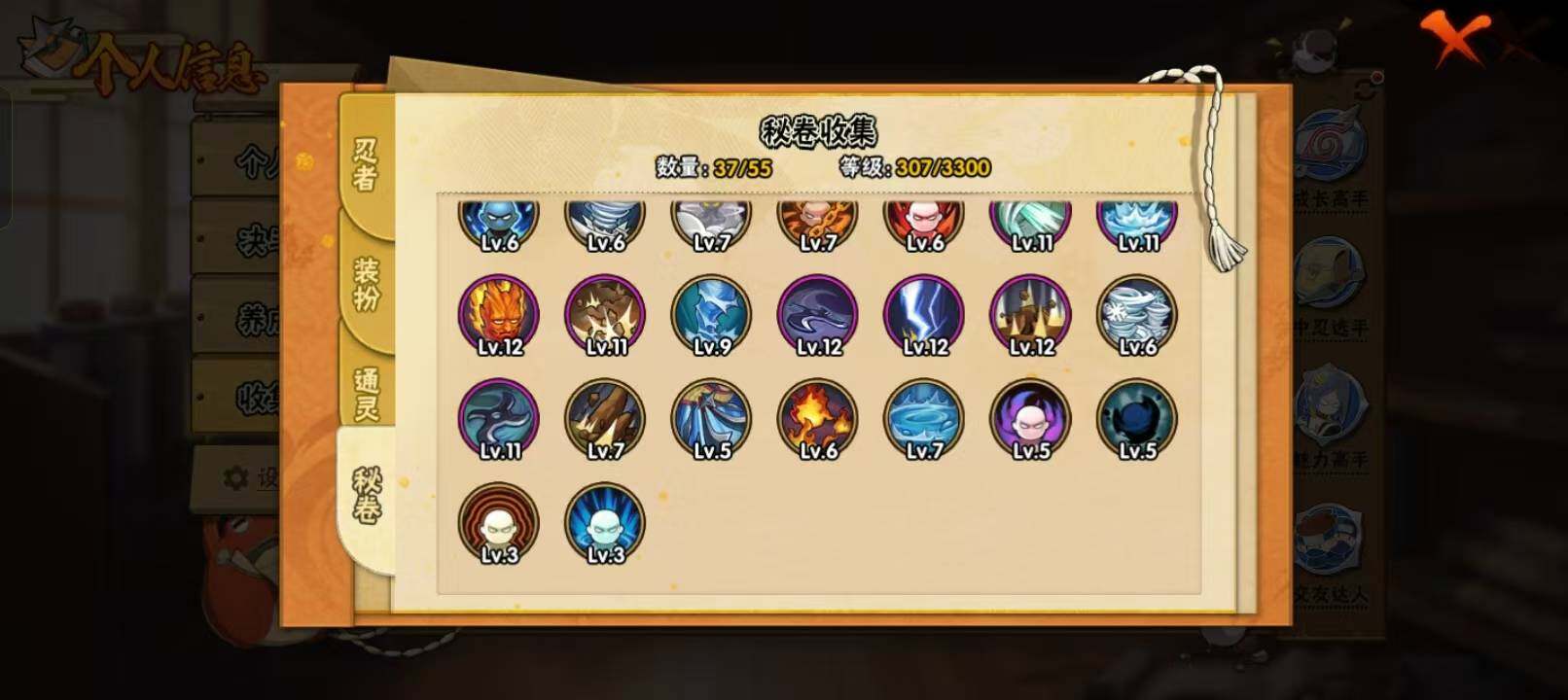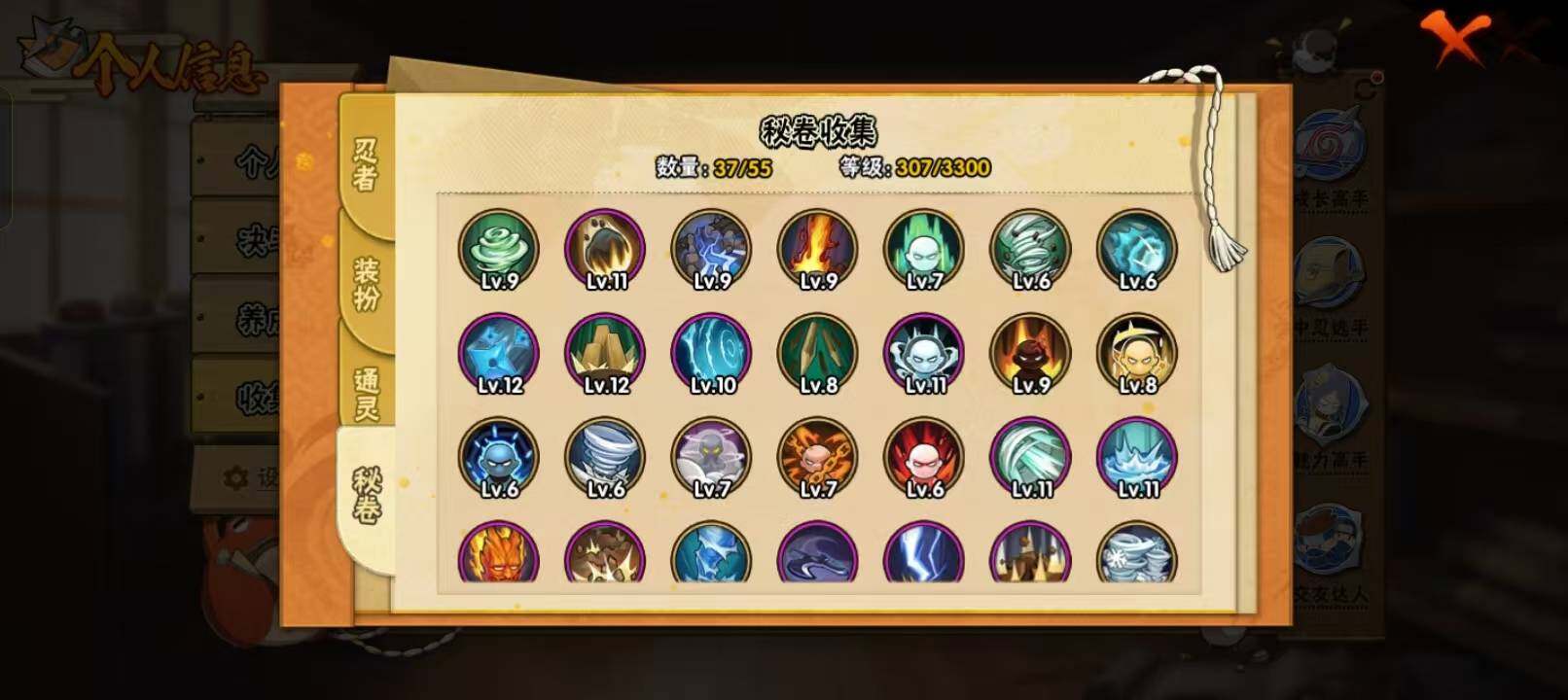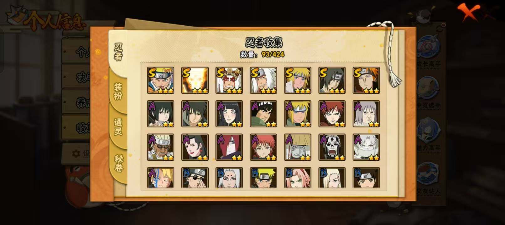 【S级忍者】:宇智波鼬「须佐能乎」(3星),自来也「舞之豪杰」(3星),自来也「传说中的三忍」(3星),波风水门(3星),漩涡鸣人「九喇嘛连结」(3星),佩恩「天道」(3星),漩涡鸣人·宇智波佐助(3星)