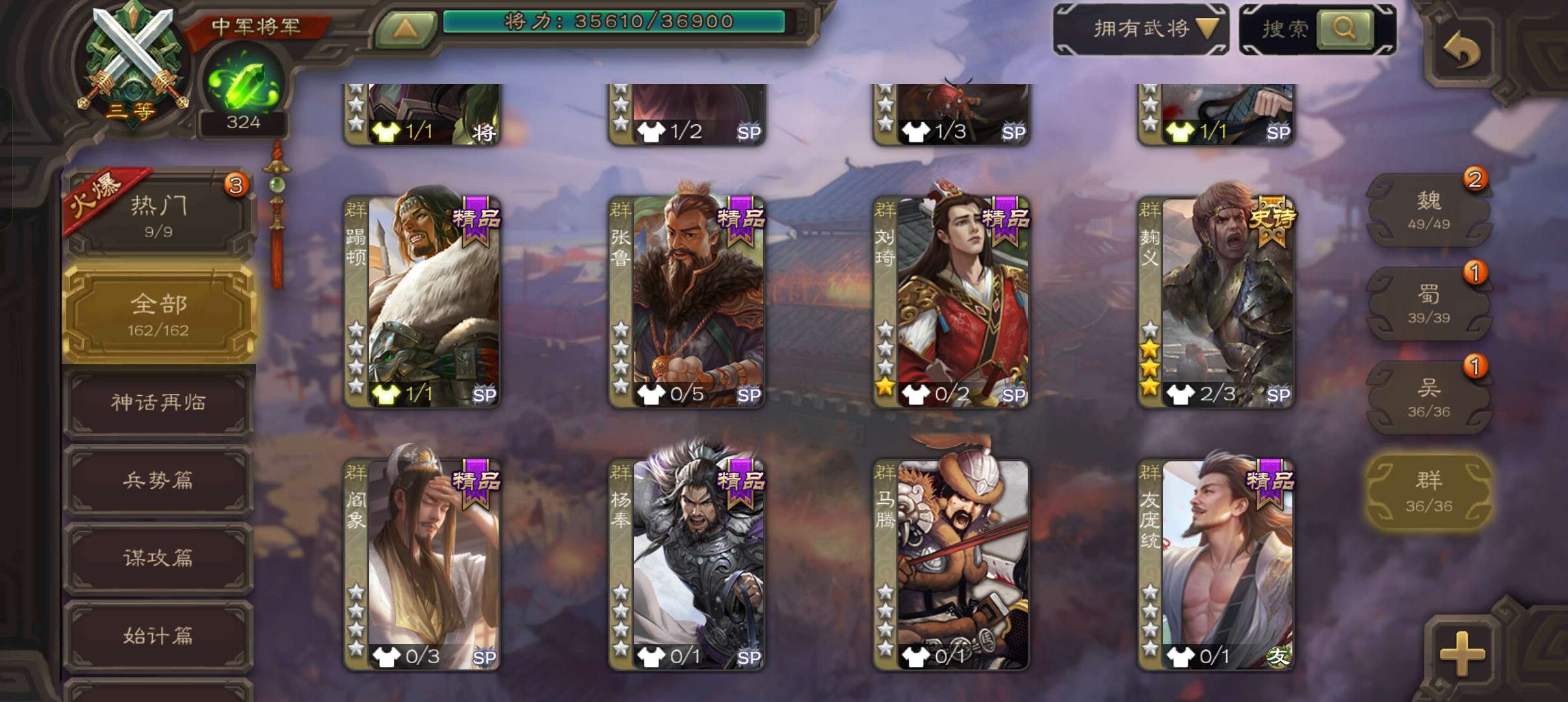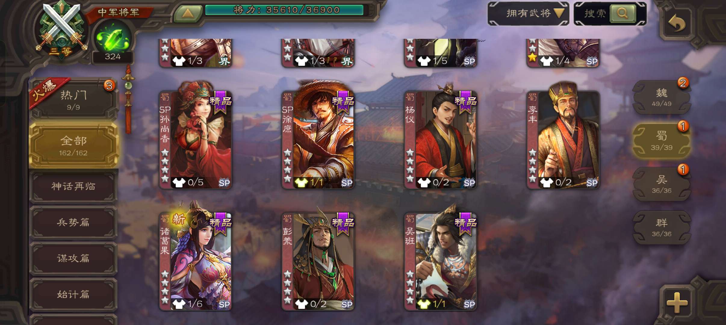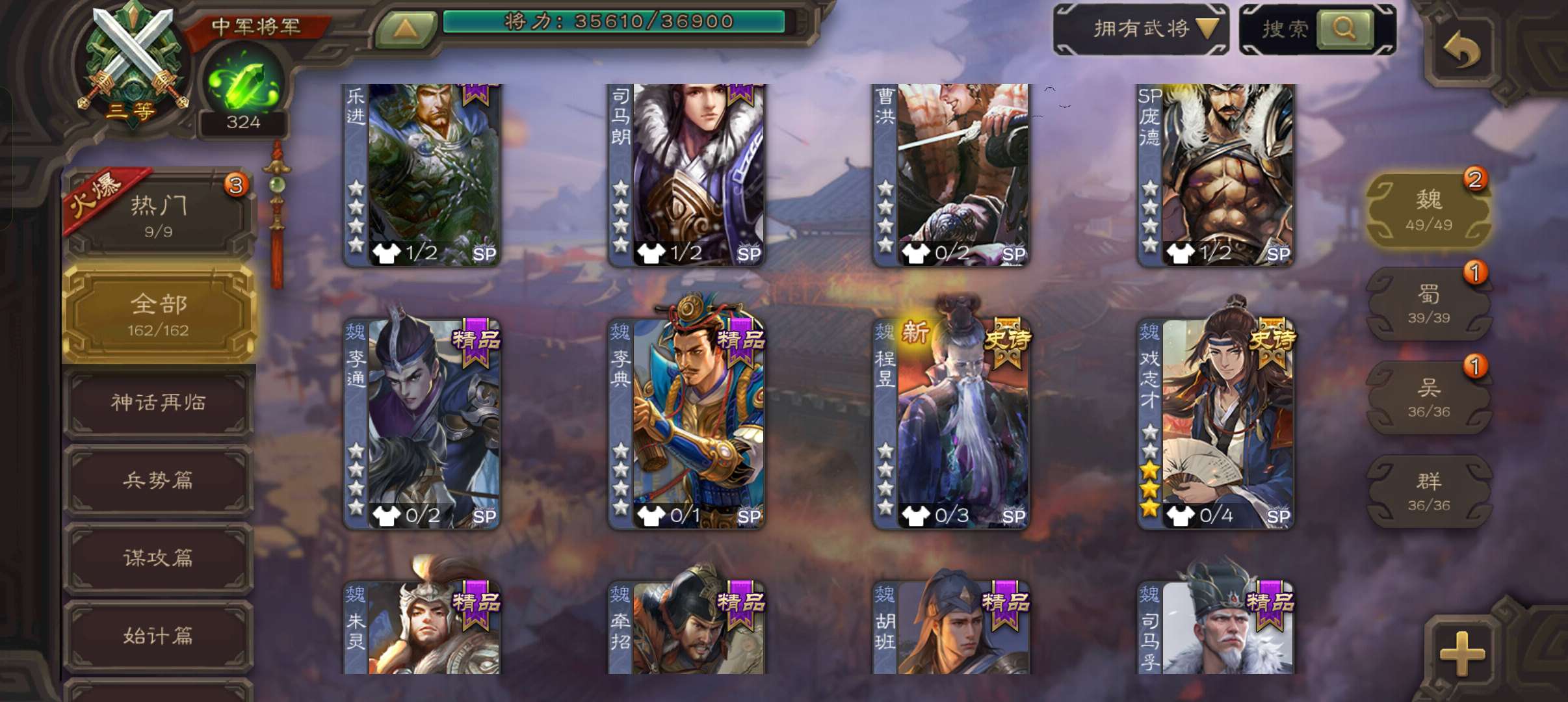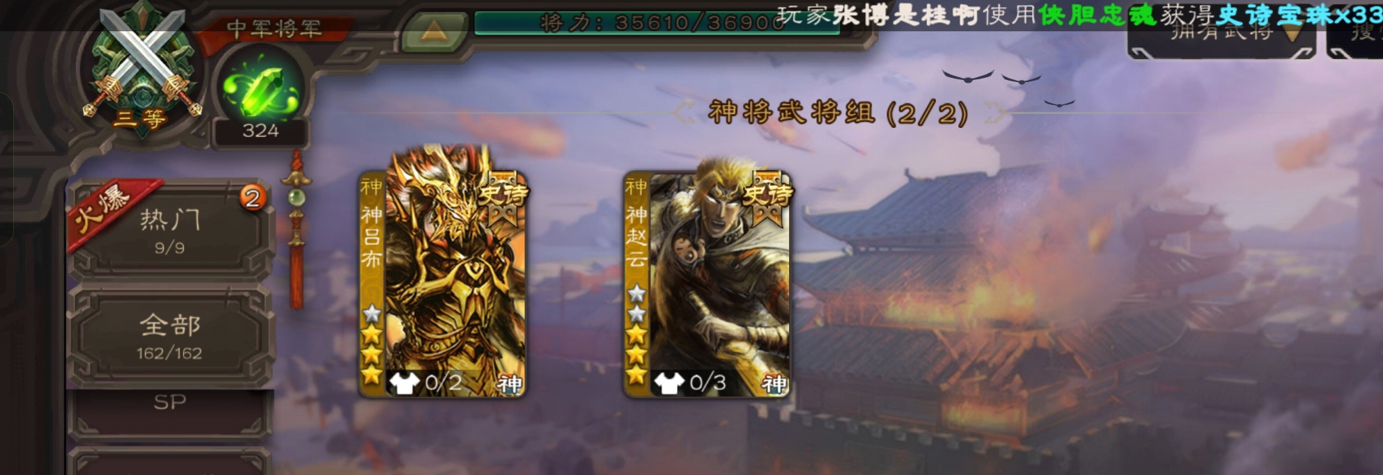 7史诗双天工中军,司马孚闫象,回廊动白马神吕布神赵云界钟会戏志才谋赵云程昱,动诸葛果动孙茹162将