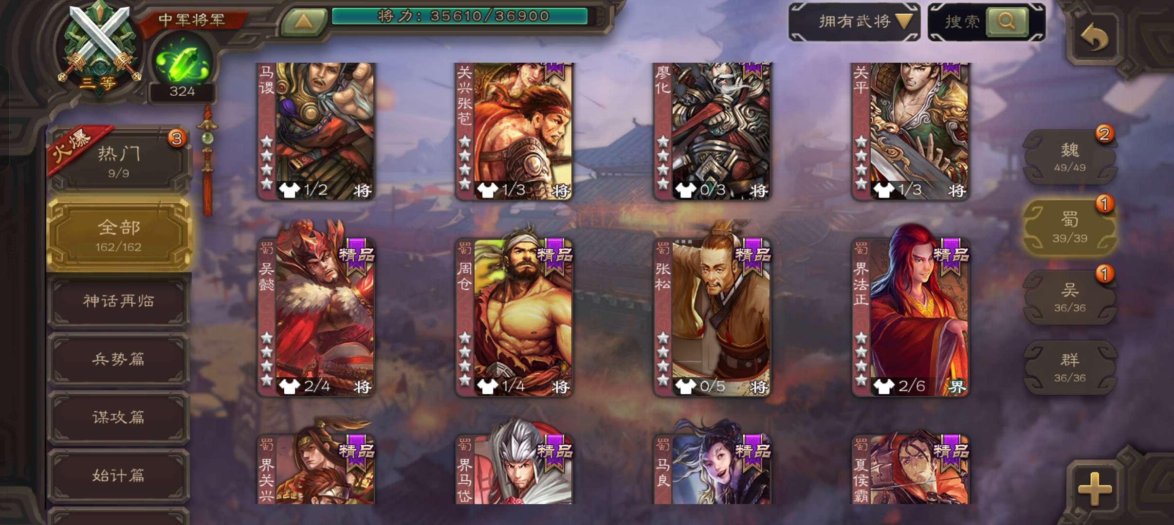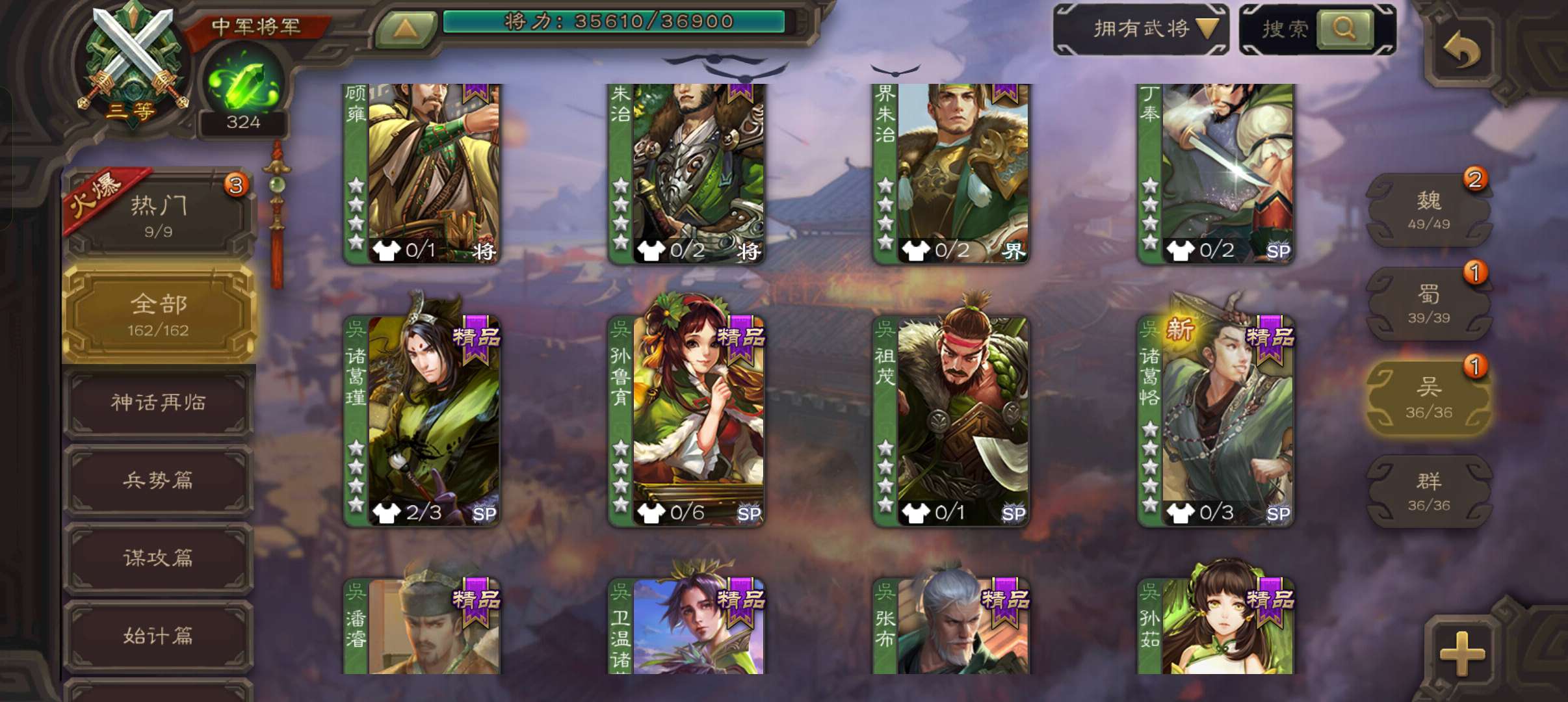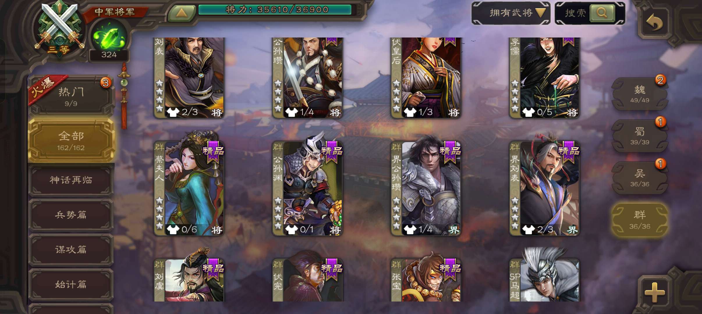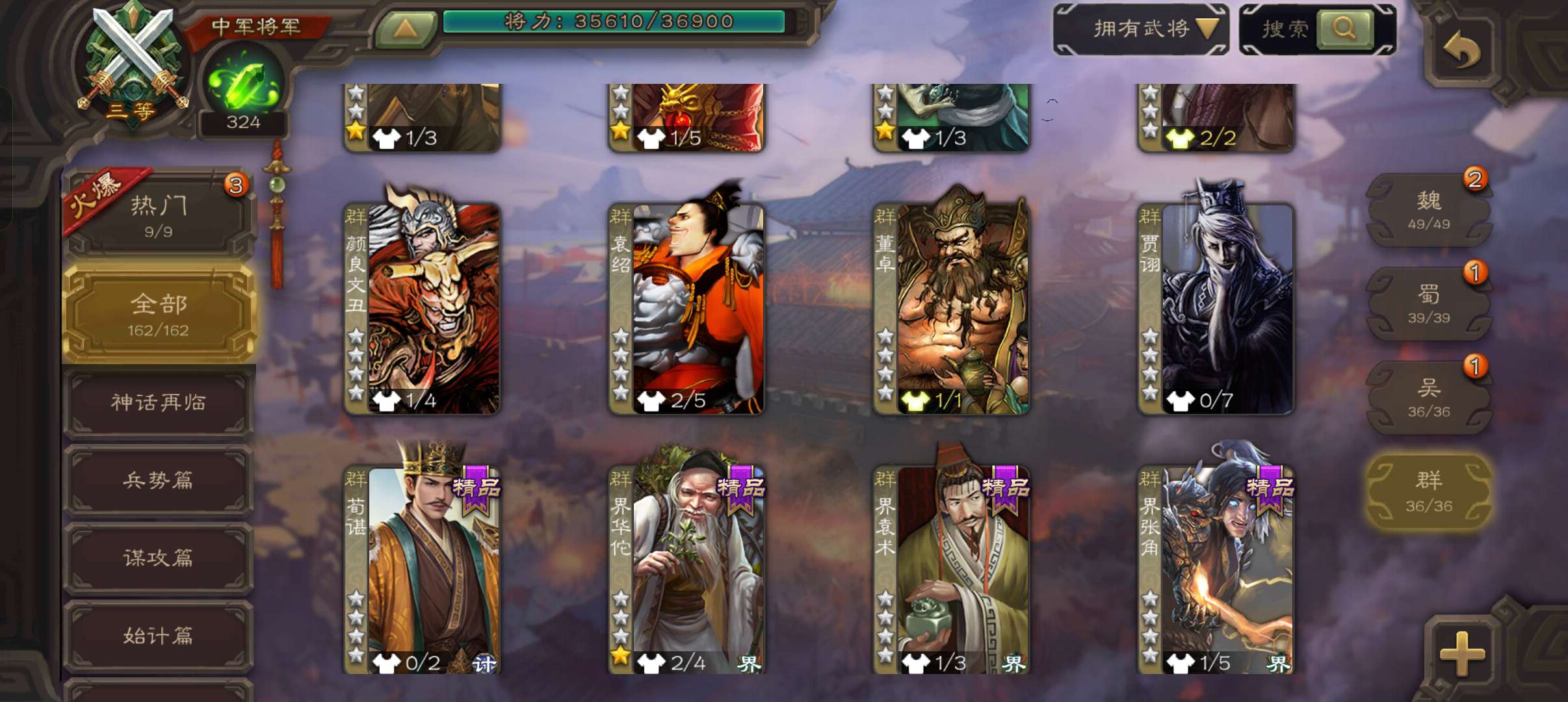 7史诗双天工中军,司马孚闫象,回廊动白马神吕布神赵云界钟会戏志才谋赵云程昱,动诸葛果动孙茹162将