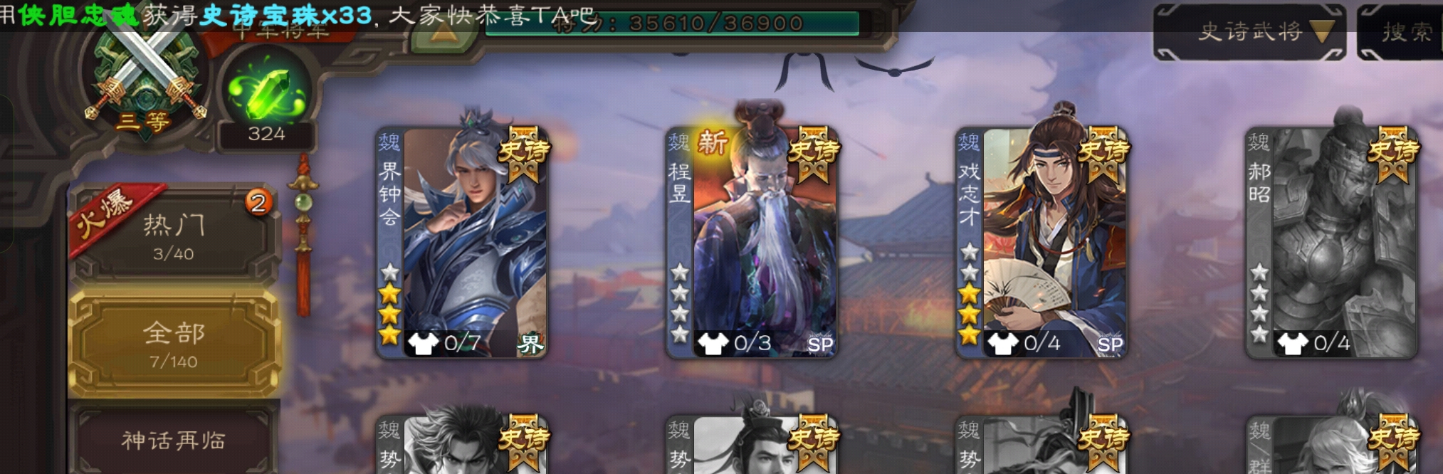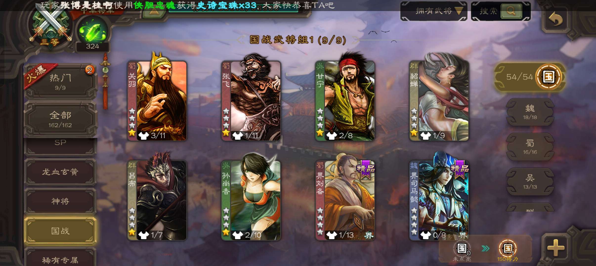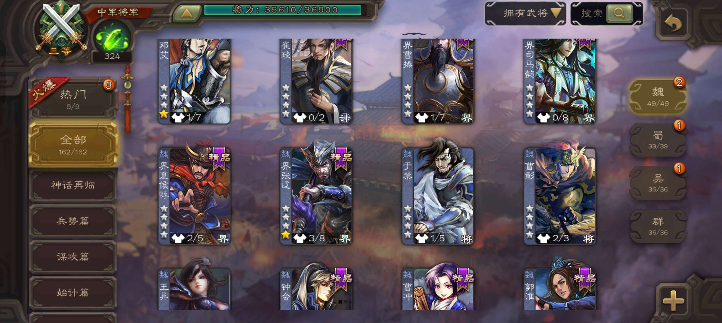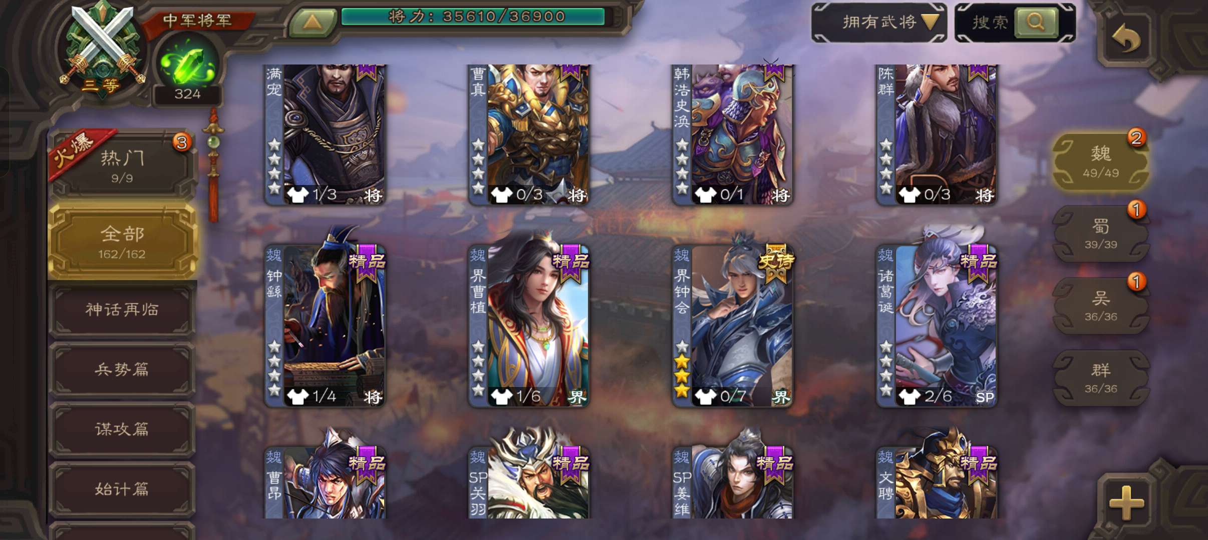 7史诗双天工中军,司马孚闫象,回廊动白马神吕布神赵云界钟会戏志才谋赵云程昱,动诸葛果动孙茹162将