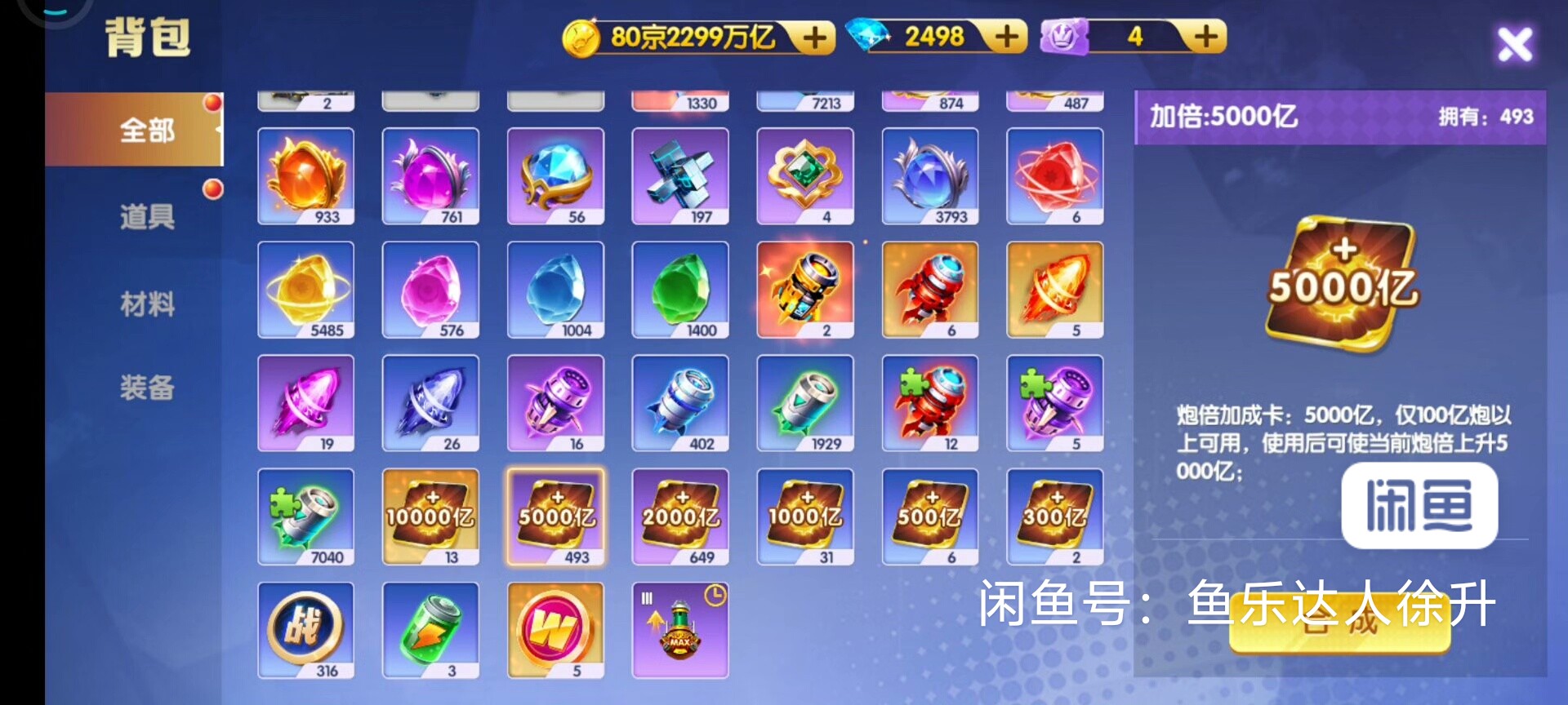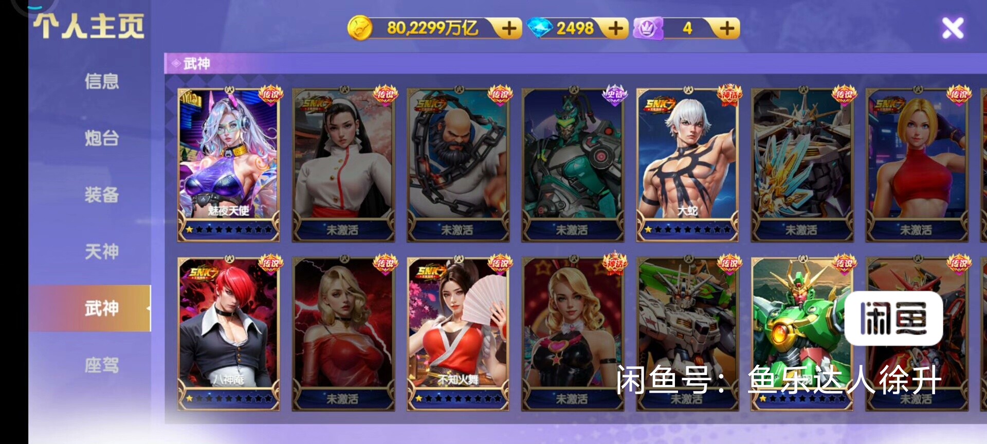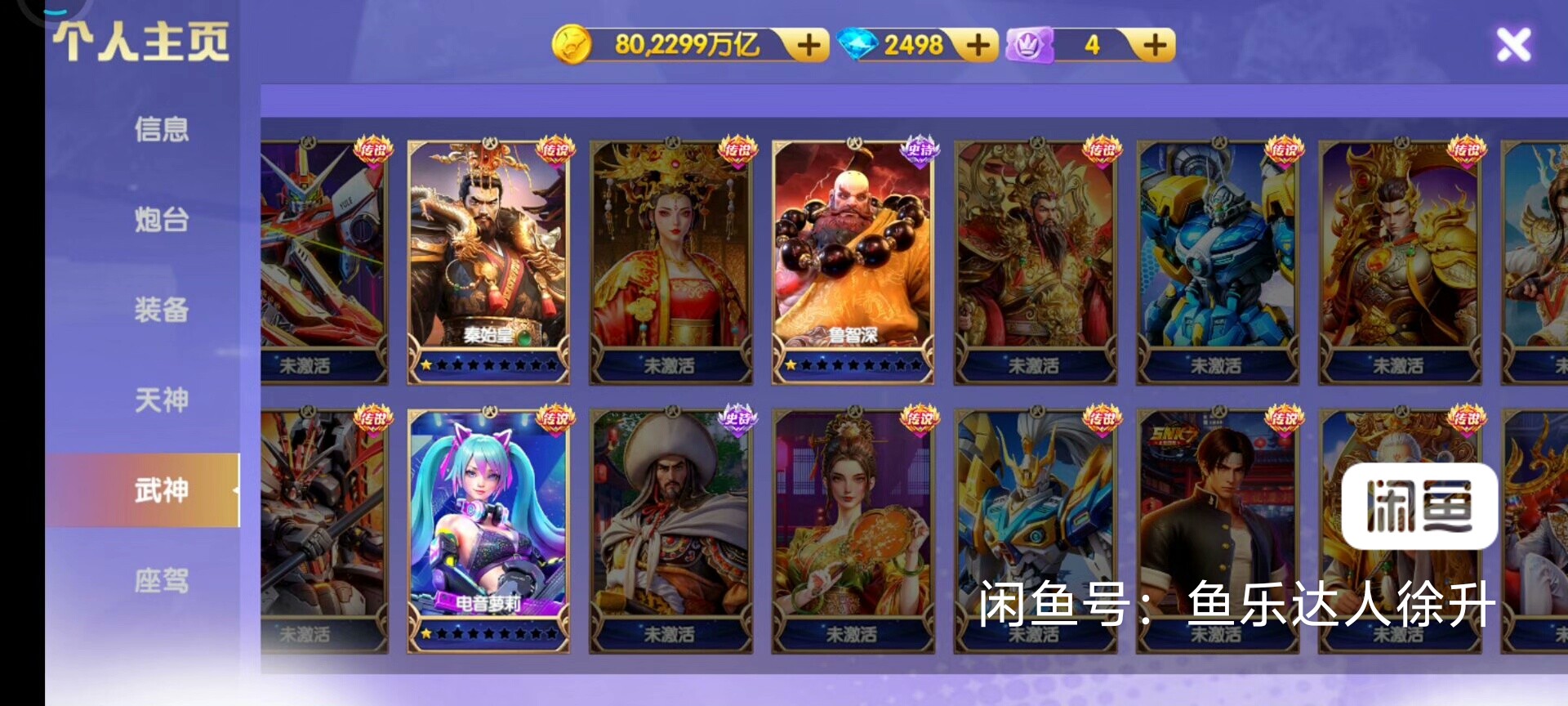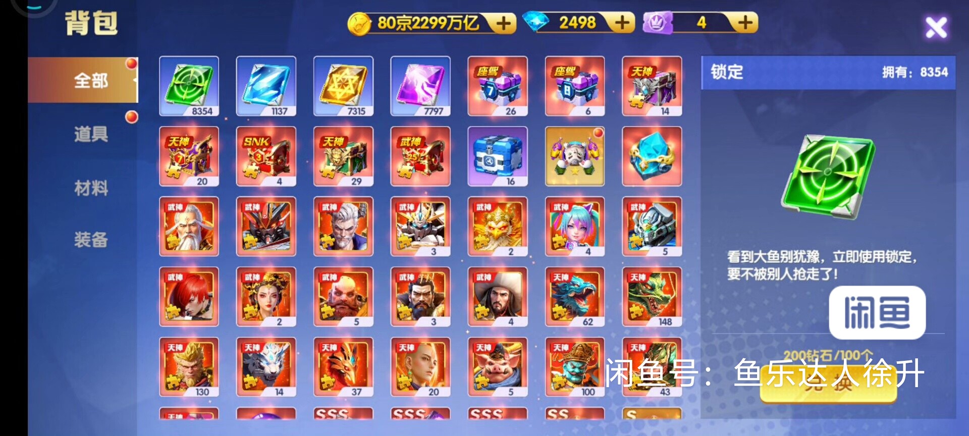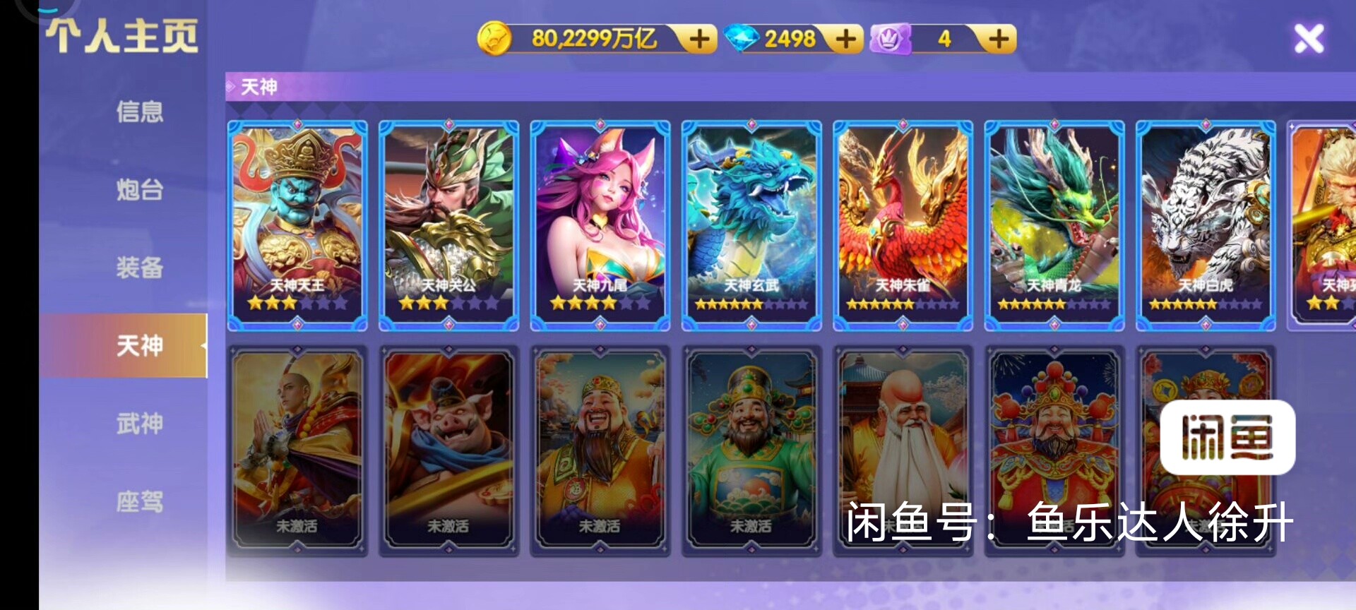 鱼乐达人小米版 神装套80京买断带号出万炮8个武神 洪荒3天神334