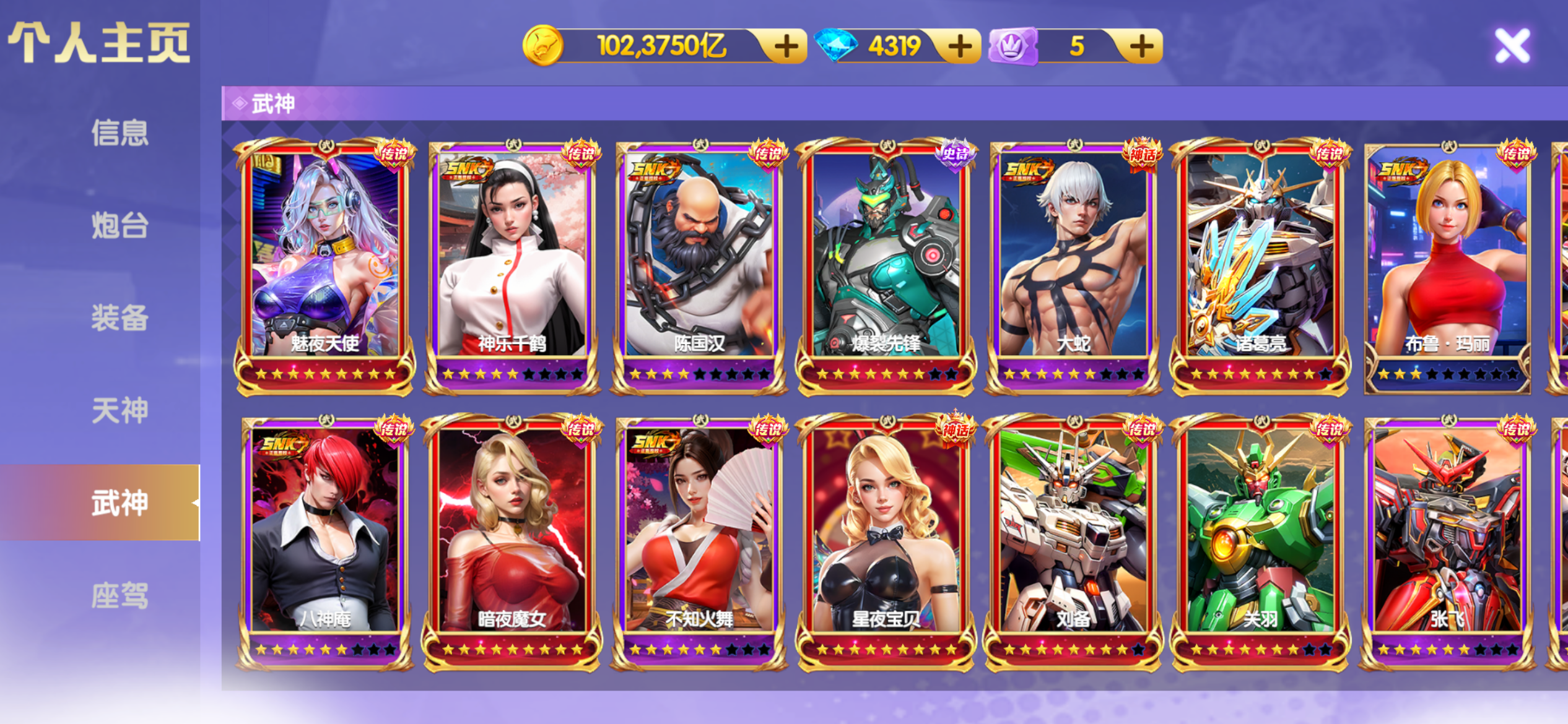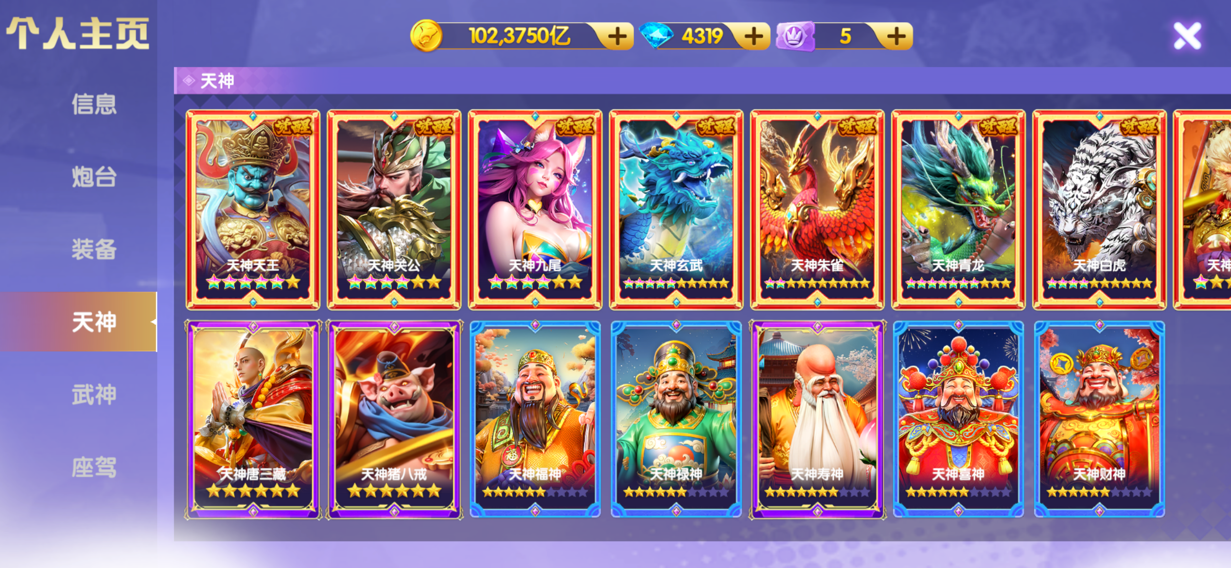 武神羁绊多,天神也不错,本人诚心脱坑,如果是鱼乐达人爱好玩家我这个价格绝对实惠。