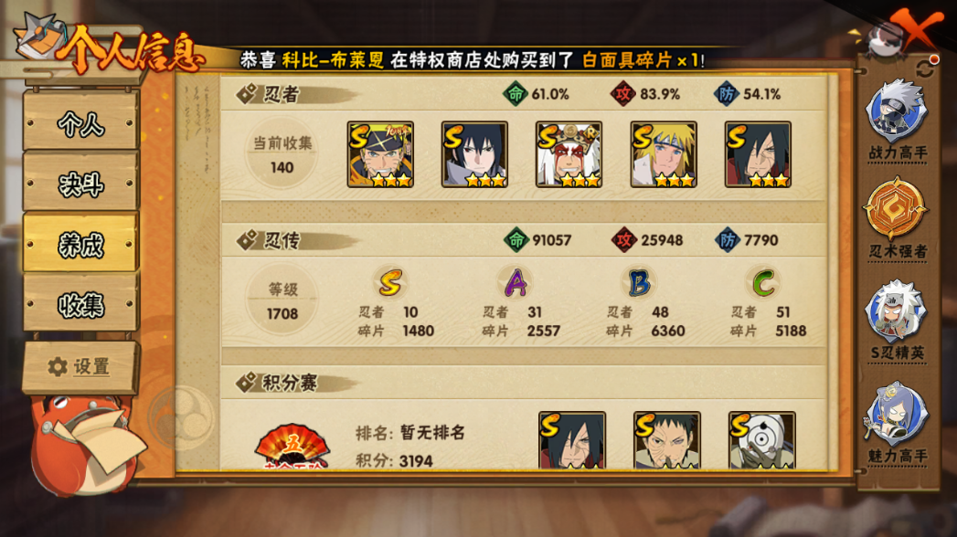 (可转苹果)822w紫狗破面白面具10s夏日鼬31a战力82