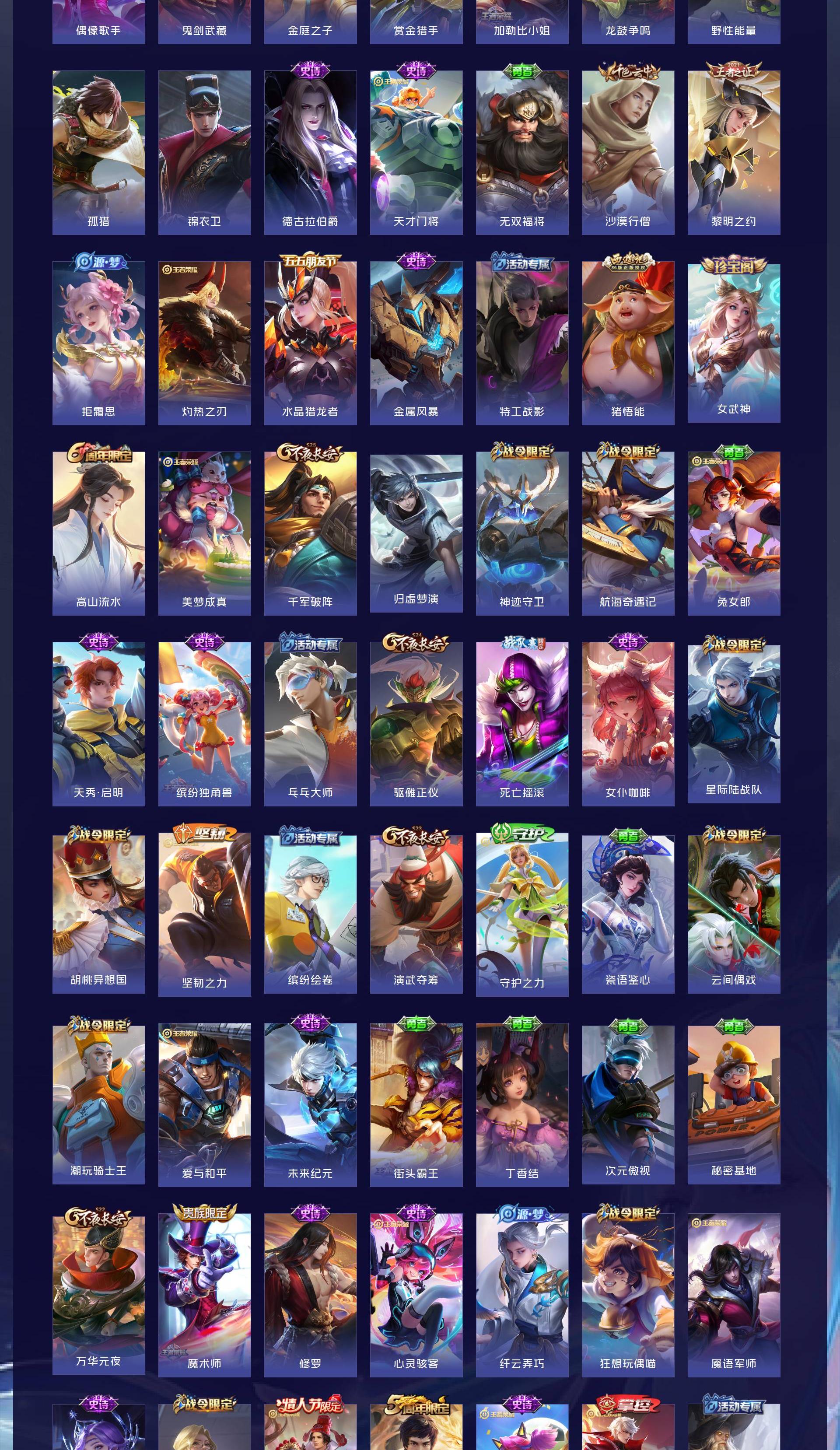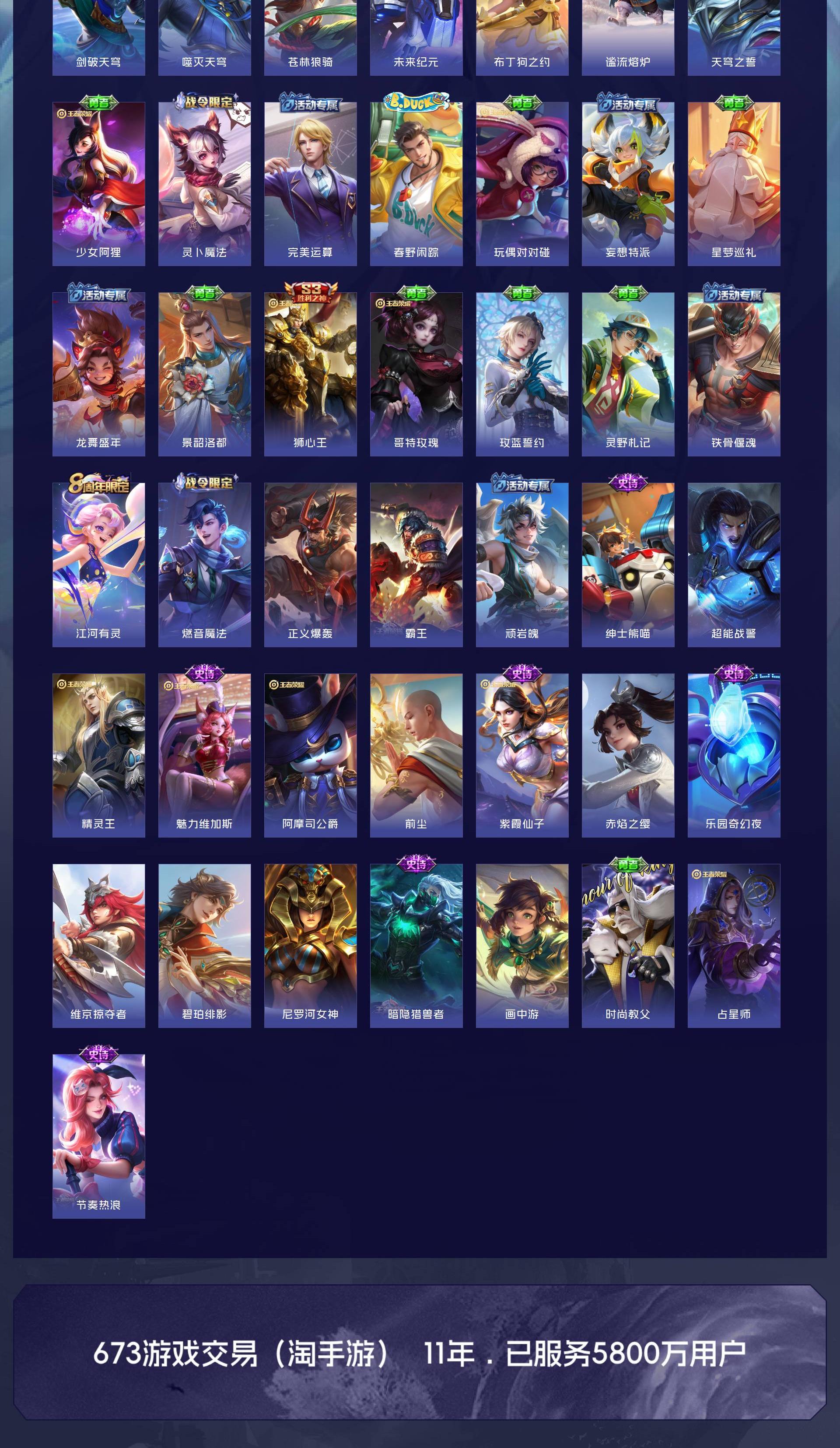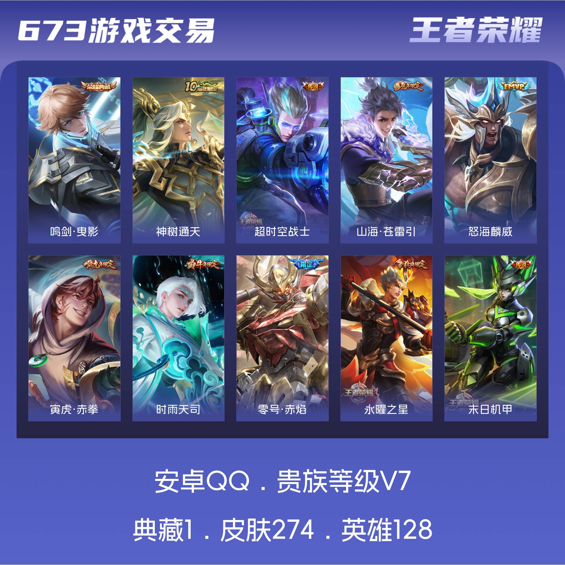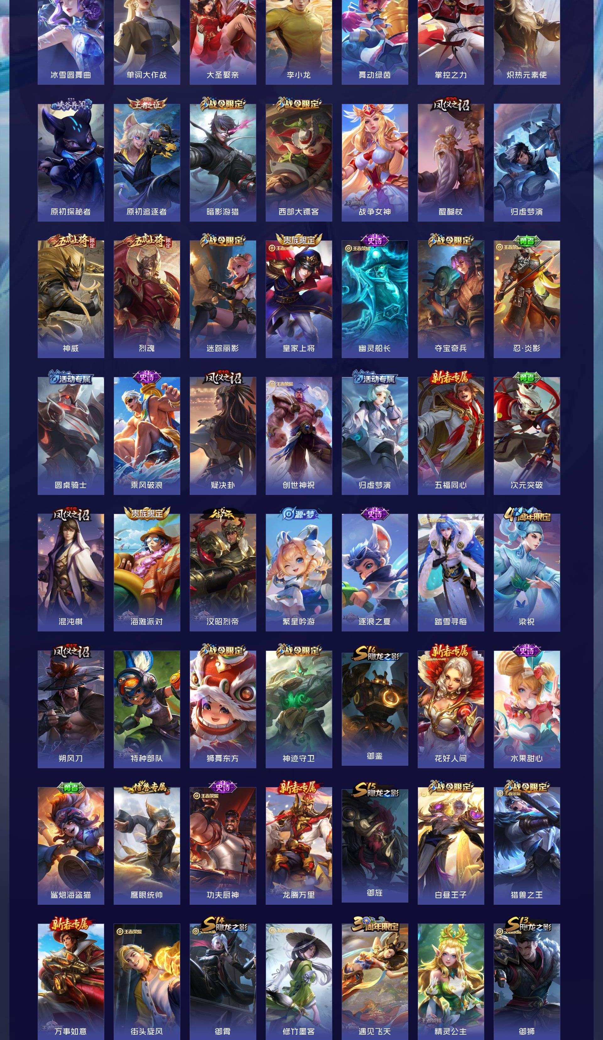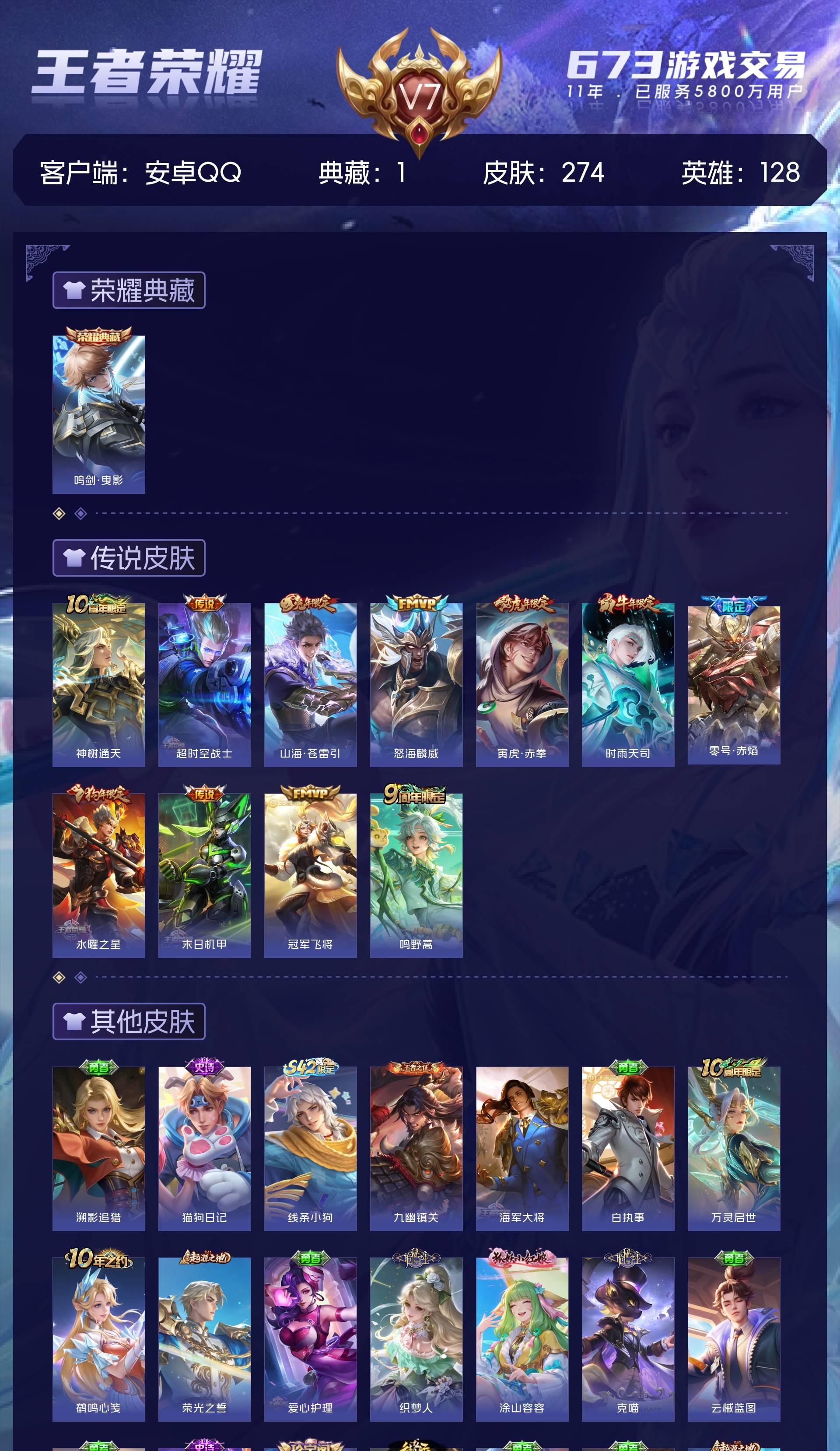 V7 皮肤274 英雄128 至尊星耀 荣耀典藏1 传说11 其他皮肤267