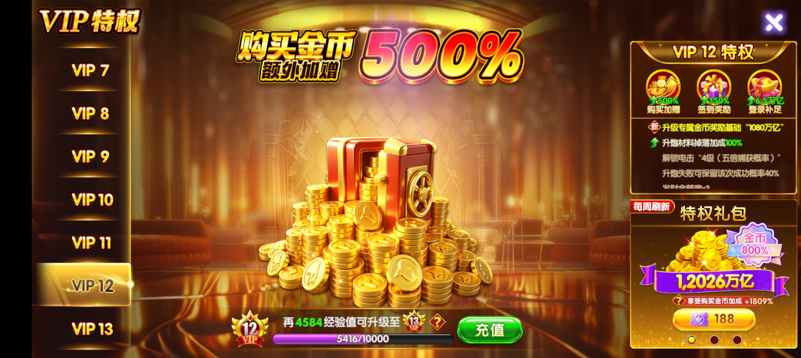 出V12官方号,10京金币,洪荒3,900连击,多个武神,天神翻倍