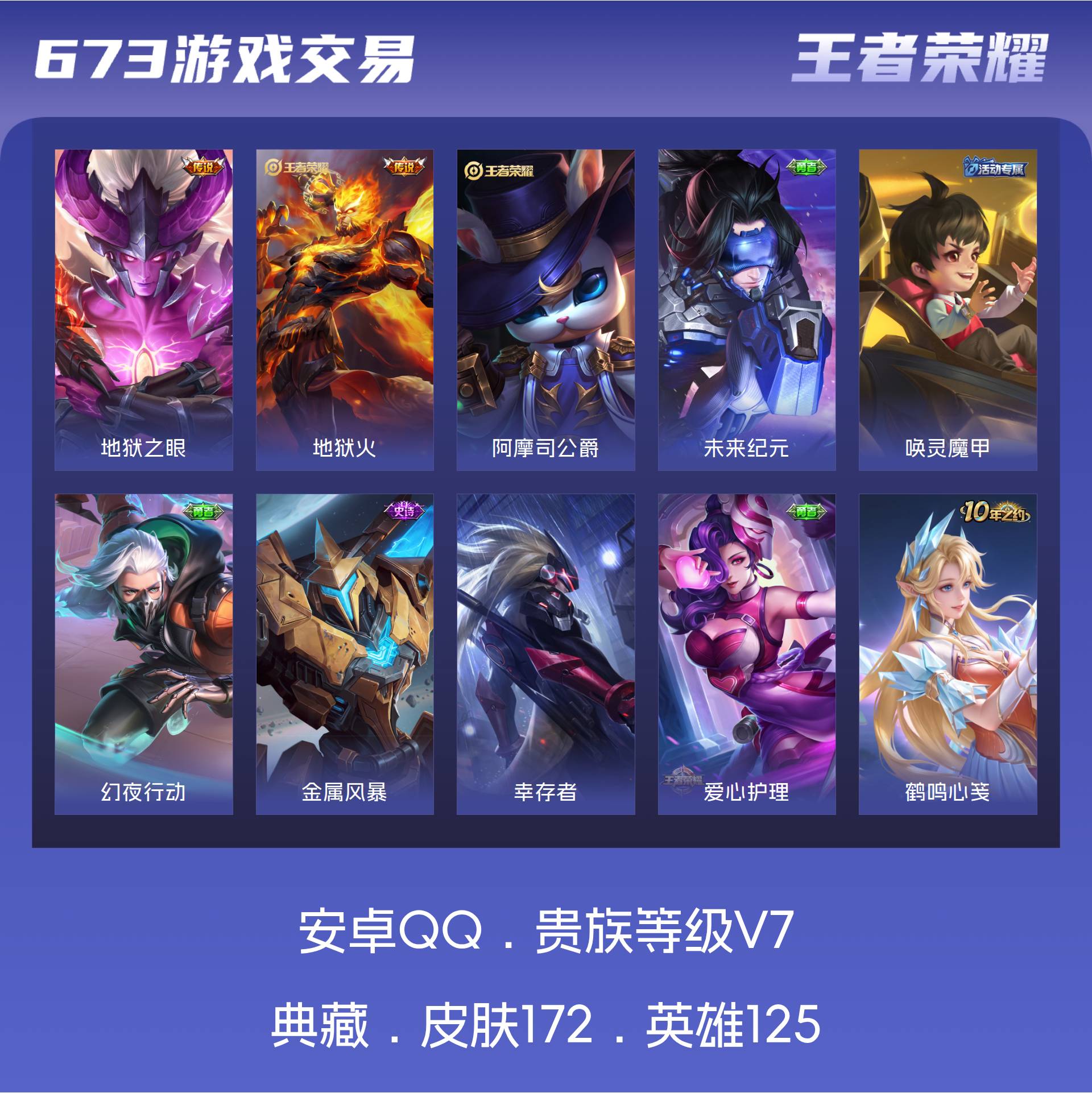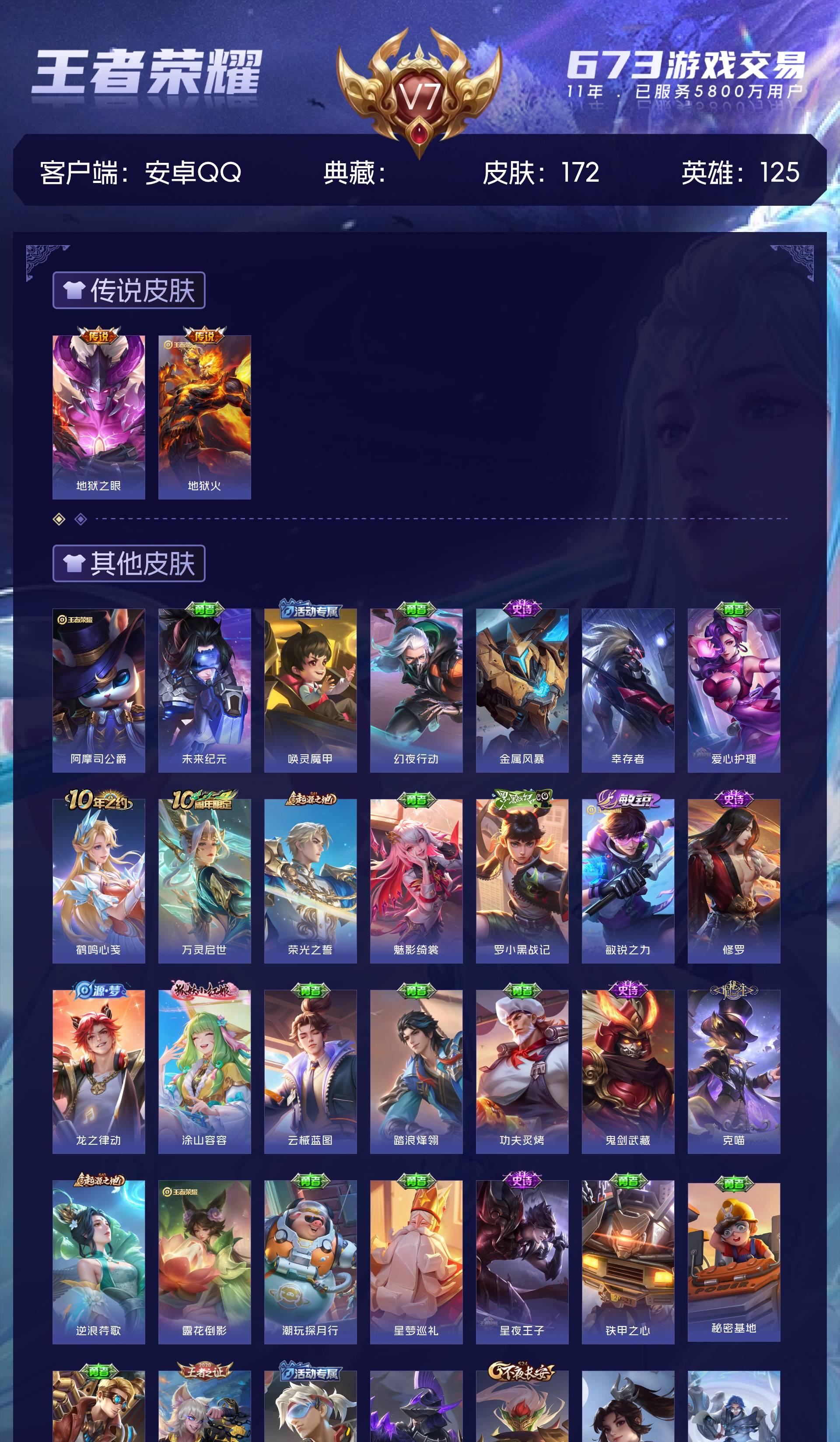 V7 皮肤172 英雄125 永恒钻石 传说2 其他皮肤176