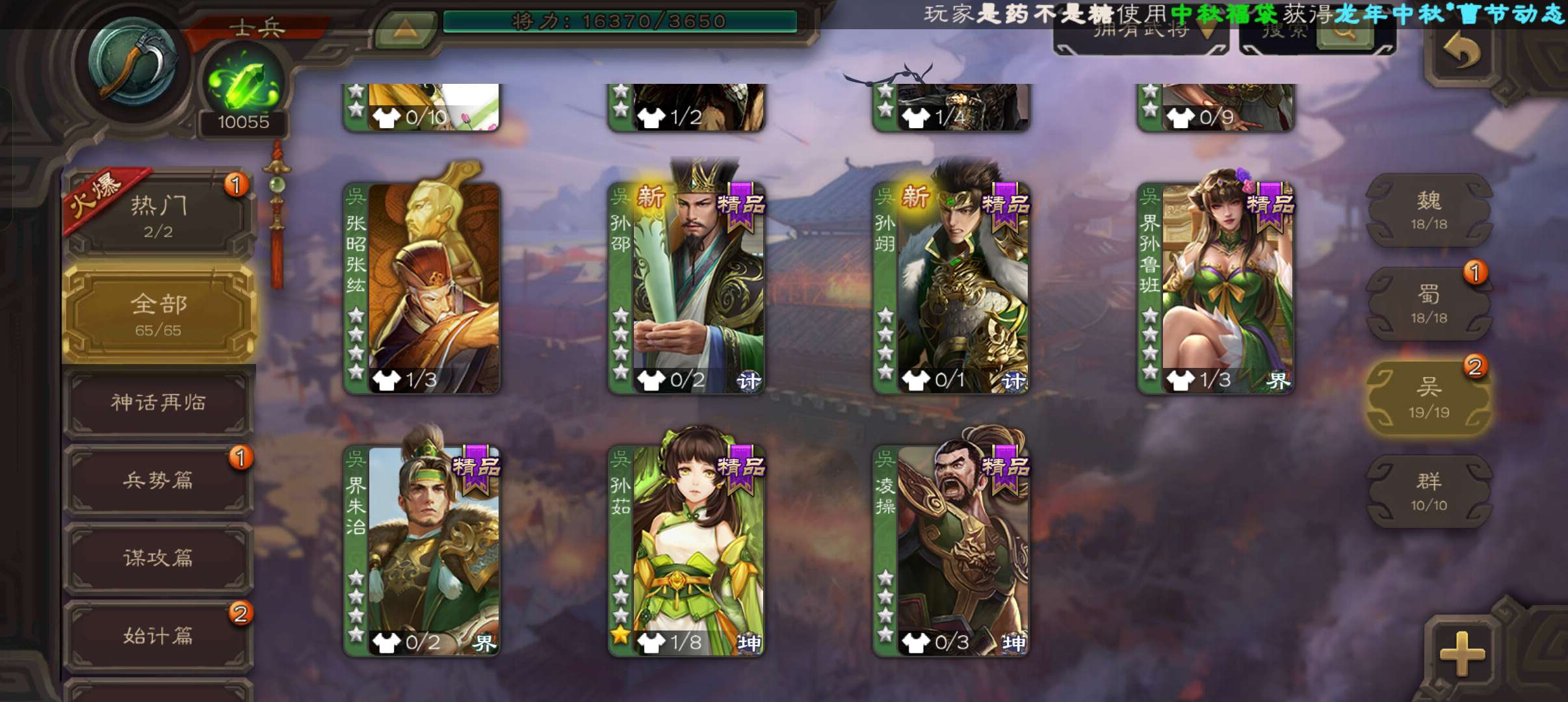 65将士兵,风灯未亮,44.2宝珠9万羽毛1万将魂,148招募令7.6万豆,关银屏甘夫人孙茹凌操
