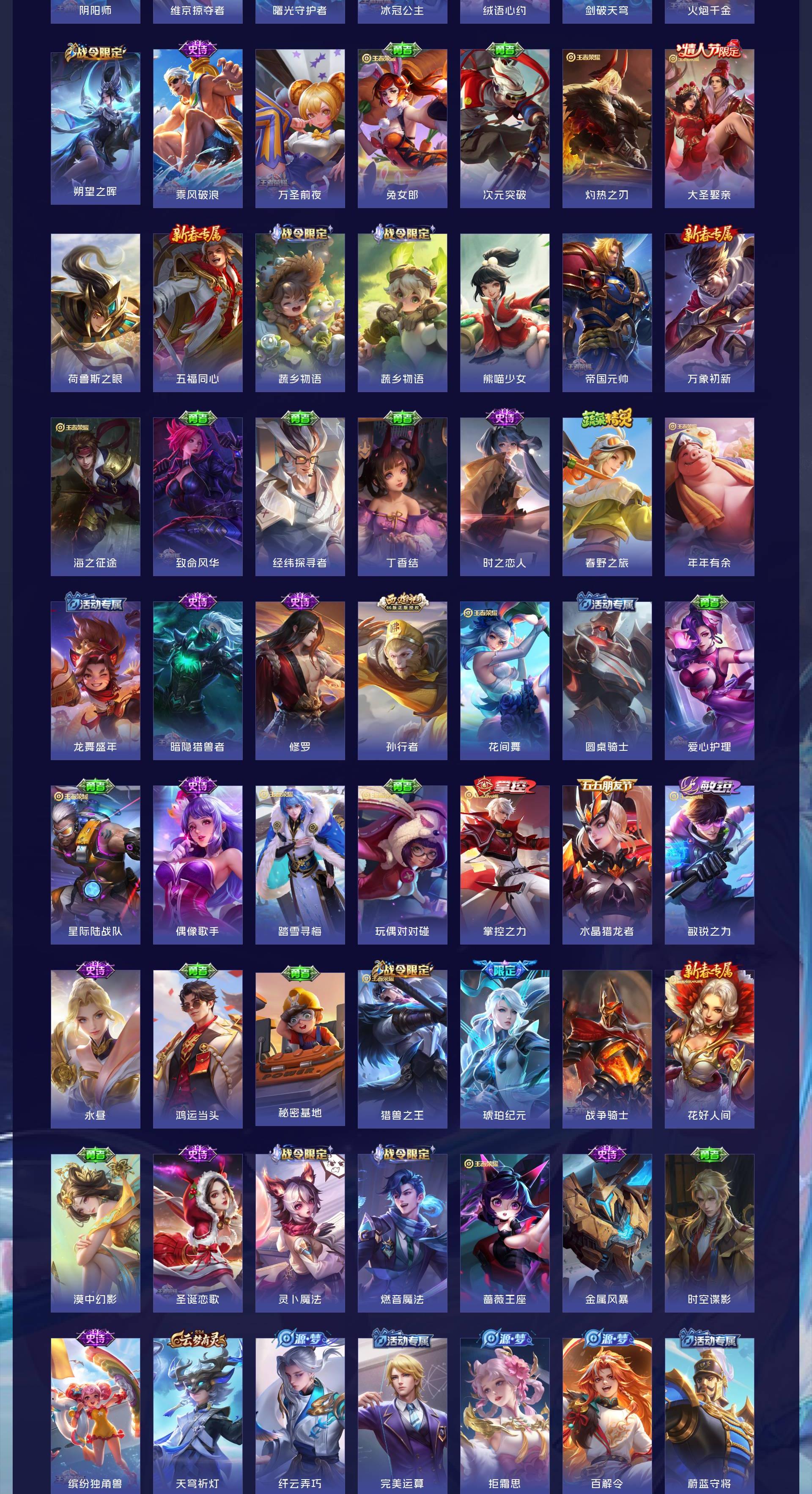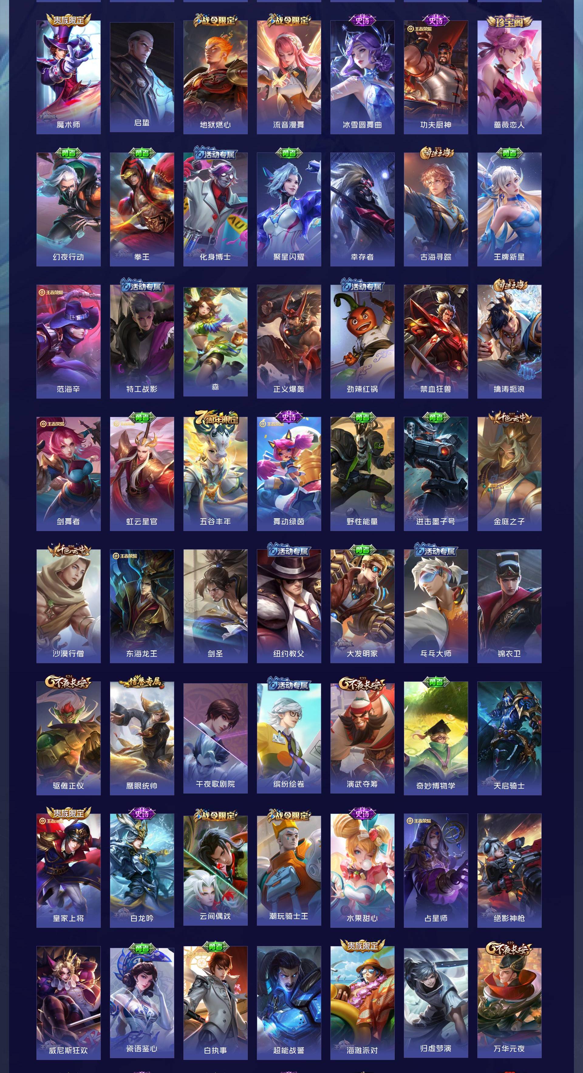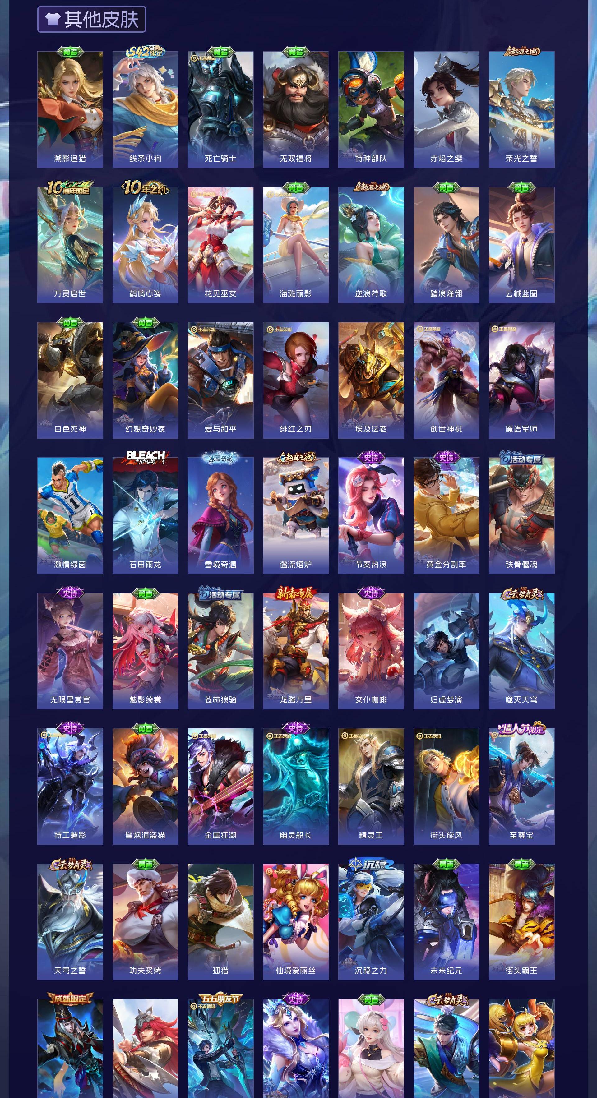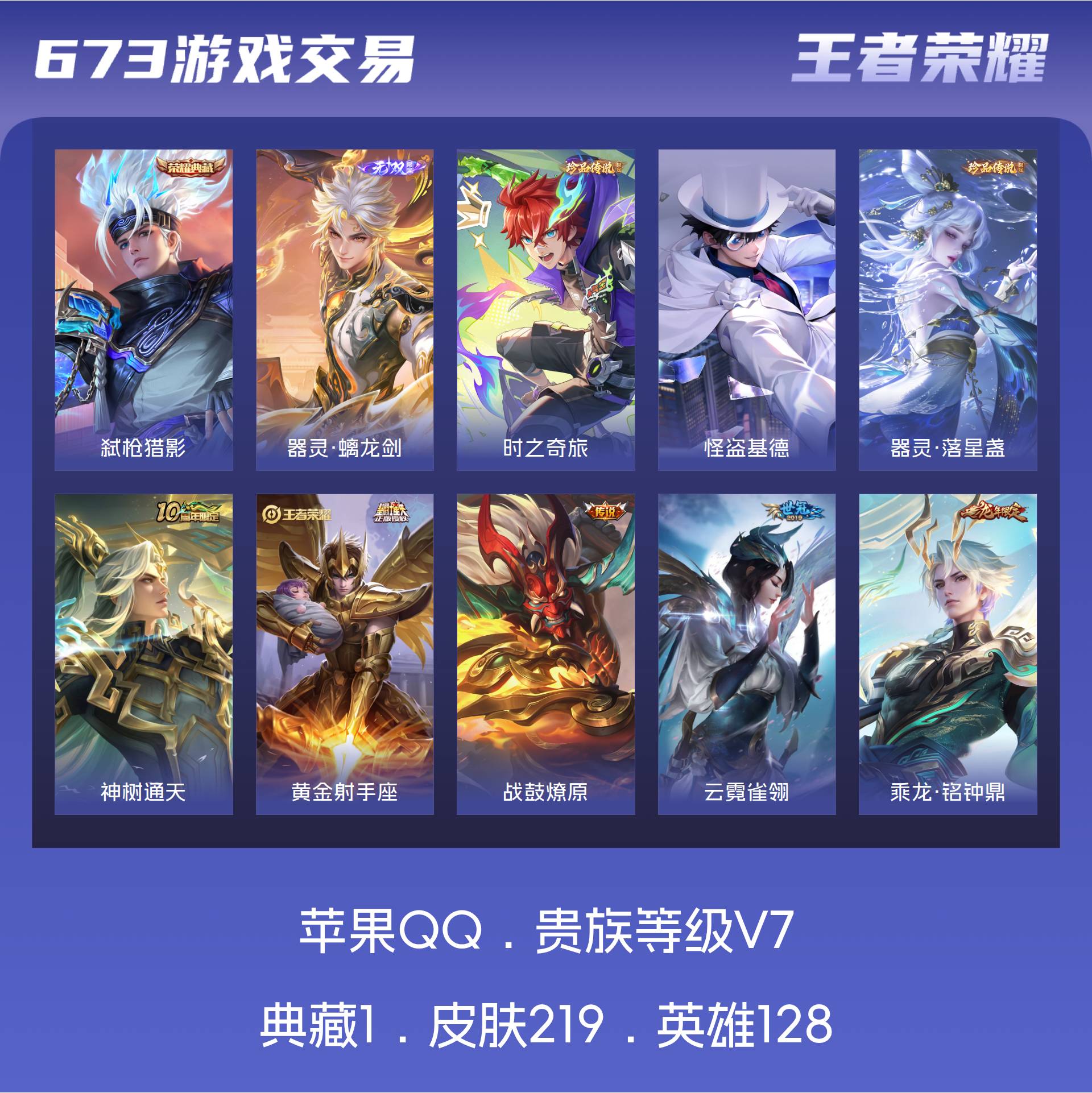 V7 皮肤219 英雄128 永恒钻石 荣耀典藏1 无双皮肤1 珍品传说3 传说8 其他皮肤212