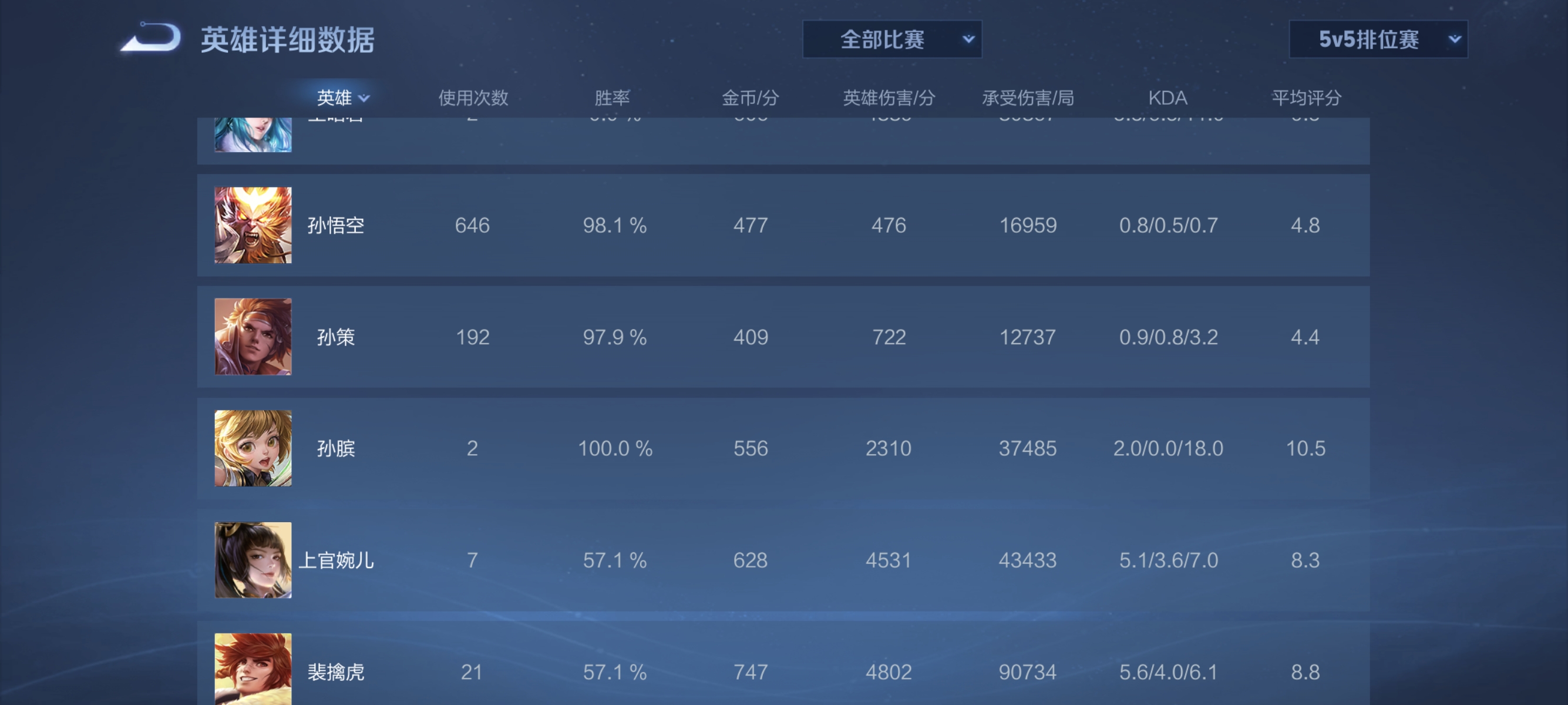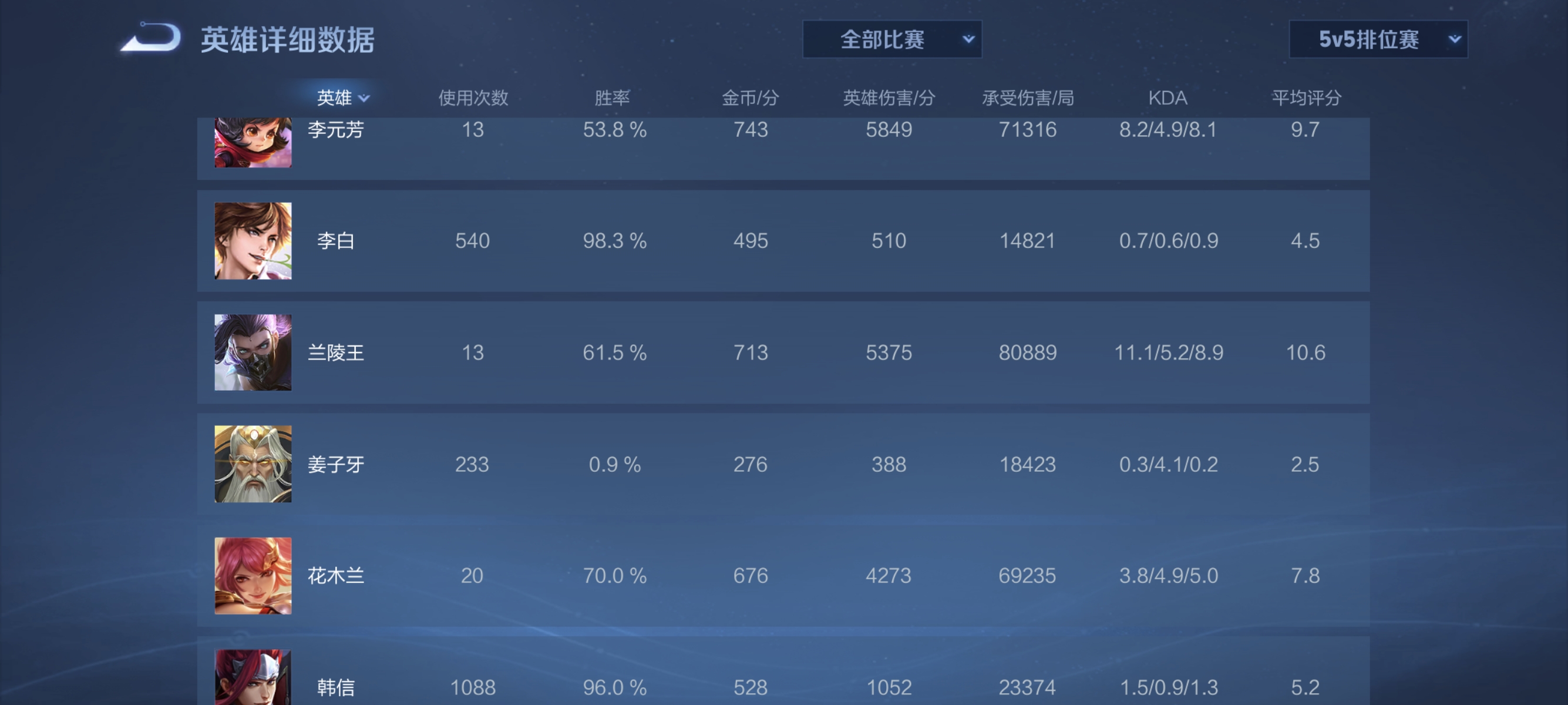 超高胜率,基本全是排位