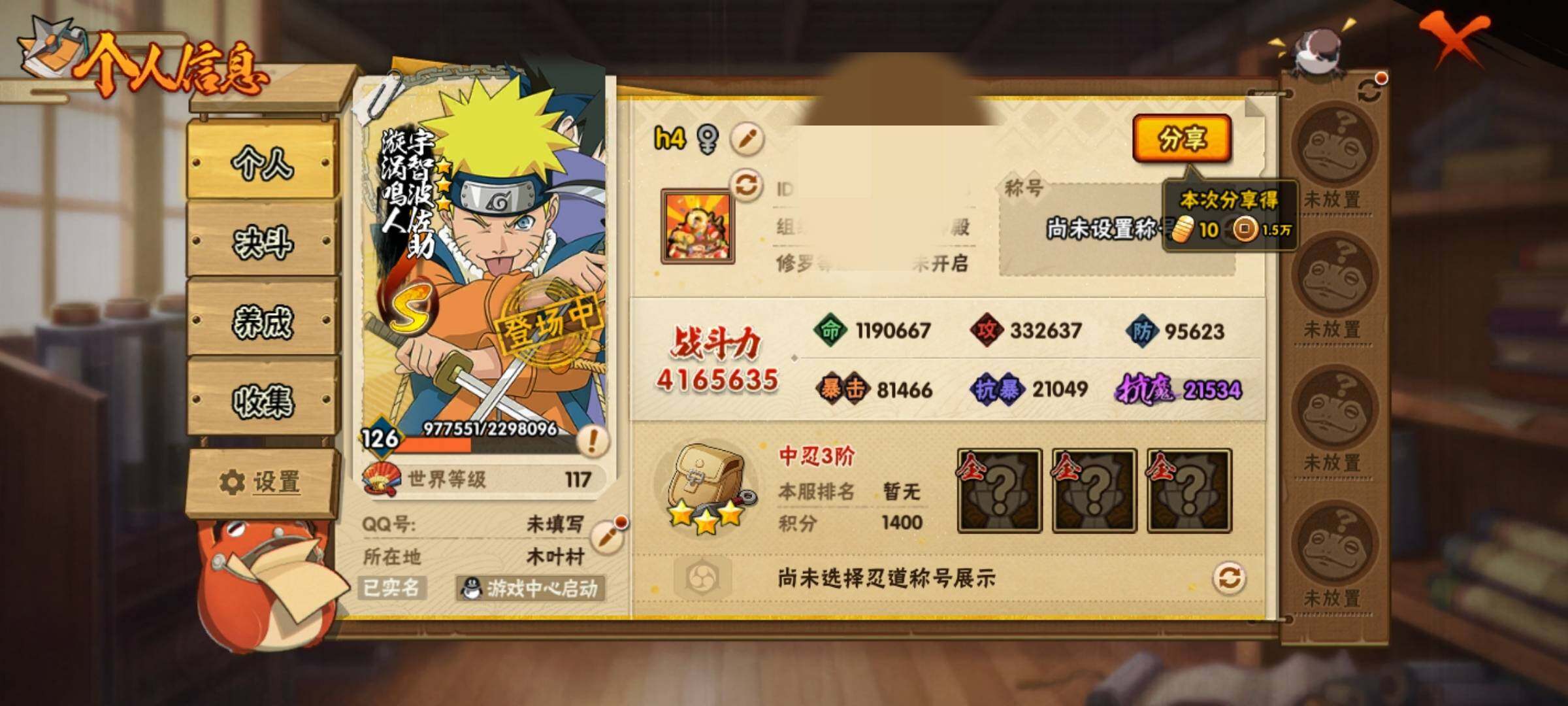 V0/S忍5/A忍18/舞之豪杰-自来也/2星桃地再不斩「秽土转生」/3星波风水门「九喇嘛连结」
