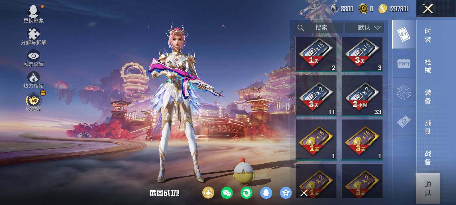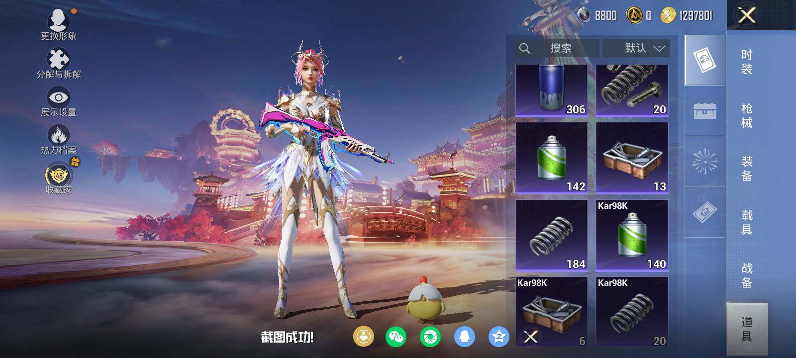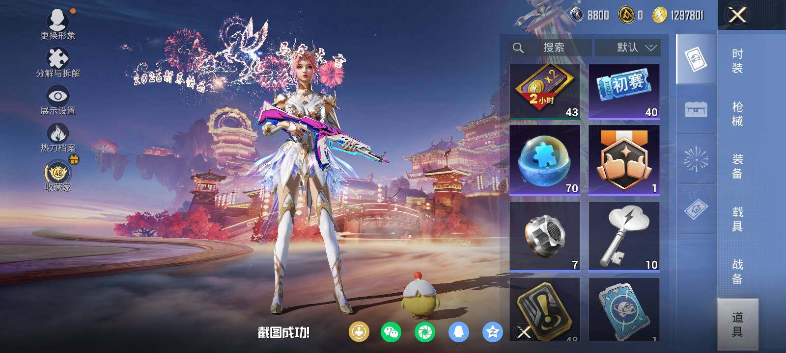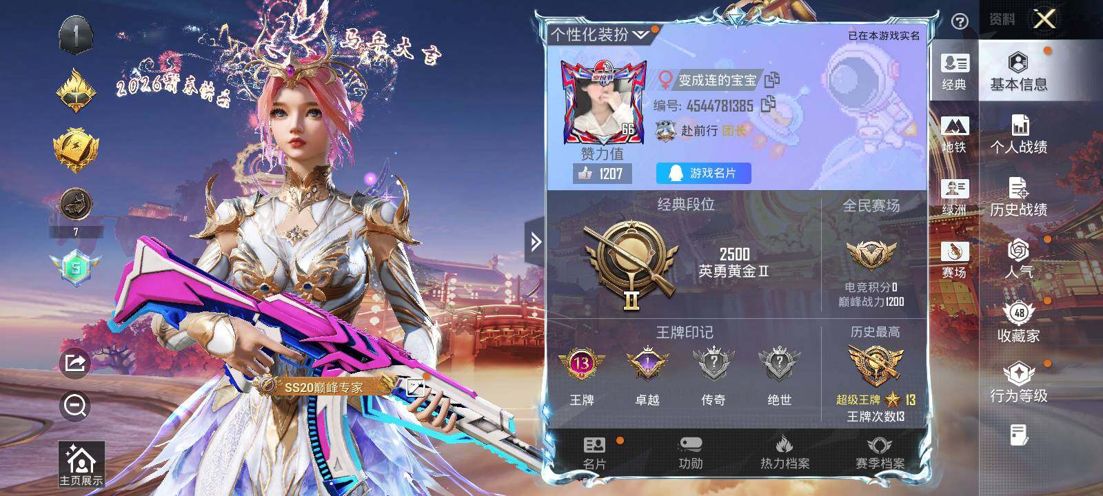 安卓 手Q-6粉装-7特效枪-0载具-0粉色飞行器-39987热力值-13王牌印记-99套装-123枪皮