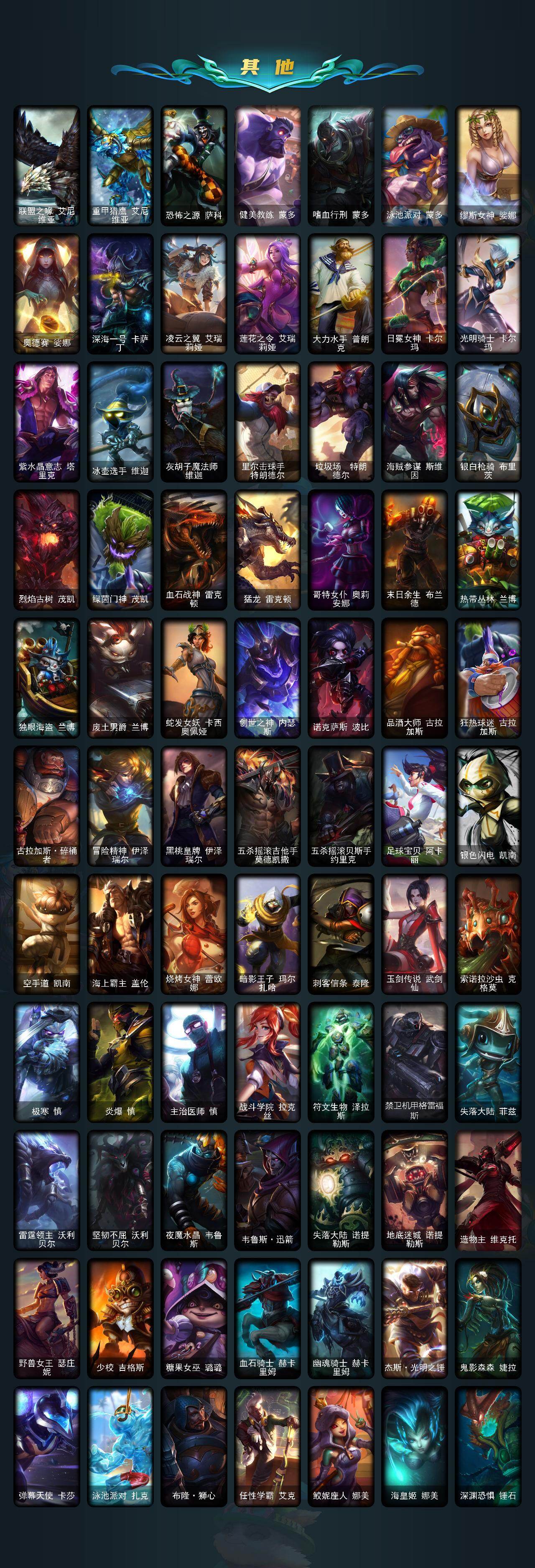 162英雄/245皮肤/4神话/30限定/3臻彩/32炫彩/16传说/69史诗/未定级/十周年纪念安妮/