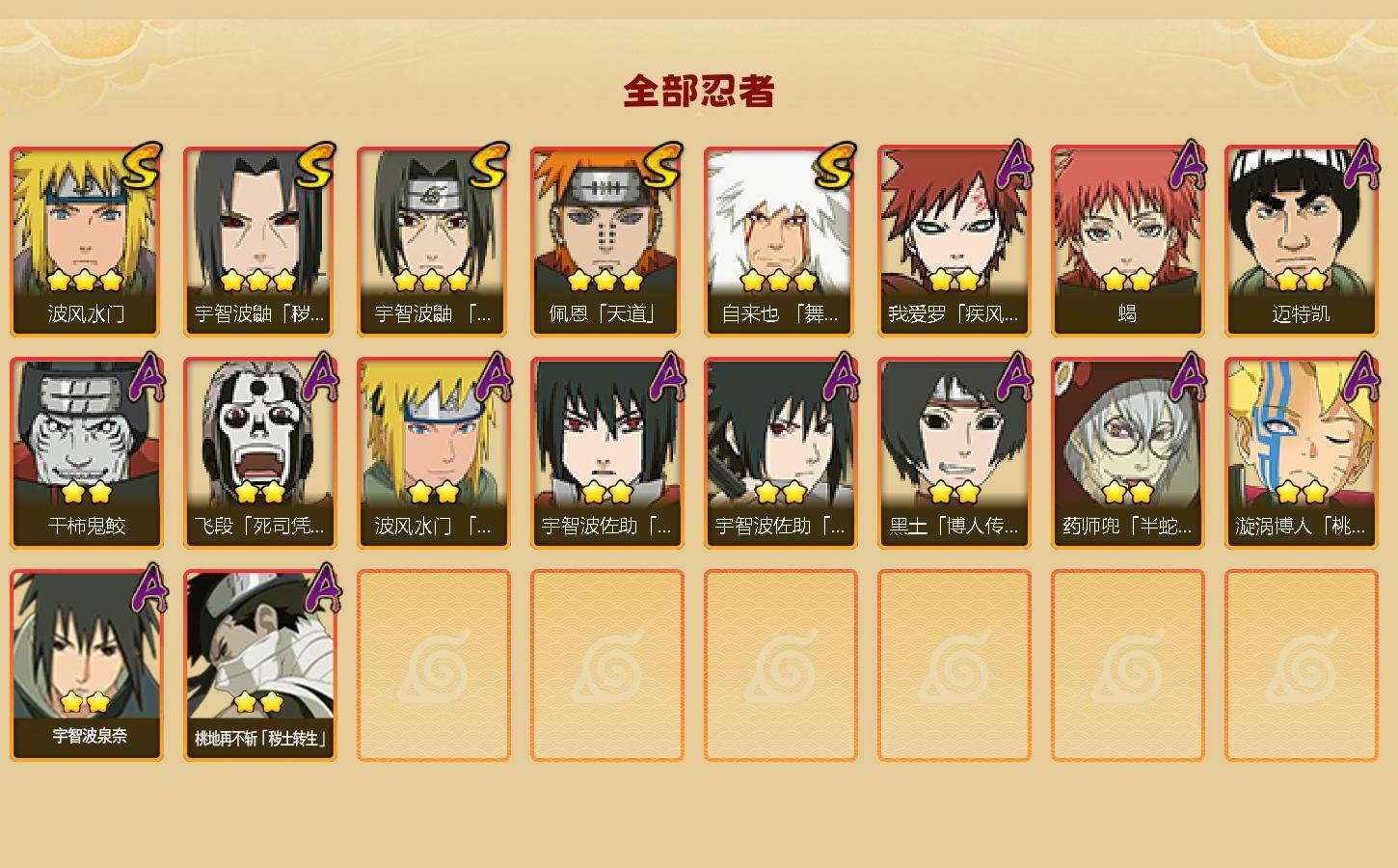 【HYYH1103】V4/S忍5/A忍13/舞之豪杰-自来也/2星桃地再不斩「秽土转生」/疾风传-我爱罗/死司凭血-飞段/秽土转生-宇智波鼬/迈特凯/四代目土影-黑土/蝎/半蛇斗篷-药师兜/天道-佩恩/波风水门/万花筒写轮眼-宇智波佐助/2星宇智波泉奈/干柿鬼鲛/桃式显现-漩涡博人/须佐能乎-宇智波佐助/须佐能乎-宇智波鼬/青年-波风水门