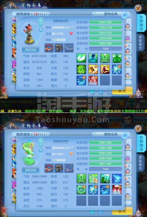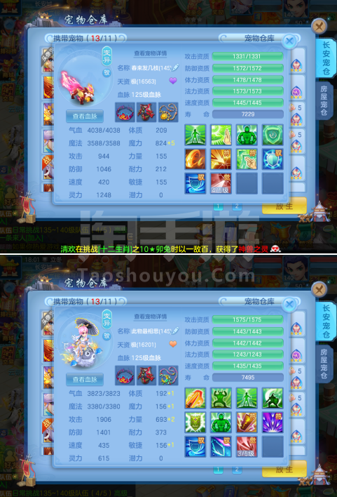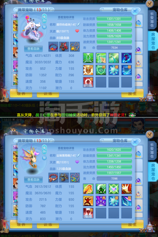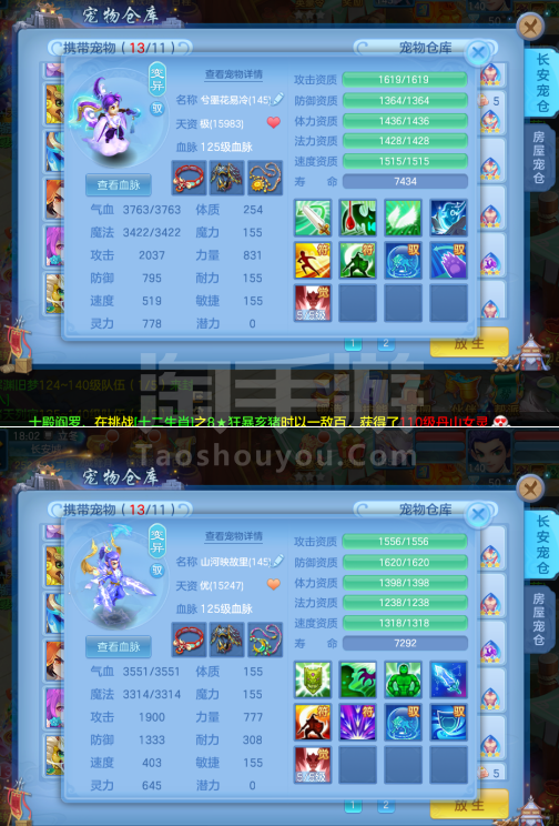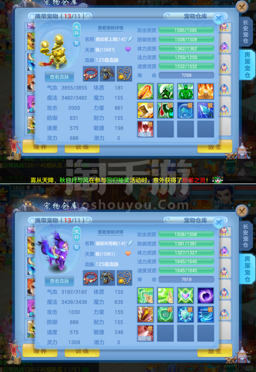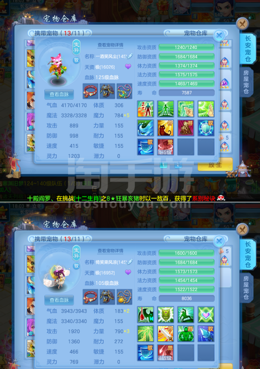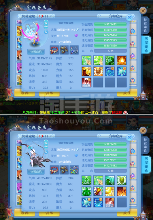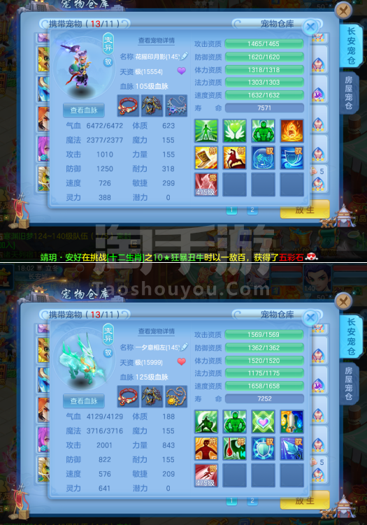 (一年换绑)(140天宫)天下无双/有双重/1件12 5件11-高级坐骑 4个6技能 4专属血脉 10红7黄血脉