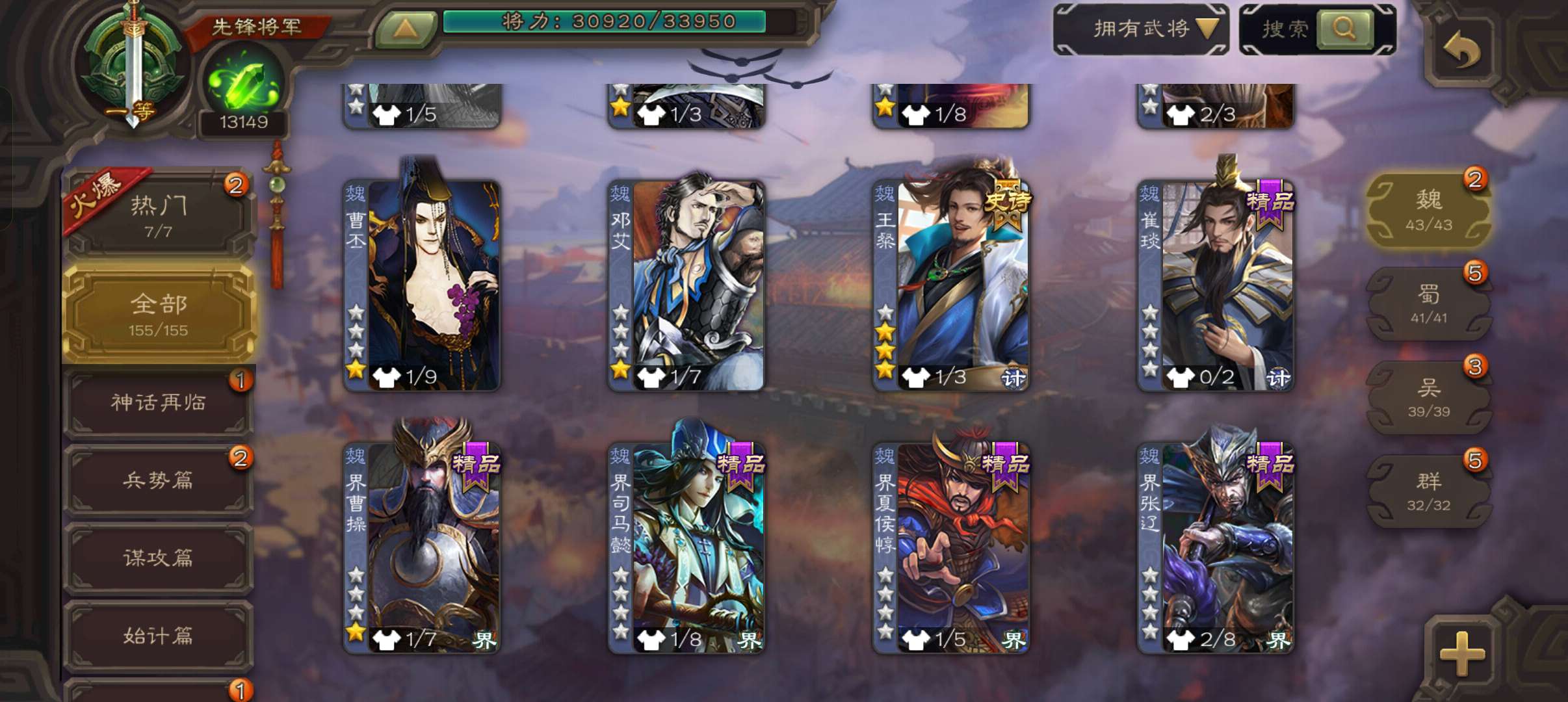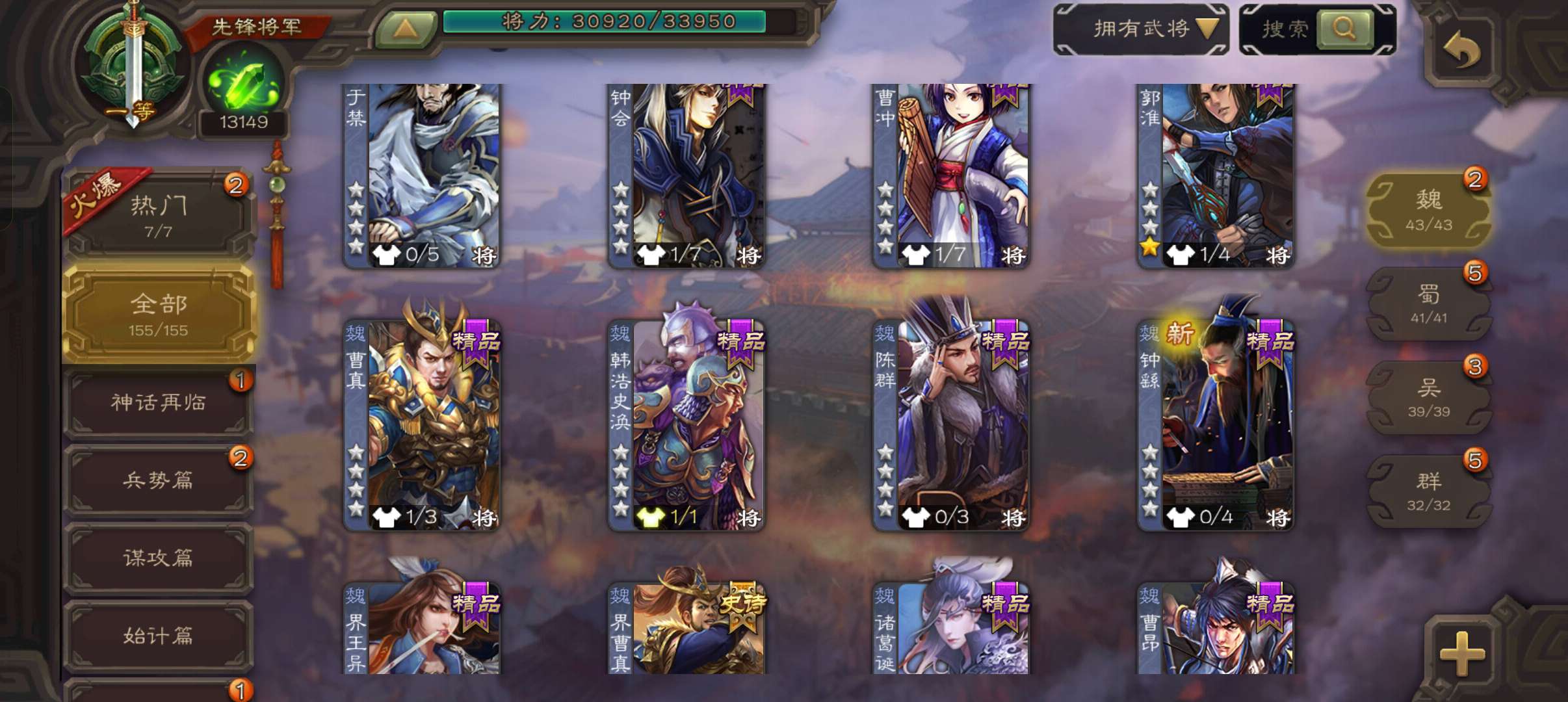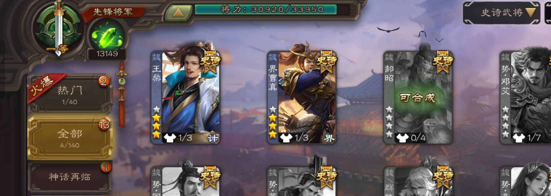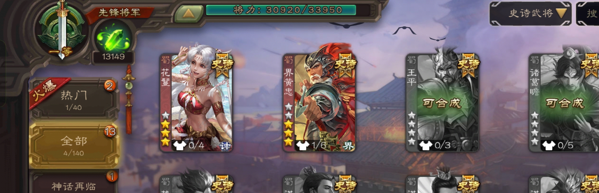 史诗武将数量: