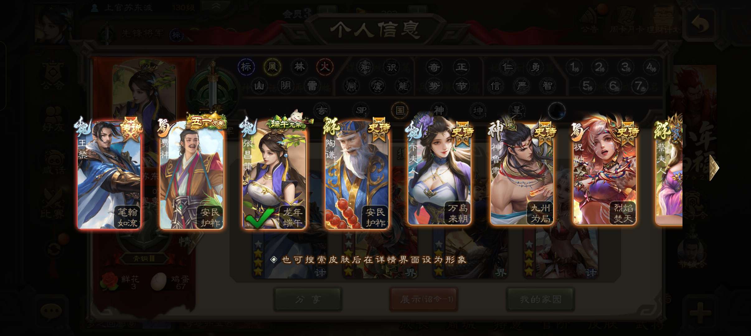 39.6宝珠8.8万羽毛1.3万将魂,回廊动王粲花鬘界黄忠界曹真4史诗一等先锋,关银屏谋韩当155将