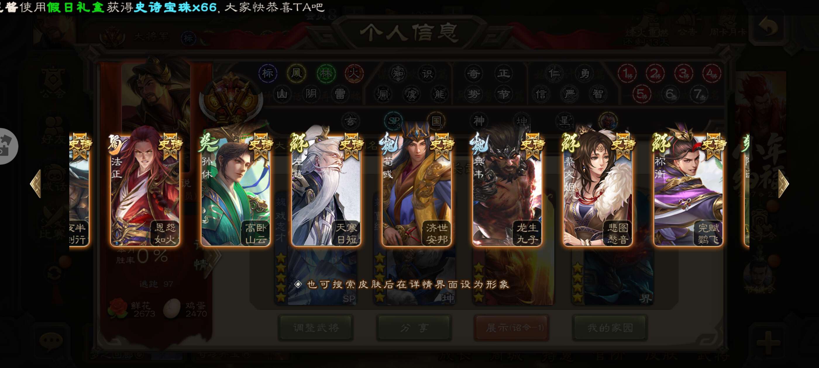 史诗武将数量:
