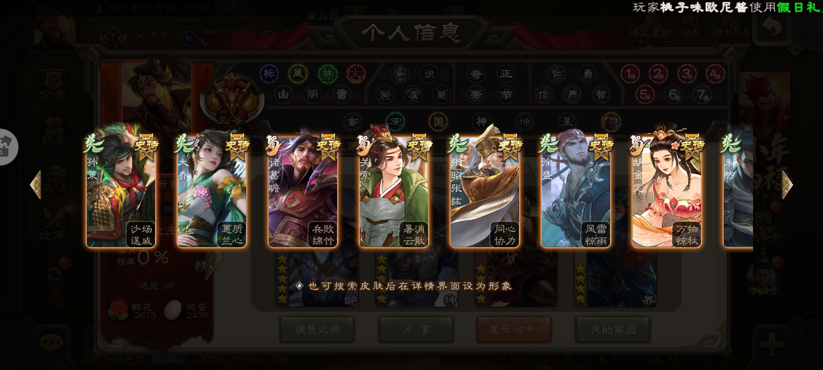 三国杀大将军号,多动态皮史诗传说