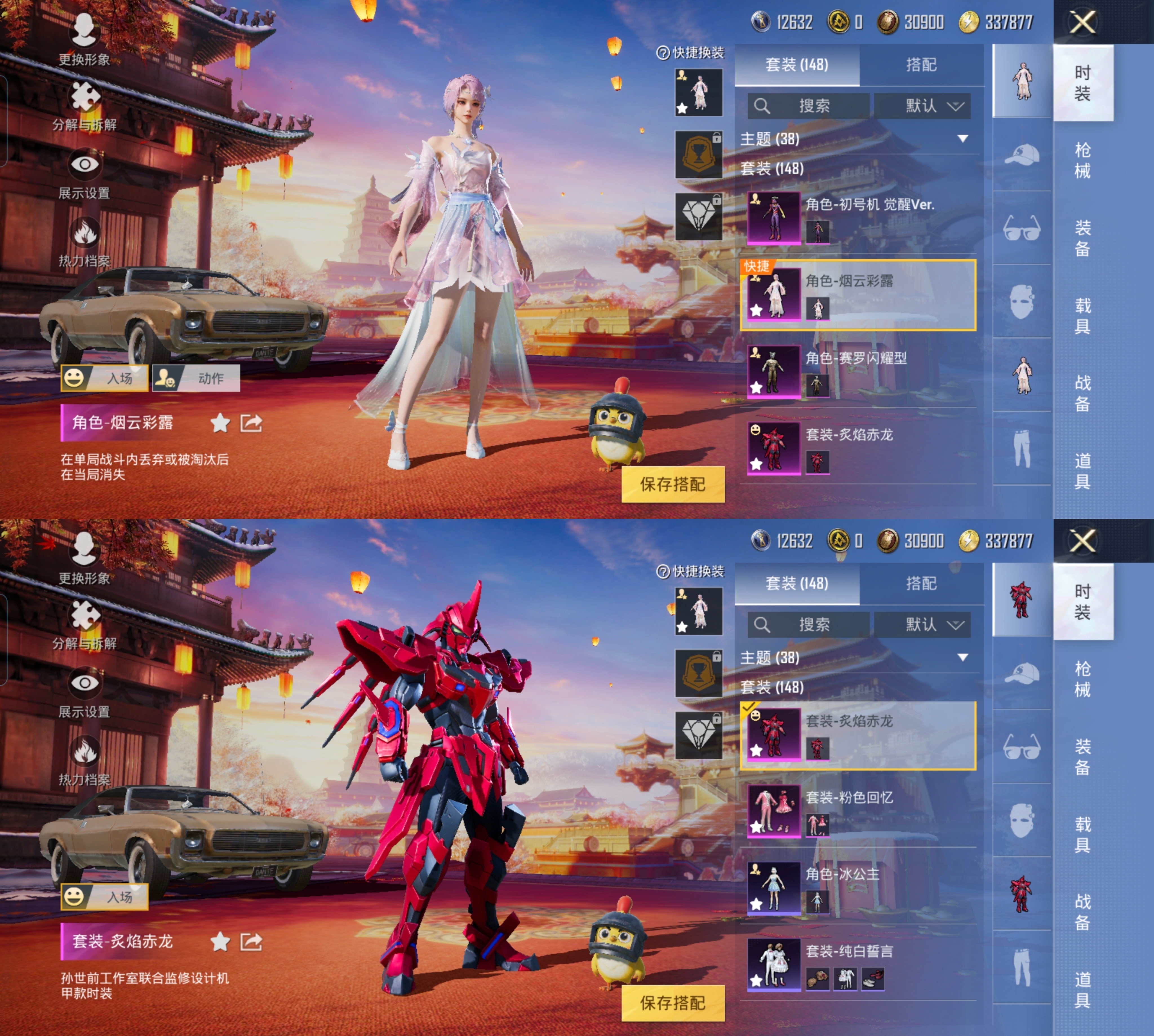 红色套装:
