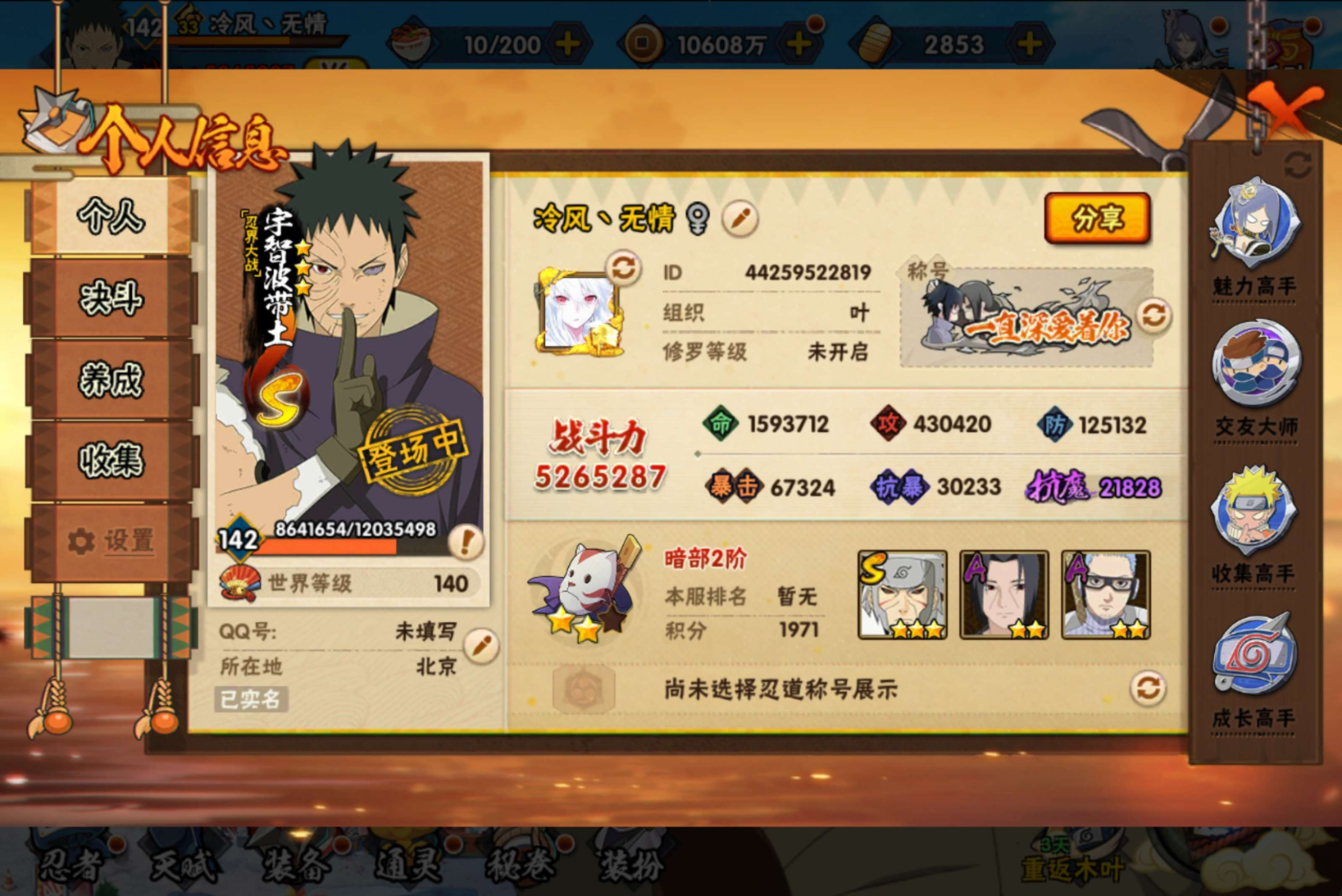 安卓QQ-精选成品号-S忍者数:11- A忍者数:29 宇智波鼬「夏日限定」(2星) 我爱罗「忍界大战」(2星) 大野木「侠隐江湖」(2星)
