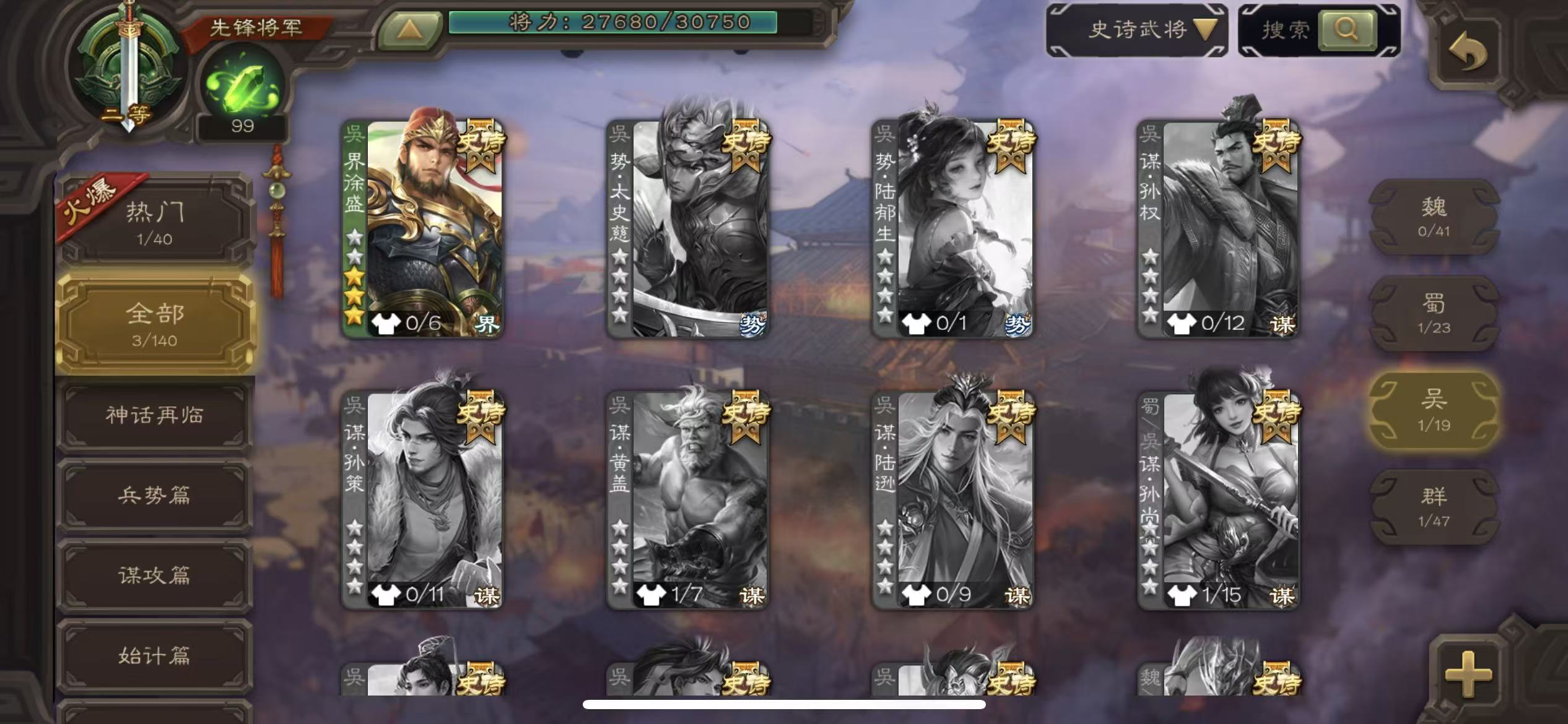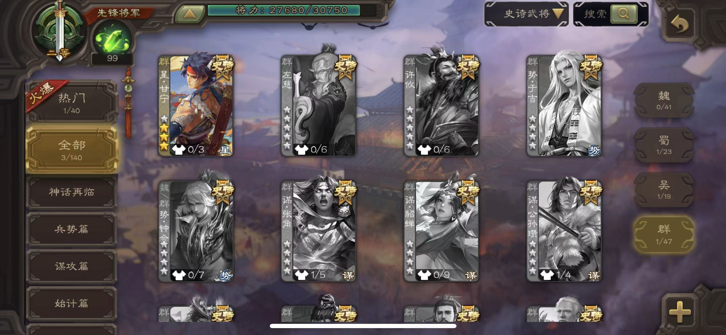 史诗武将数量: