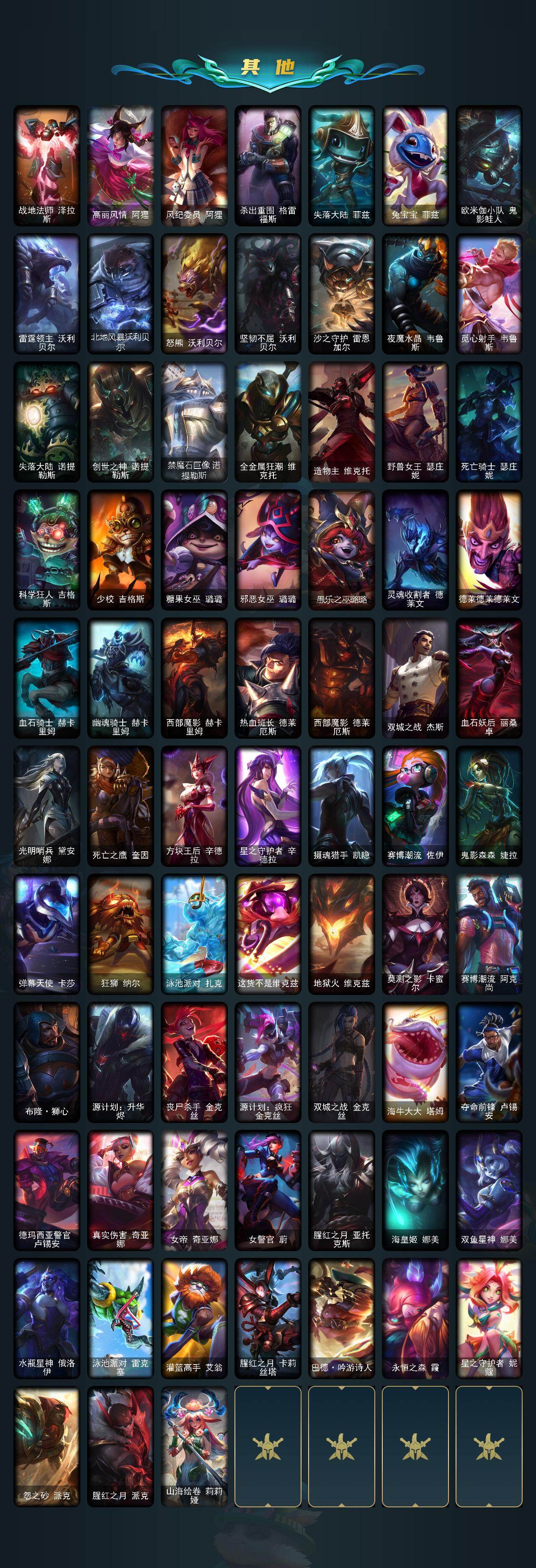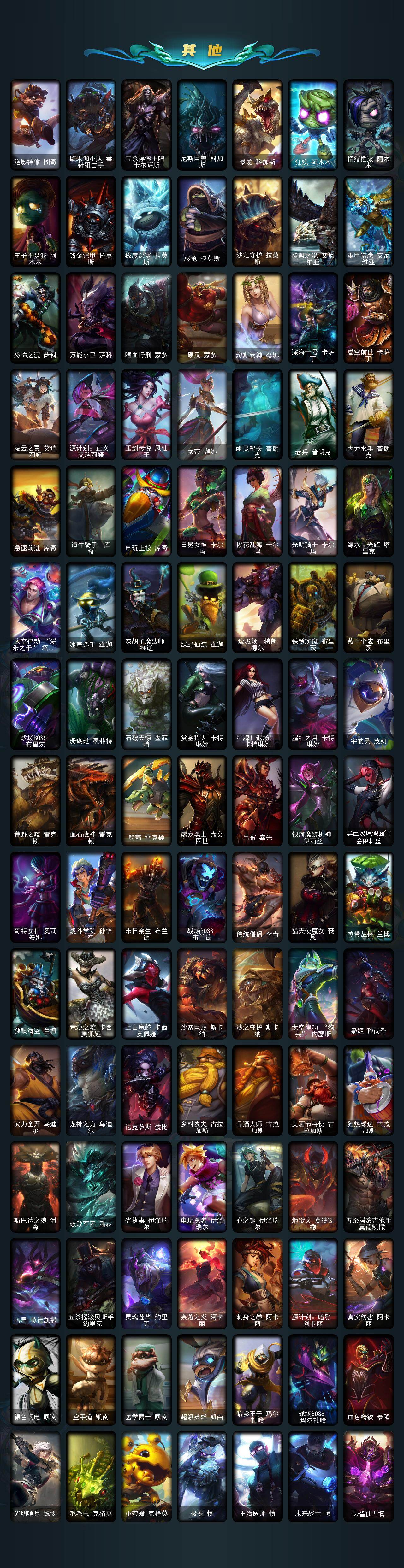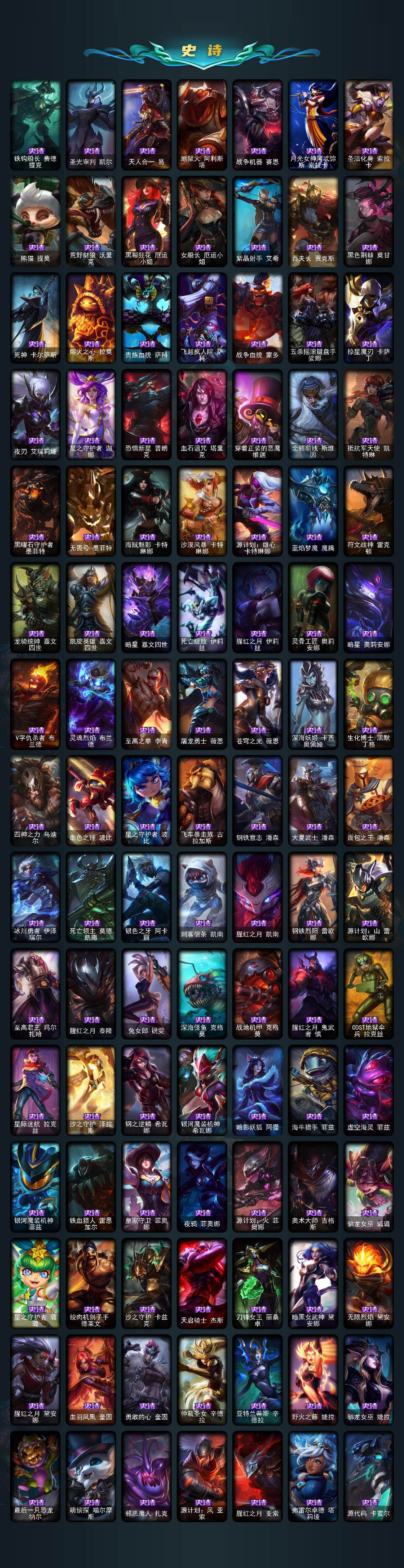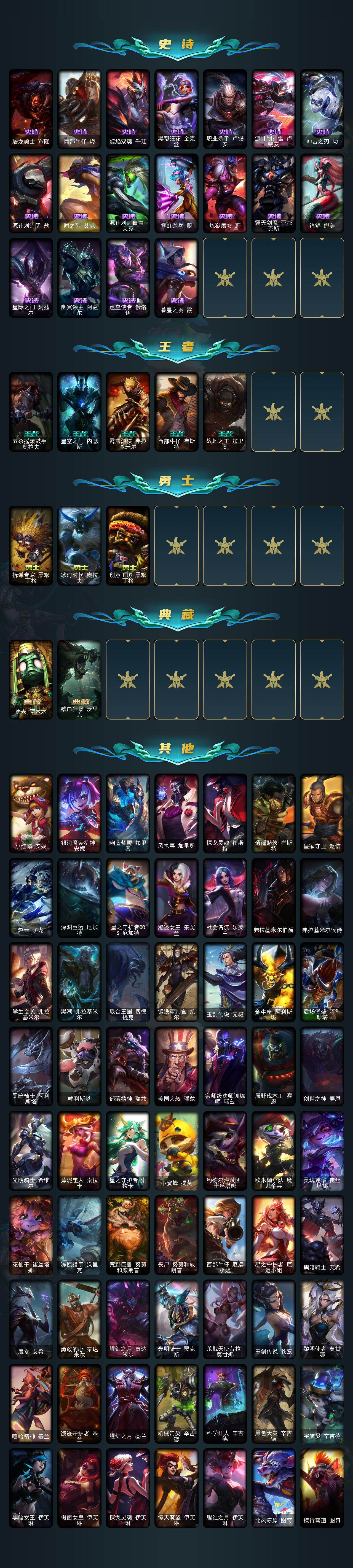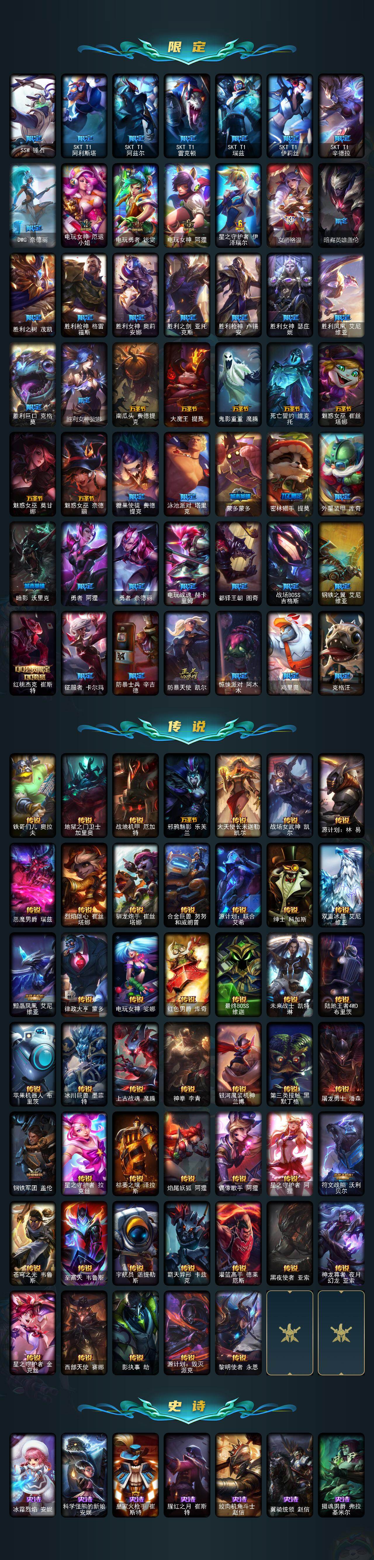 172英雄/533皮肤/4终极/10神话/89限定/13臻彩/145炫彩/47传说/130史诗/未定级