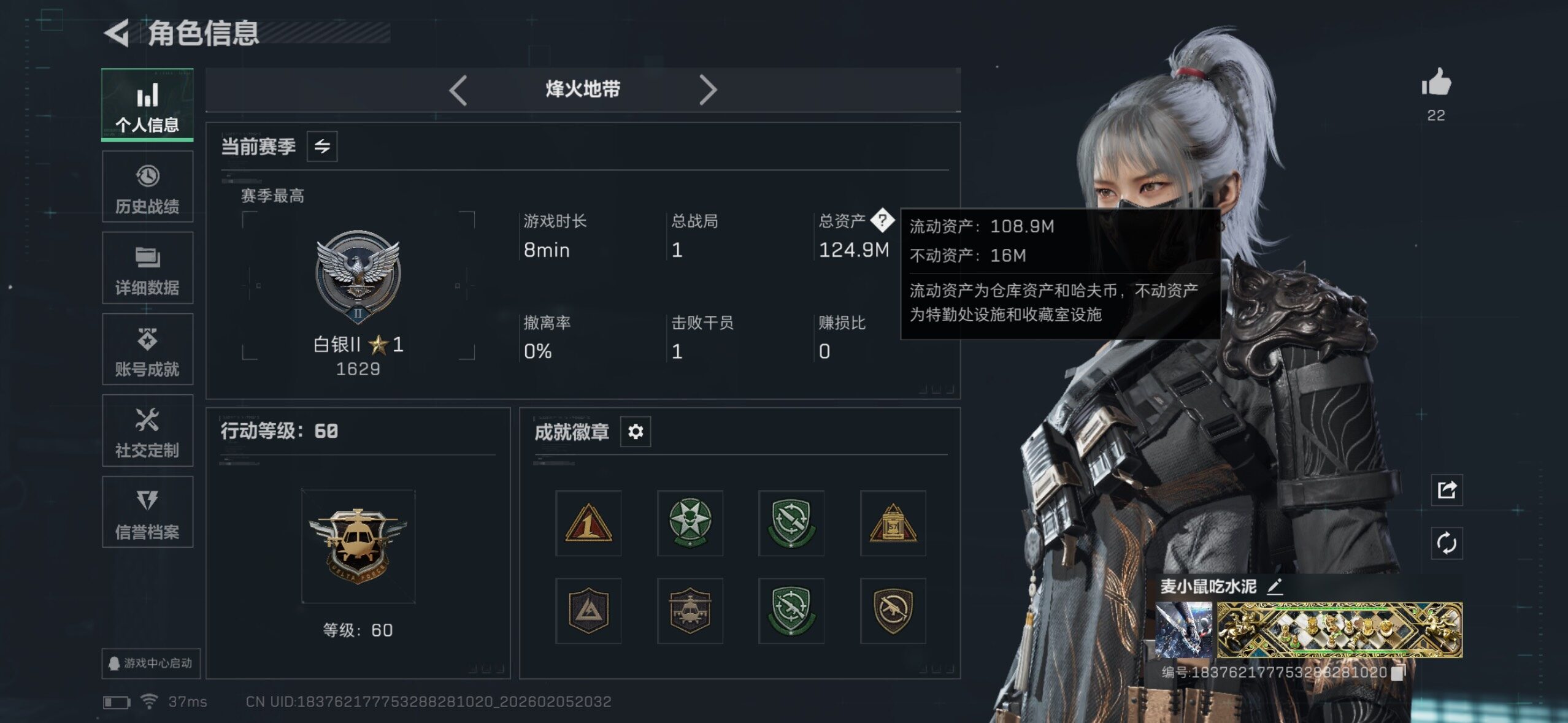 124m总资产-74394k哈伏币-60烽火等级-白银-8战场等级-列兵