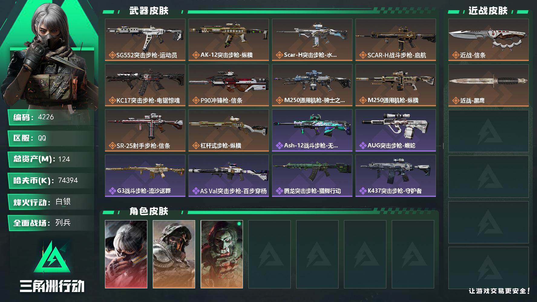 124m总资产-74394k哈伏币-60烽火等级-白银-8战场等级-列兵【干