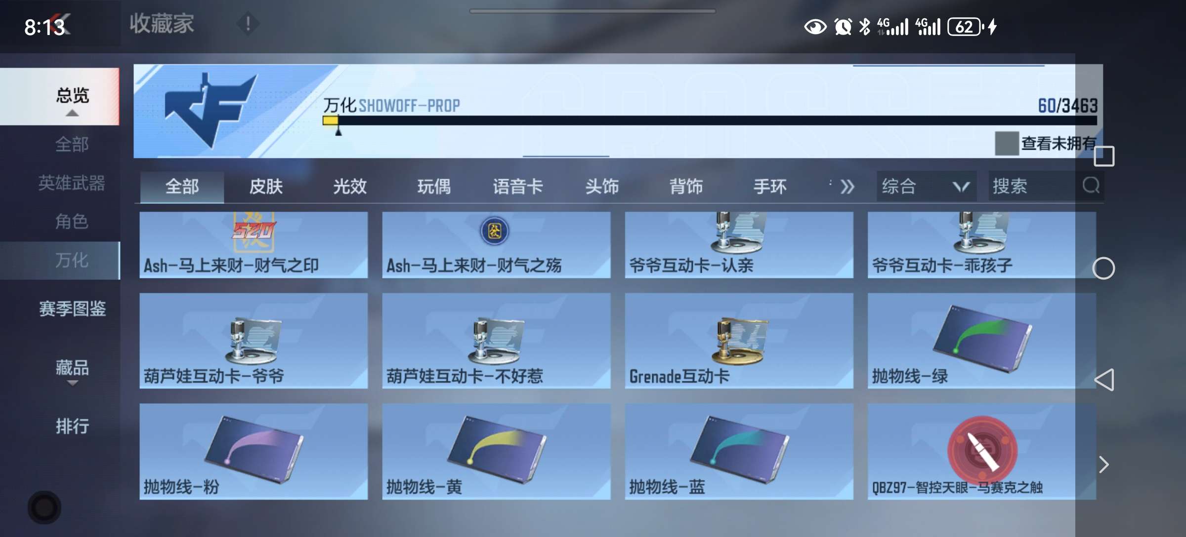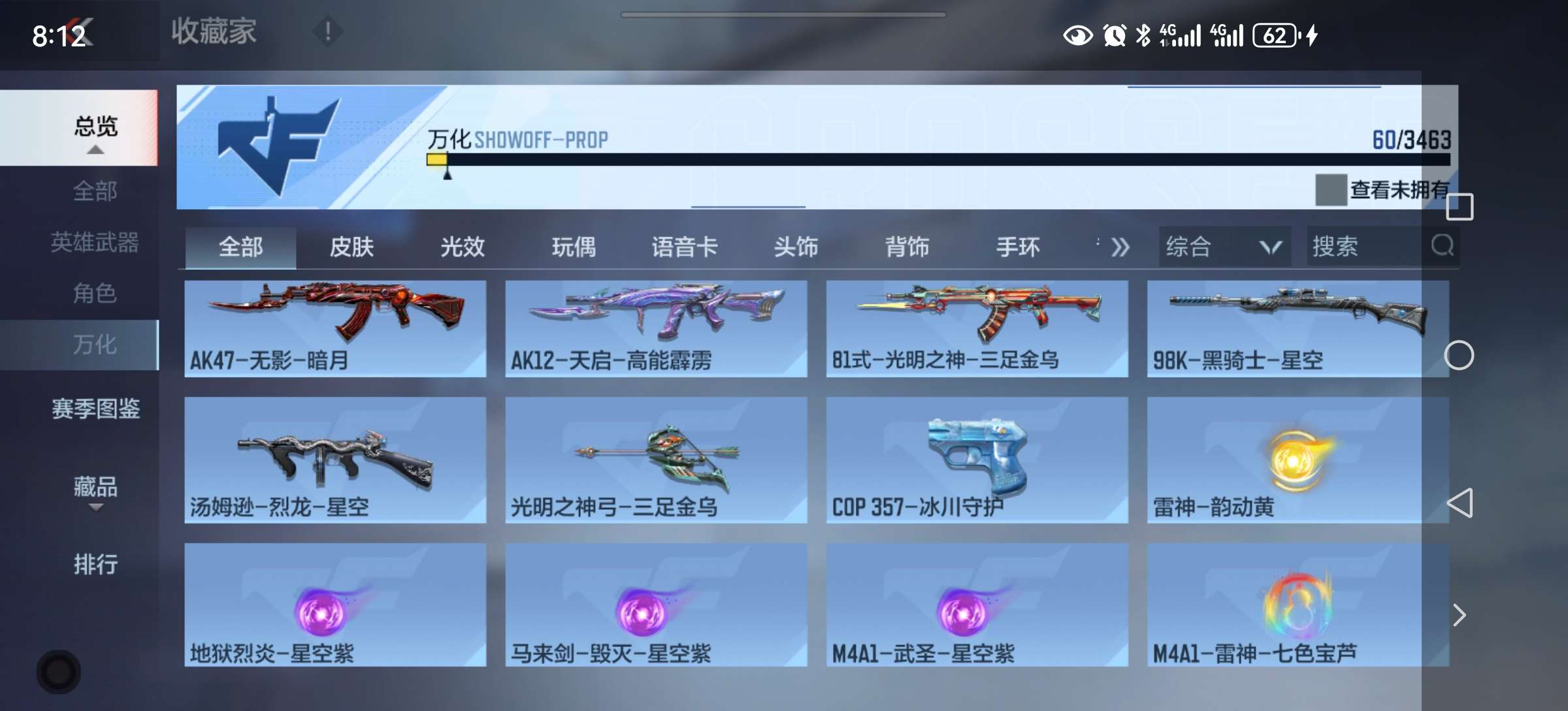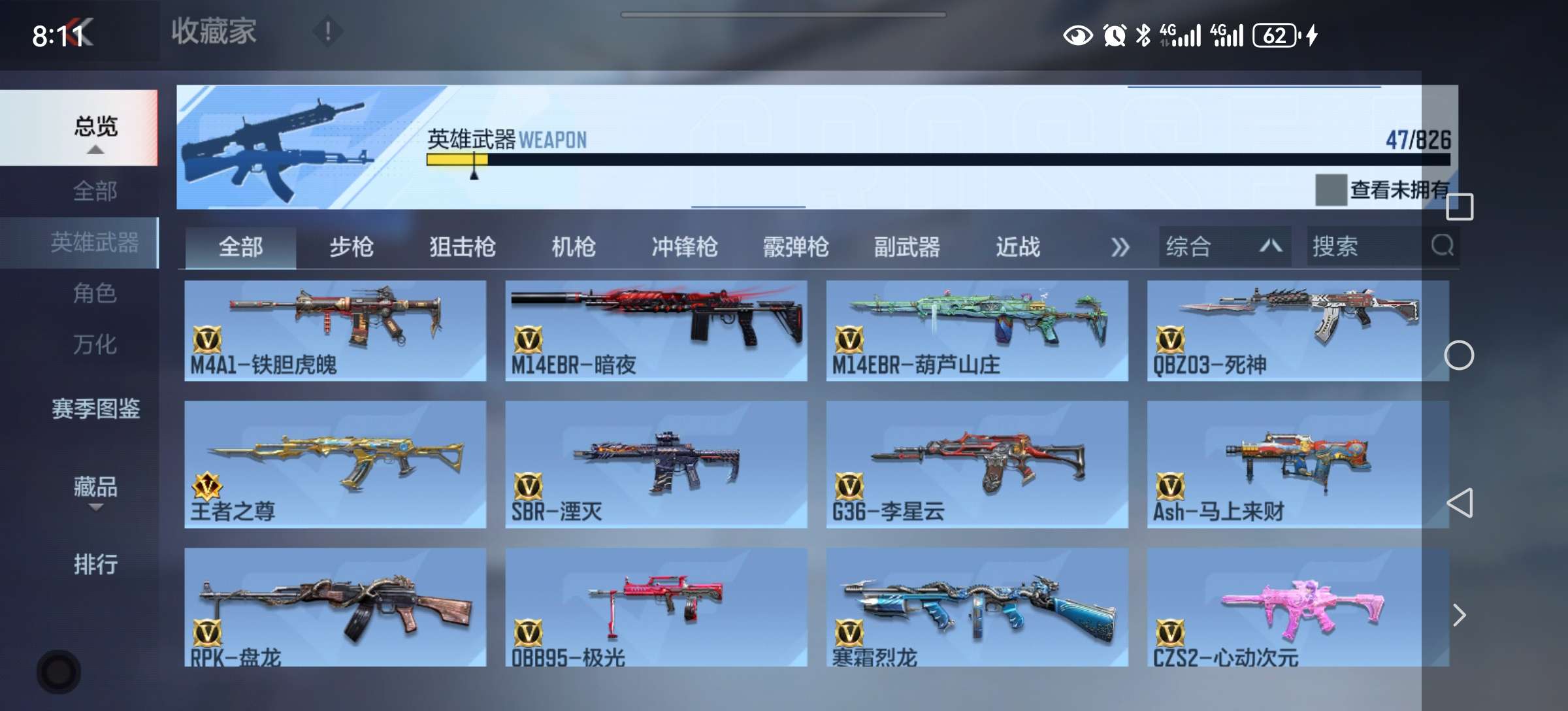 12.6万钻石53把英雄武器好几把自己换 51钥匙 赏金256币大量挑战卡碎片道具战绩还行