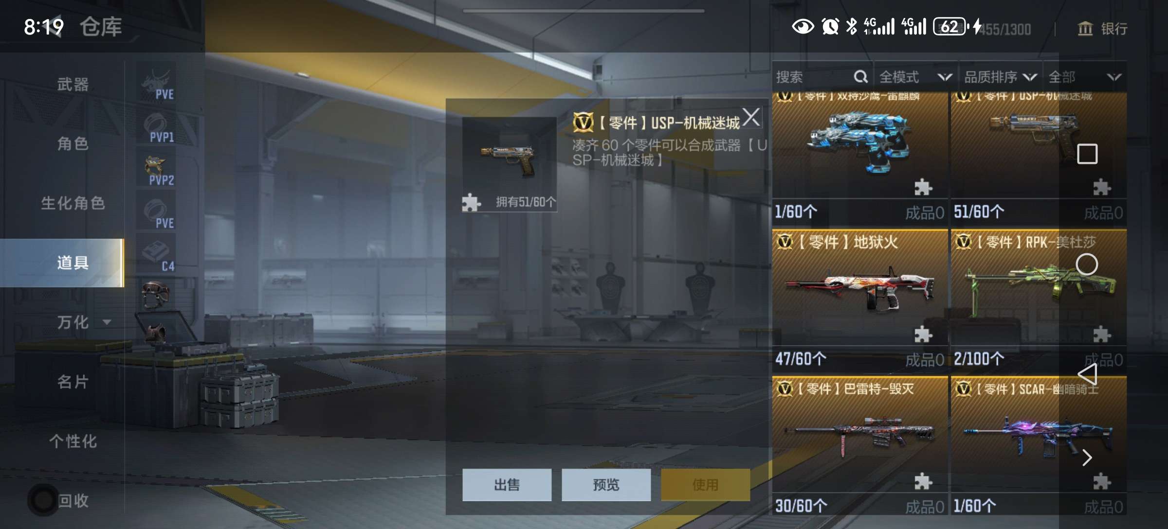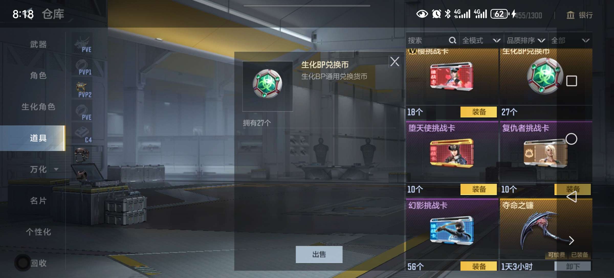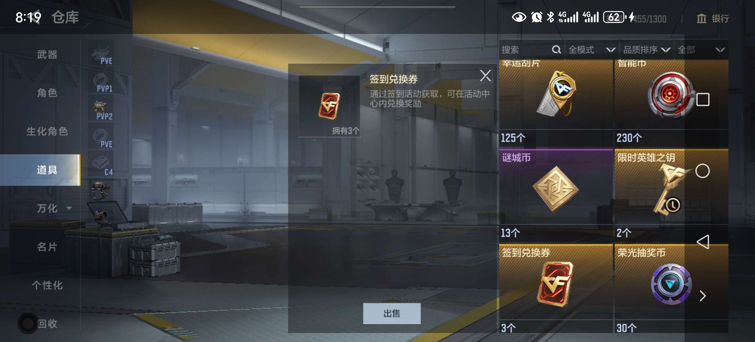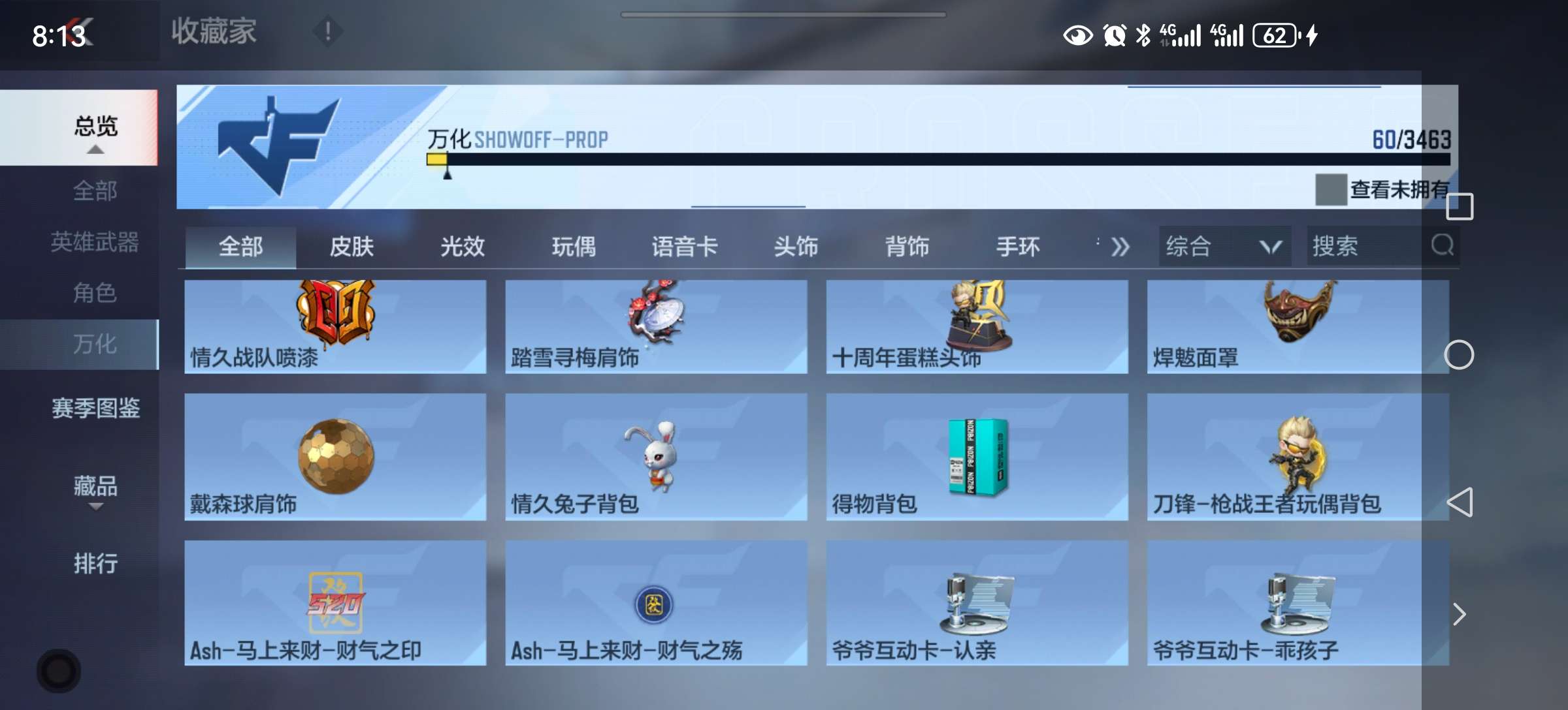 12.6万钻石53把英雄武器好几把自己换 51钥匙 赏金256币大量挑战卡碎片道具战绩还行