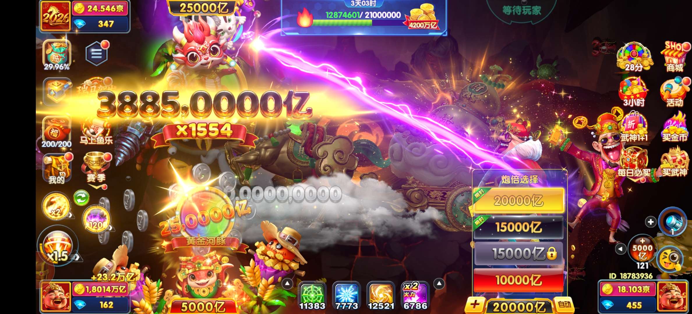 小米端,纯玩18京,神电万炮三级洪荒。加倍卡多多。1712