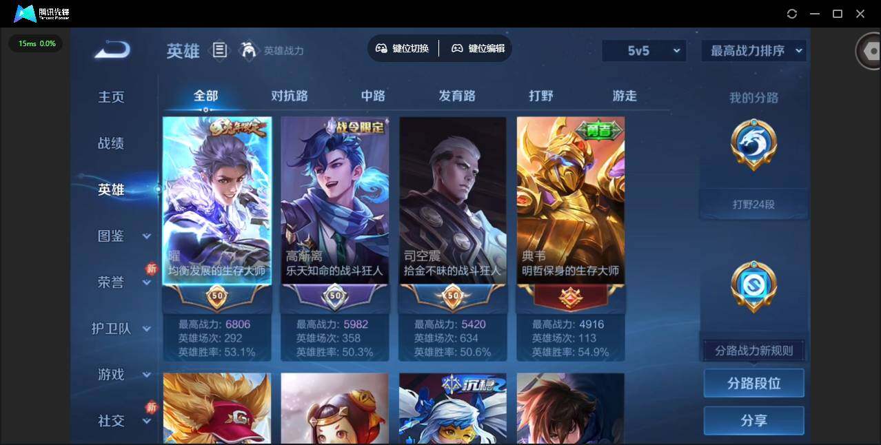 实名: 可修改 贵族等级: V5 英雄数: 119 皮肤数: 155 传说皮: