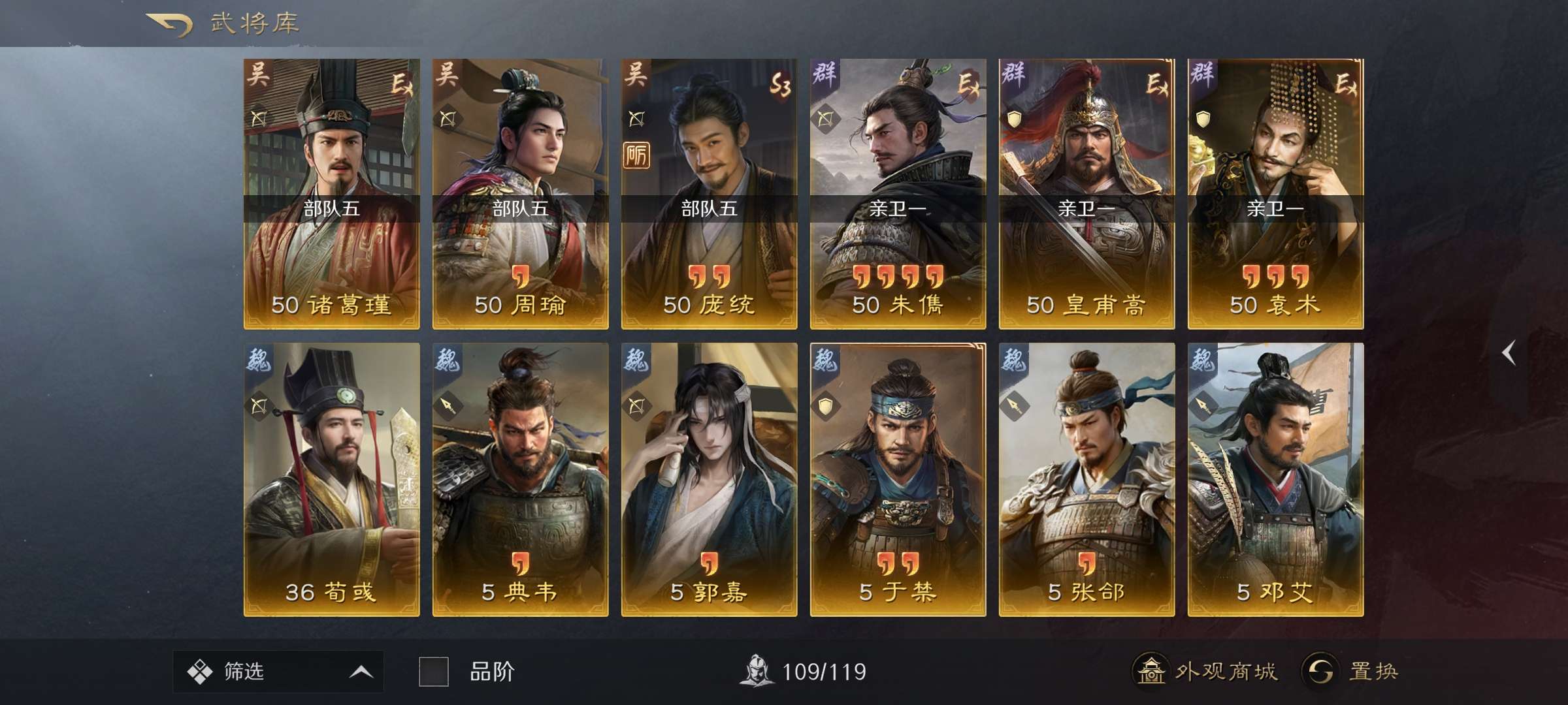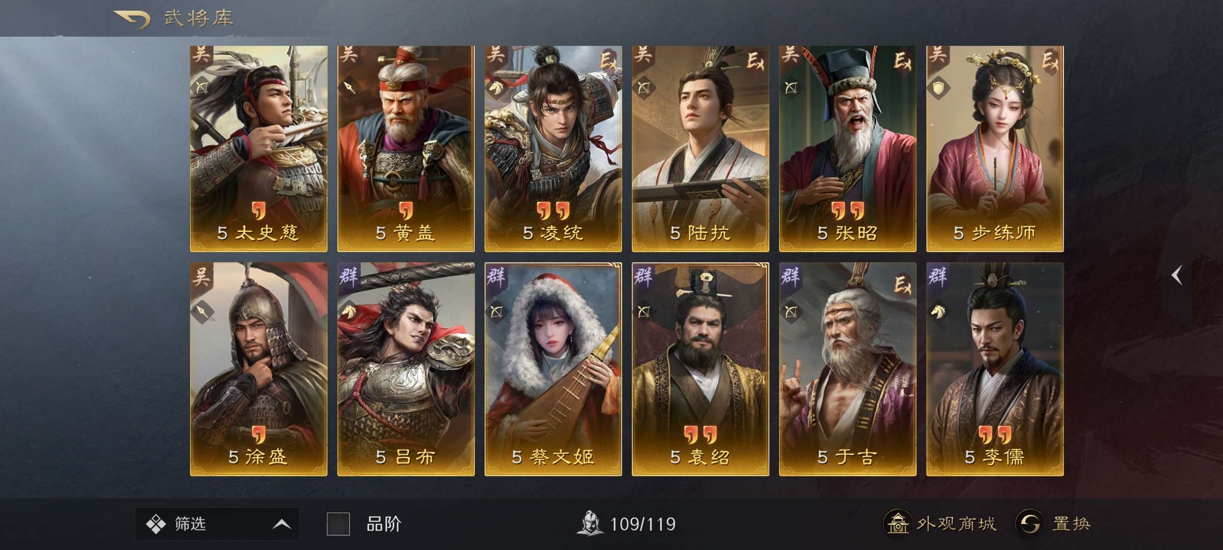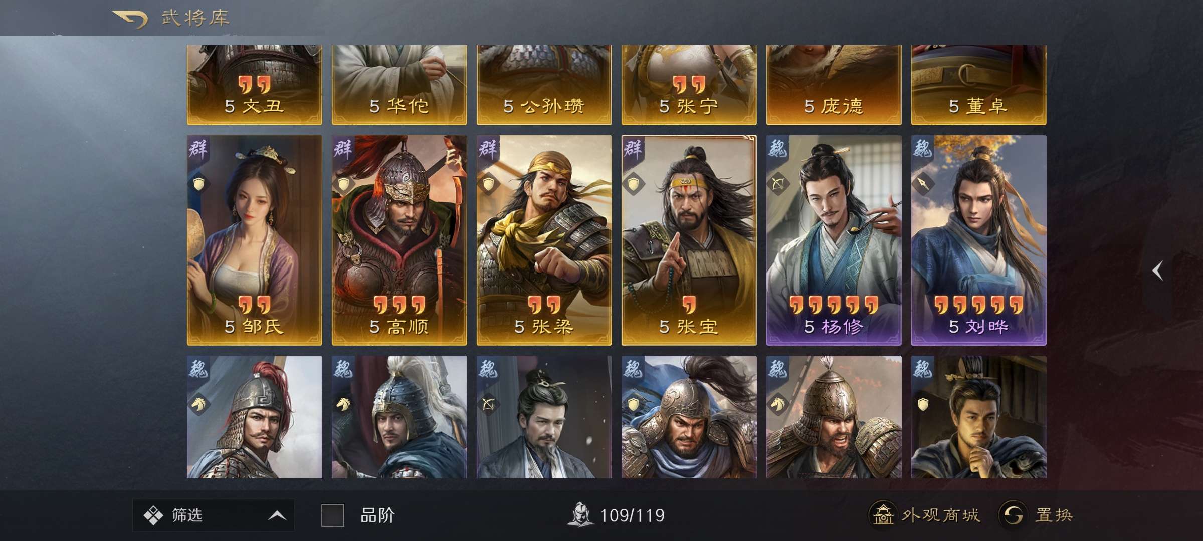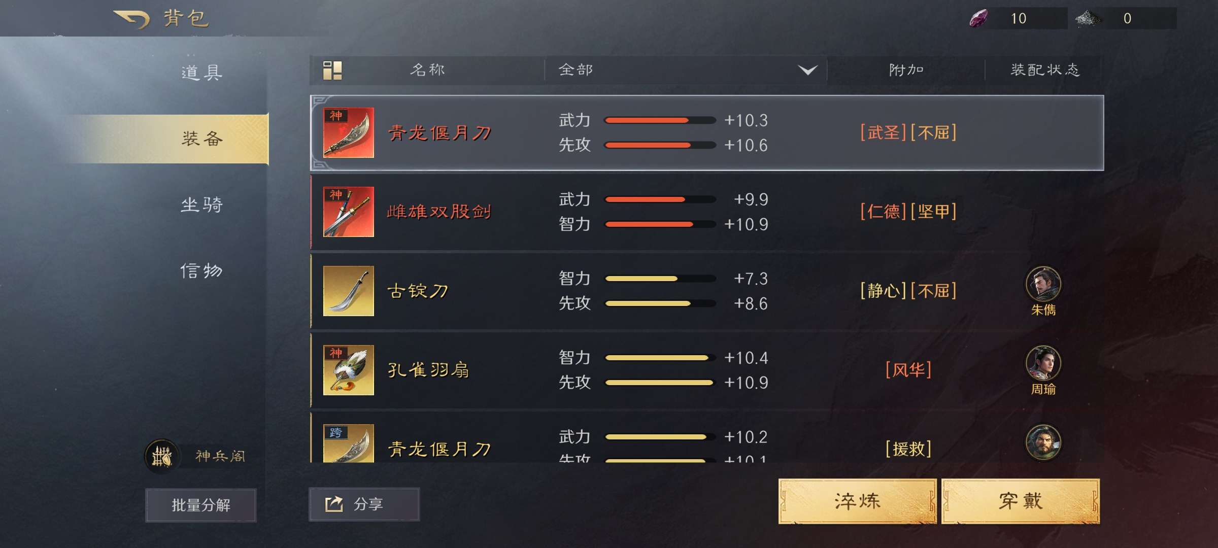 战法武将几乎都有可小刀,高红大汉盾还有红装红马三皇专属特性刘备仁德
