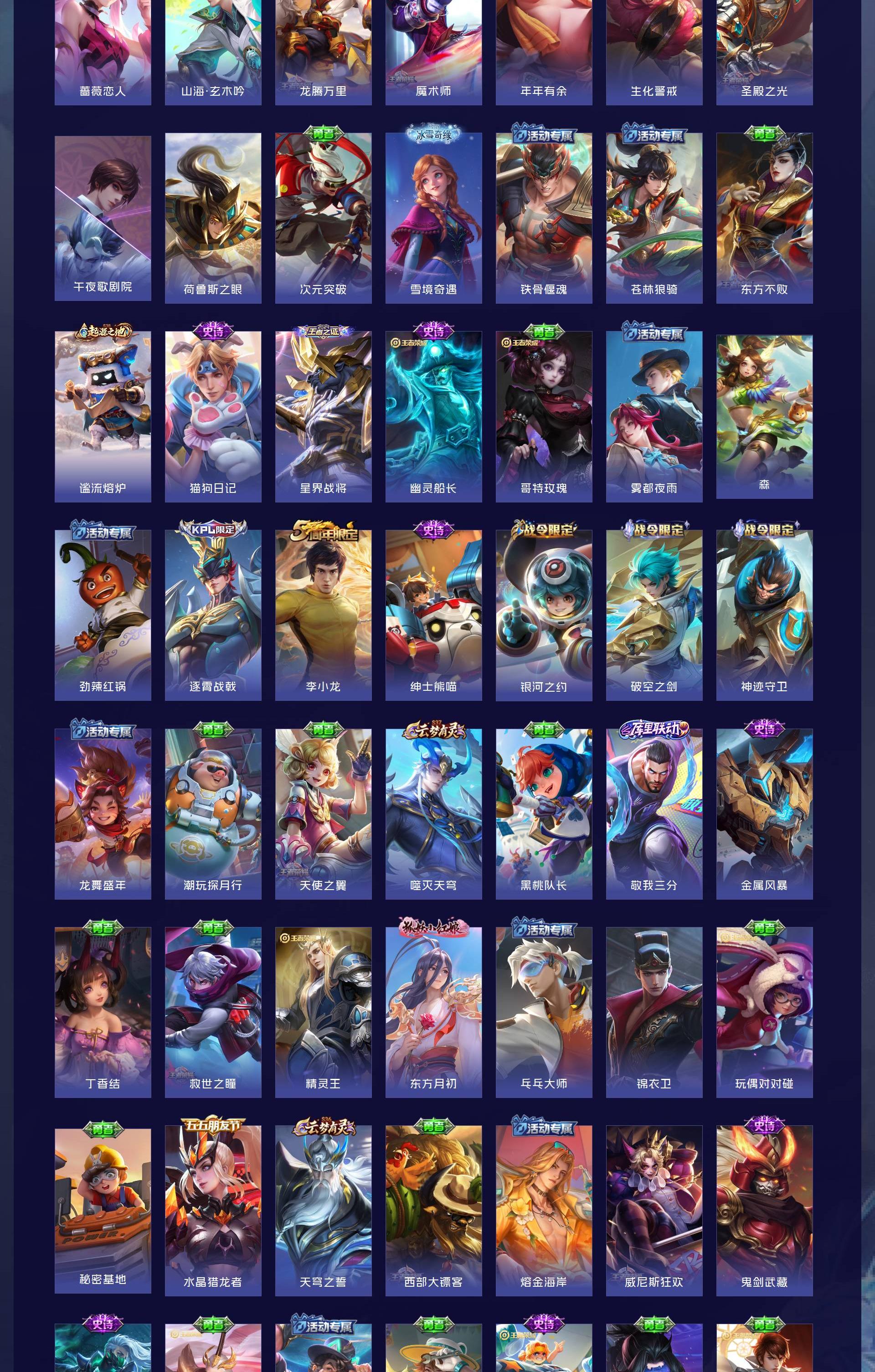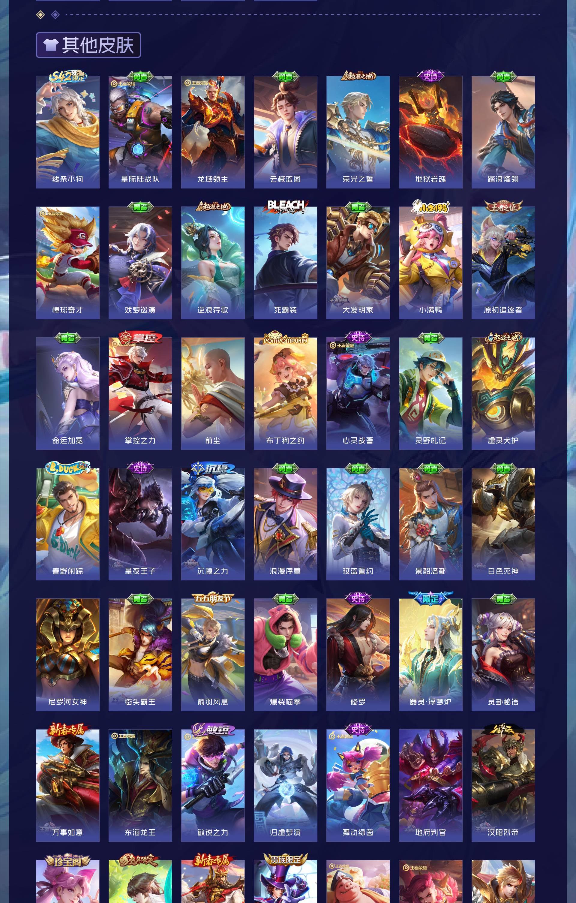 V7 皮肤182 英雄124 尊贵铂金 荣耀典藏1 无双皮肤1 珍品传说1 传说4 其他皮肤180