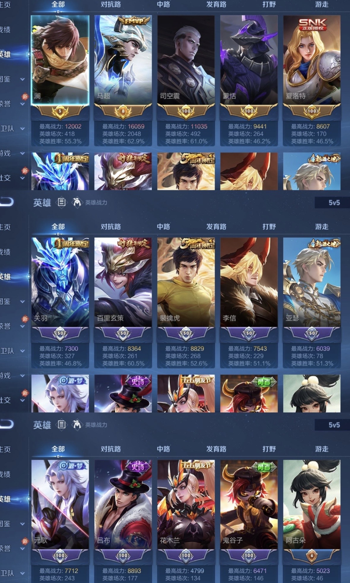 1w6马超省8马超高胜率高评分装逼带妹号1w2省5澜对抗50段打野55段极品号
