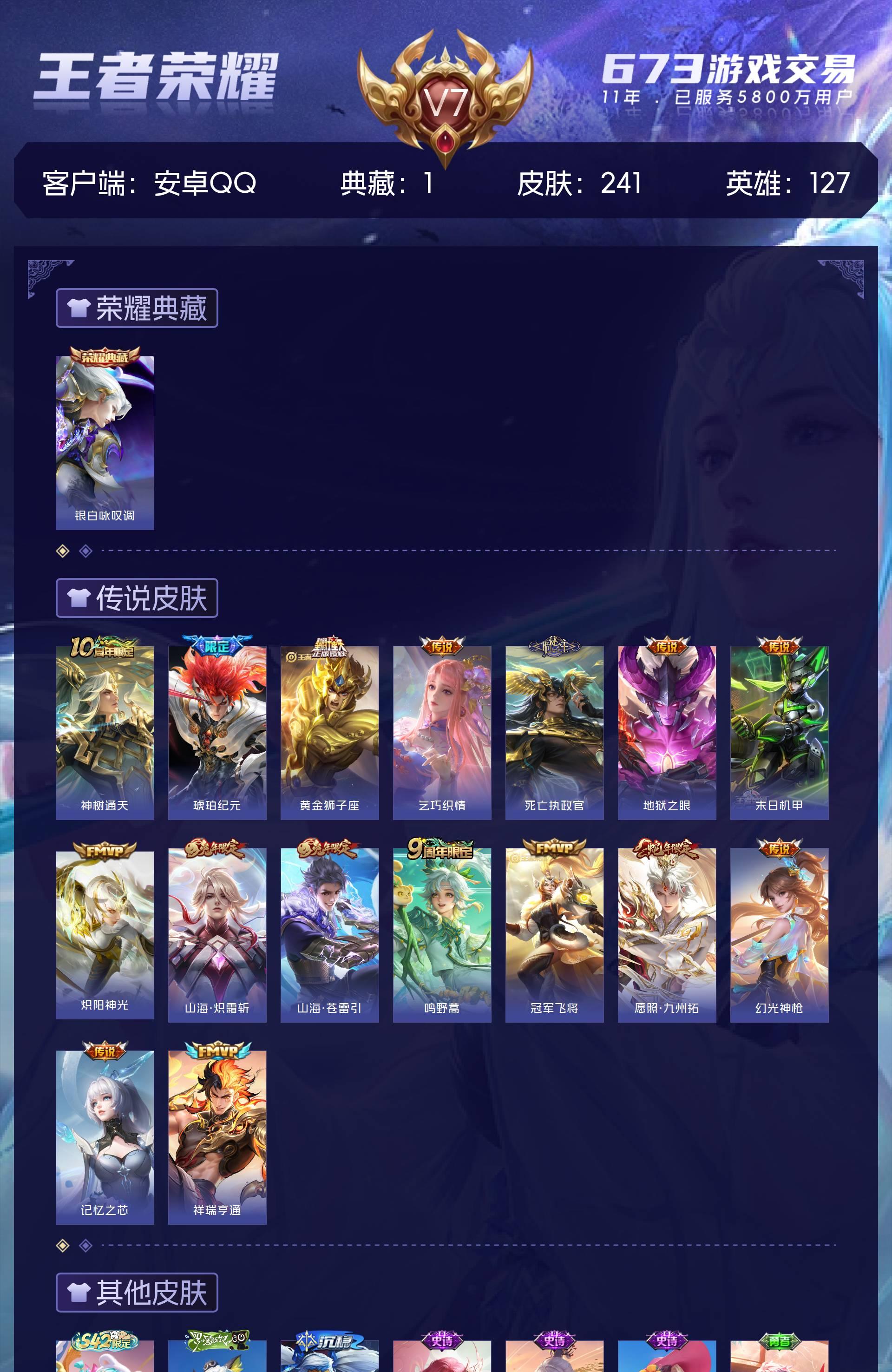 V7 皮肤241 英雄127 最强王者 荣耀典藏1 传说16 其他皮肤228