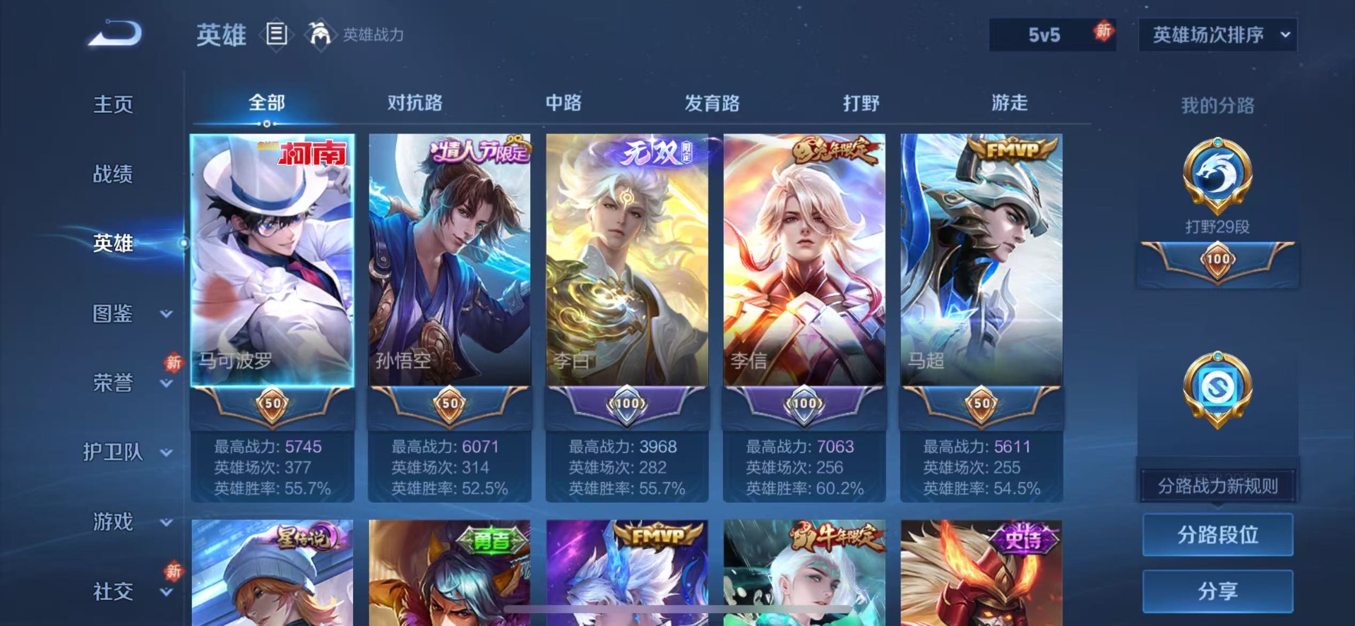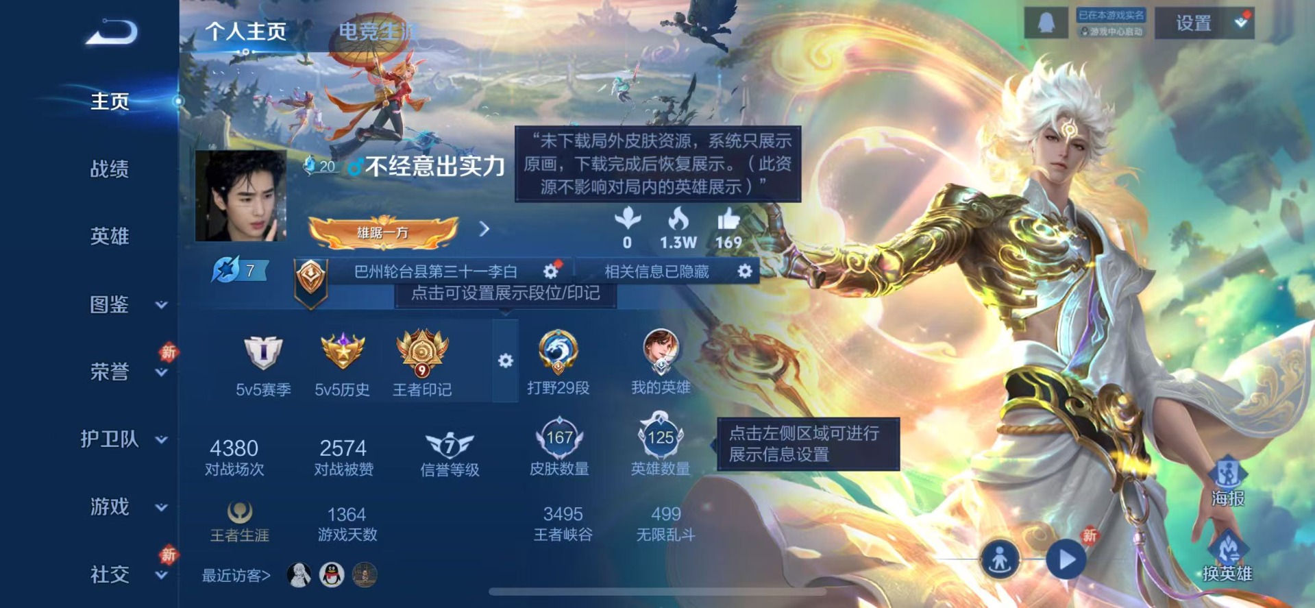V7 1典藏 1无双 1珍品传说 8传说 125英雄 167皮肤 可修改实名 女号