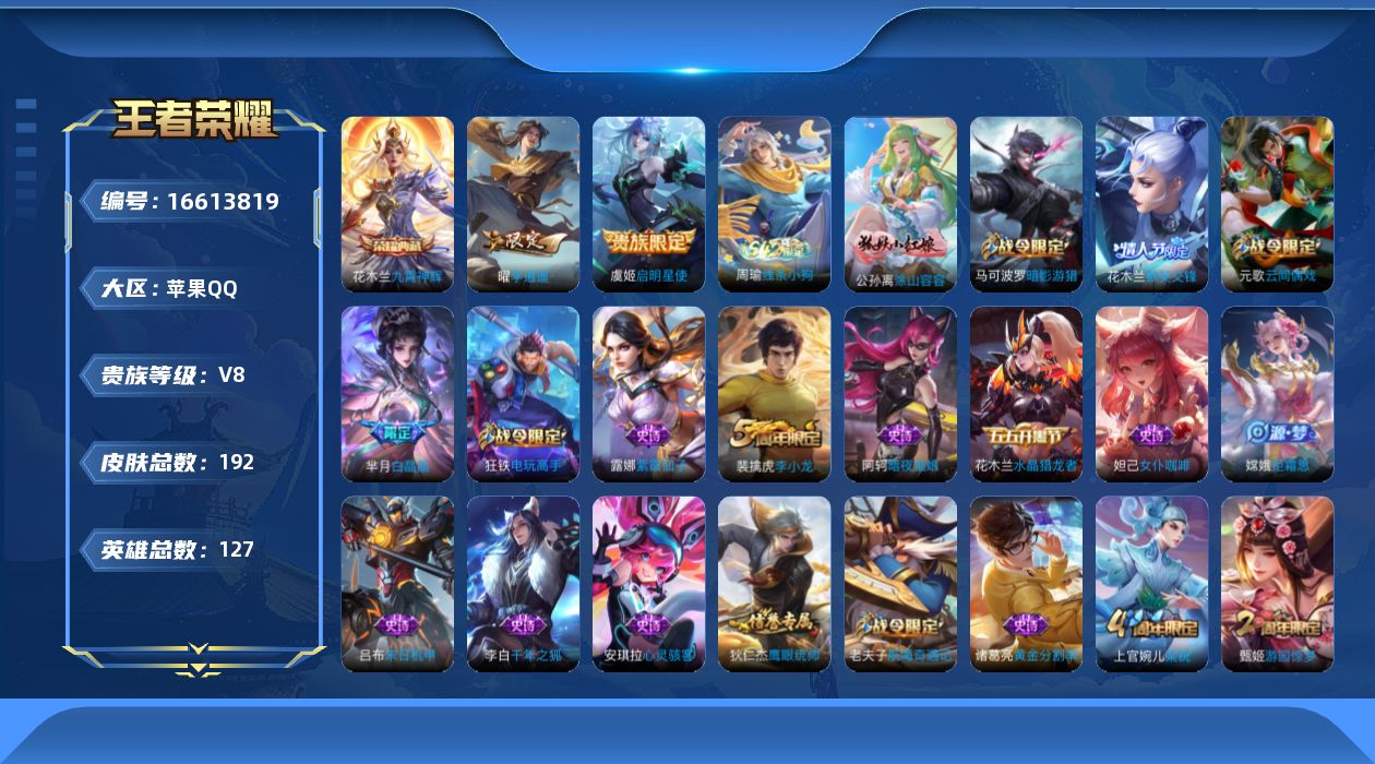 16613819】[16613819]【精品号手慢无】典藏九霄神辉 热门限定皮李逍遥花木兰默契交锋 200+玫瑰 4000+星币 性价比V8号