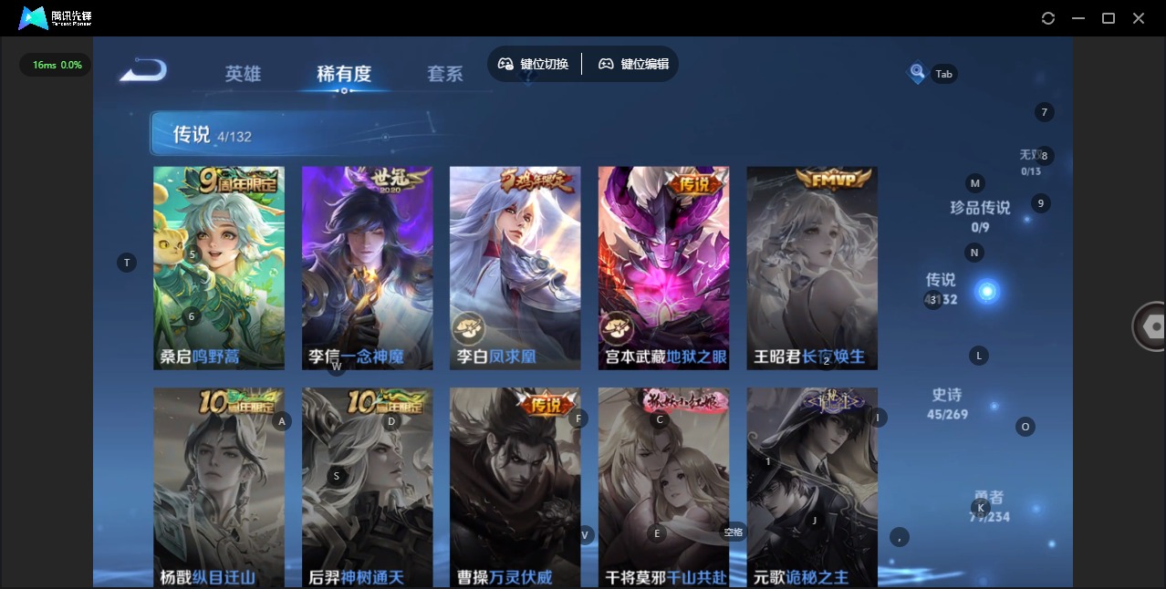 V6 4传说 128英雄 162皮肤 可修改实名 男号