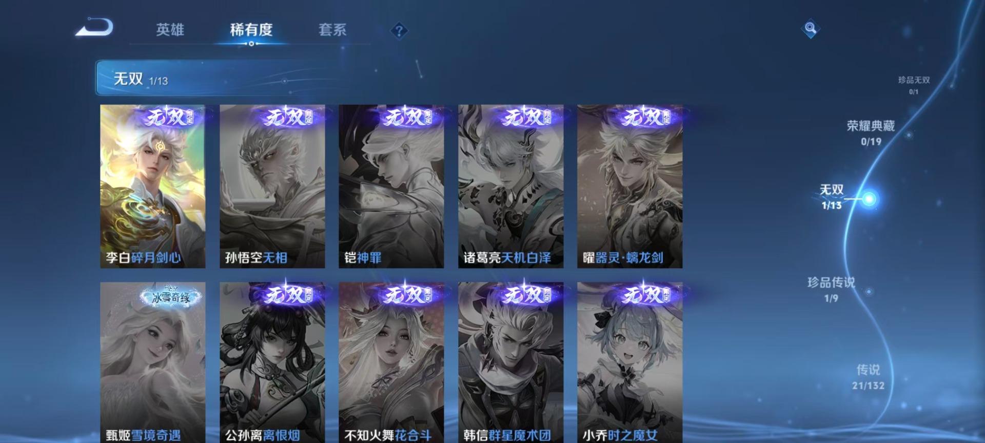 V7 1无双 1珍品传说 21传说 125英雄 173皮肤 可修改实名 女号